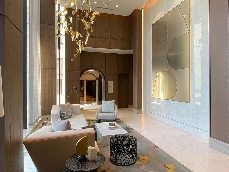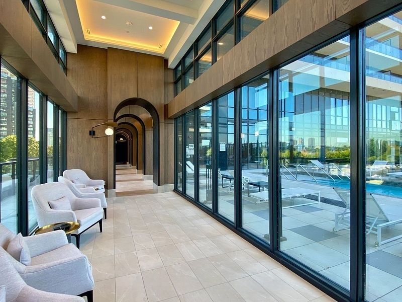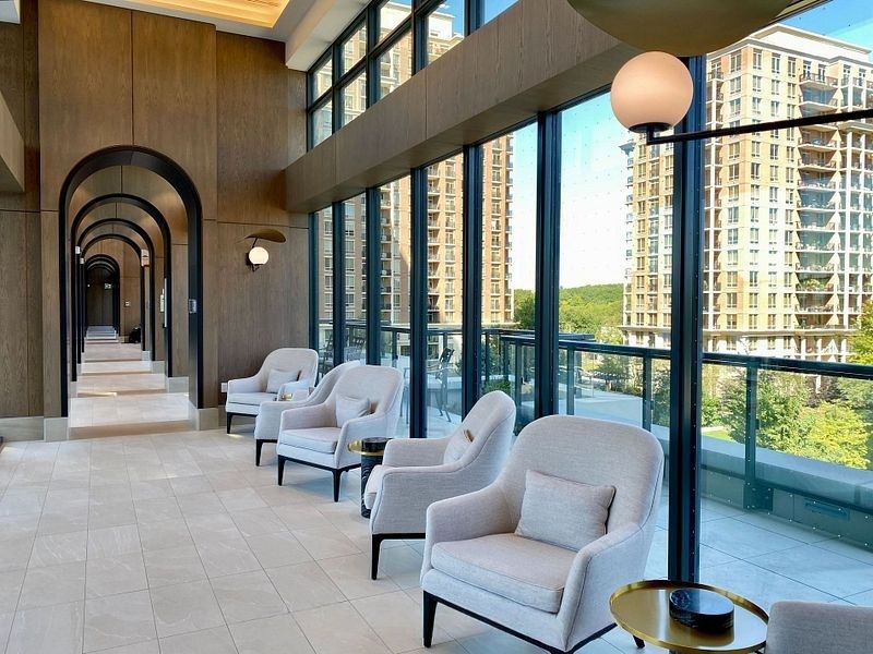 • Resort-style amenities include fitness center, theatre, and 24-hour concierge.