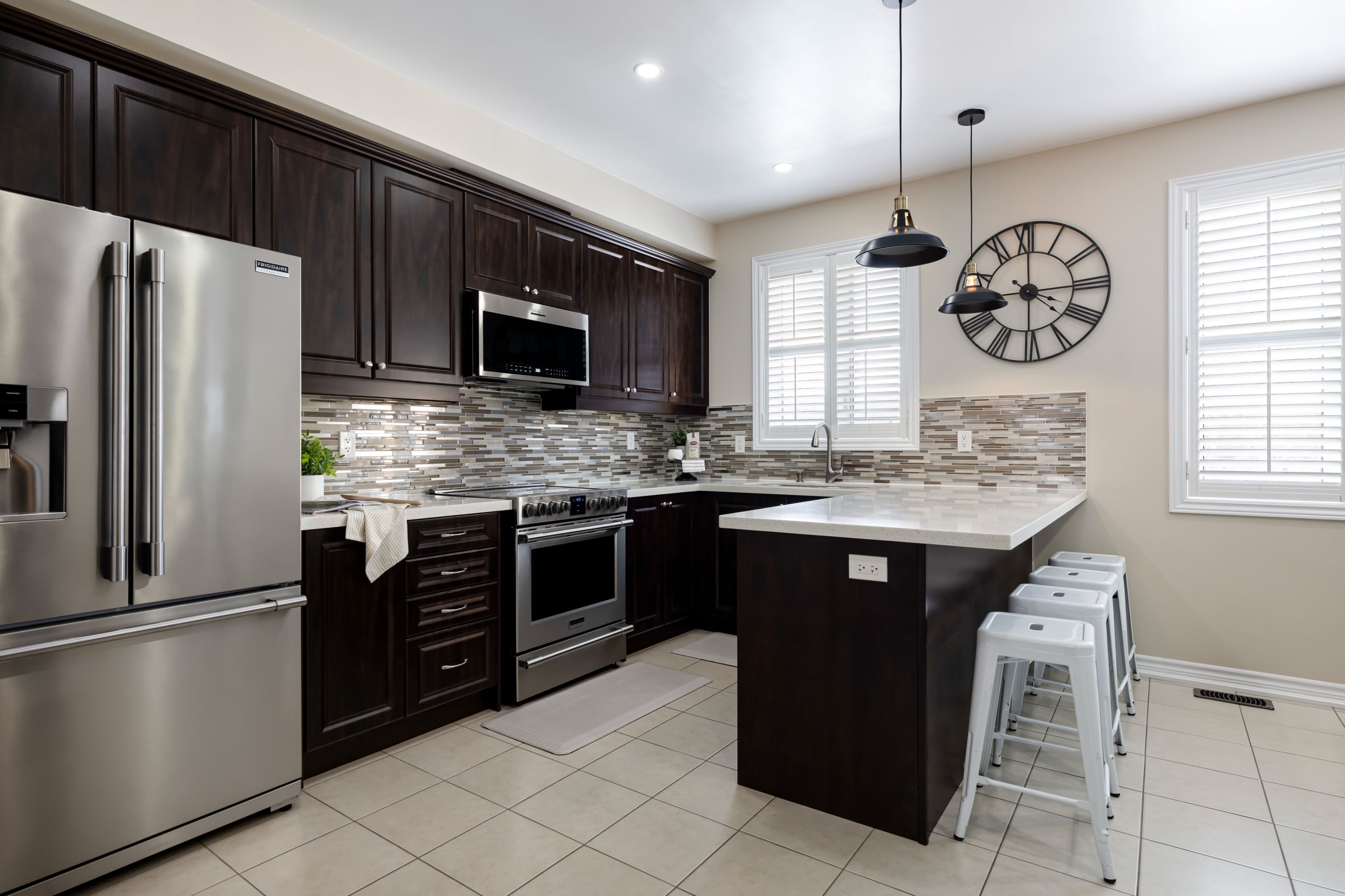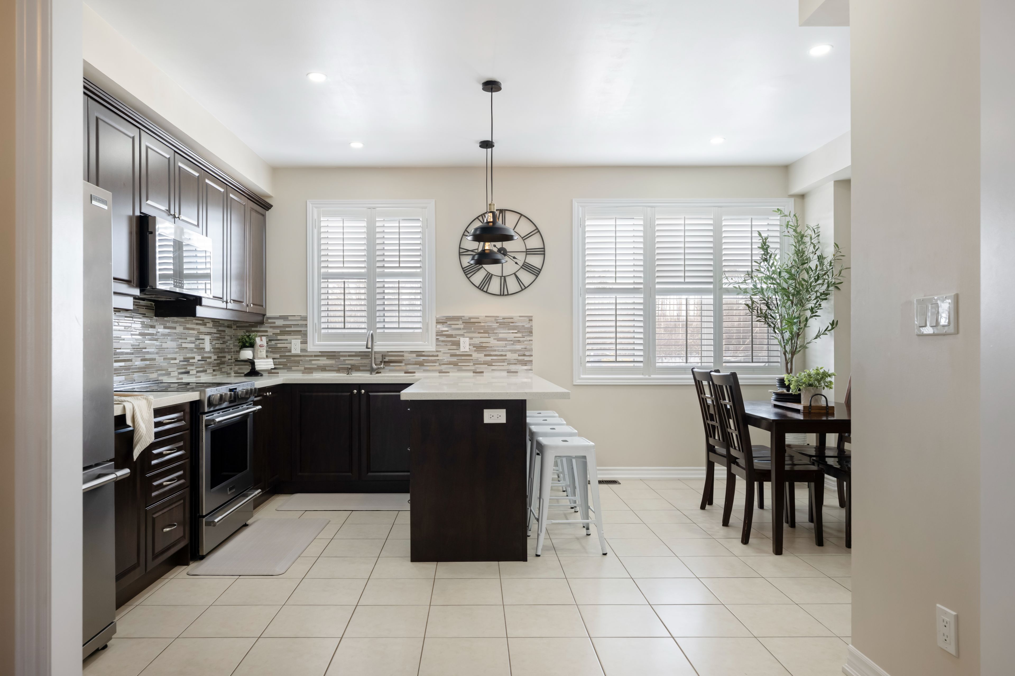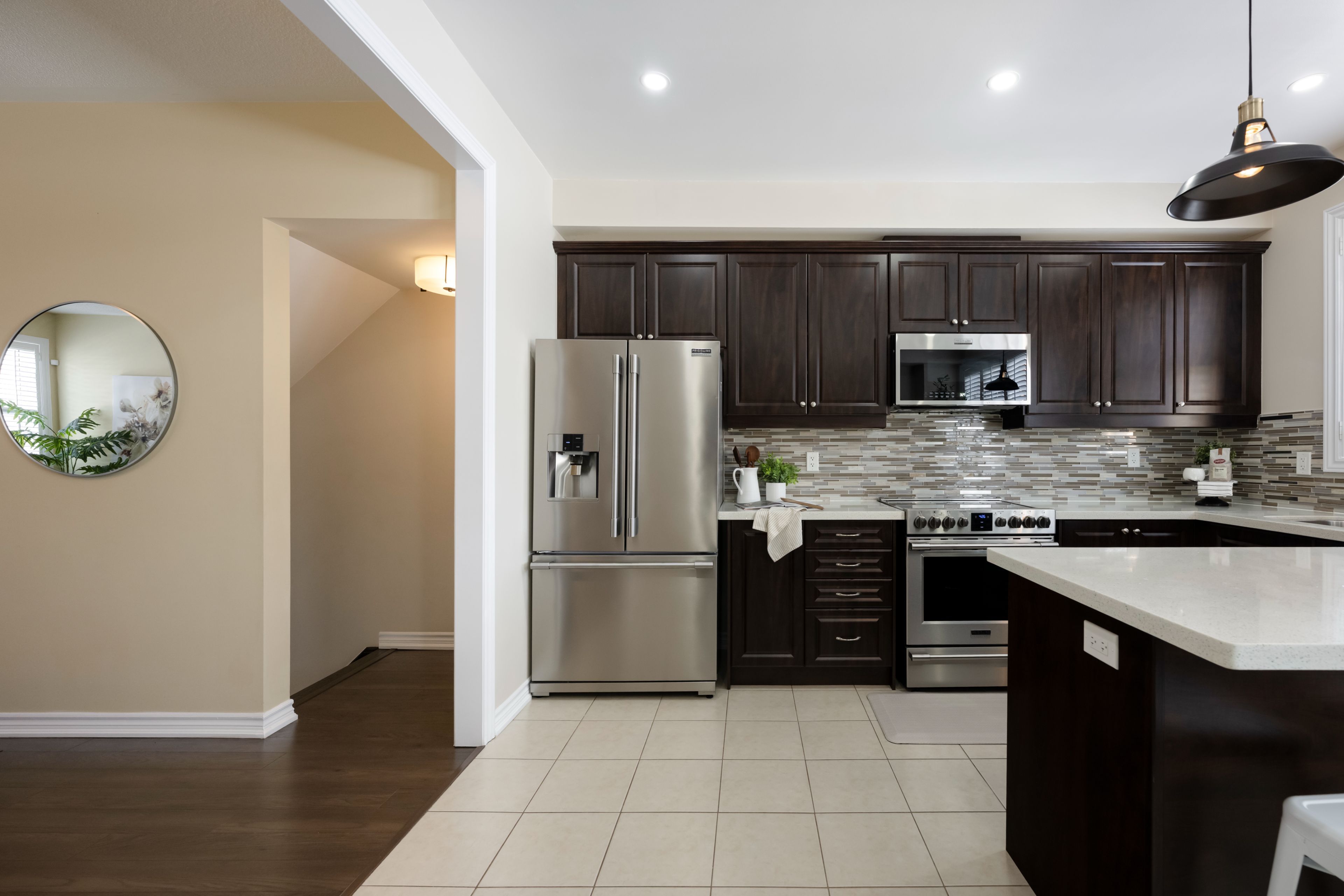 • Modern kitchen with stainless steel appliances and ample storage options.