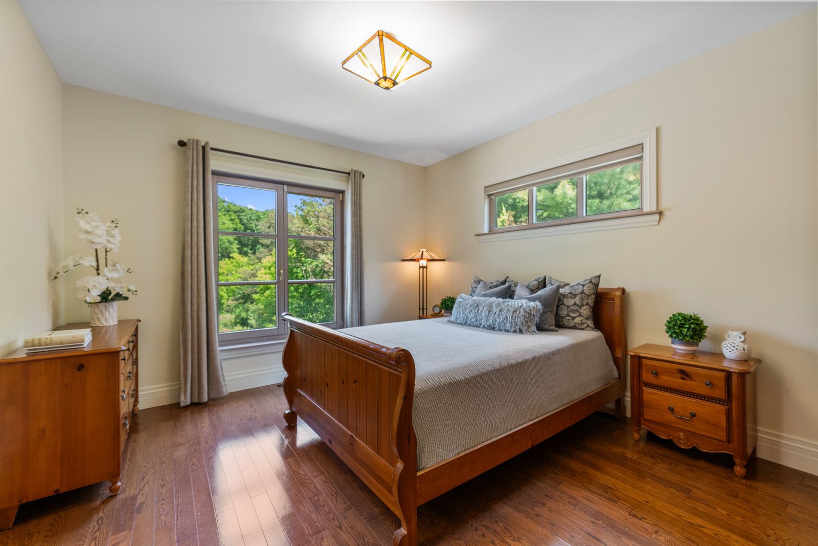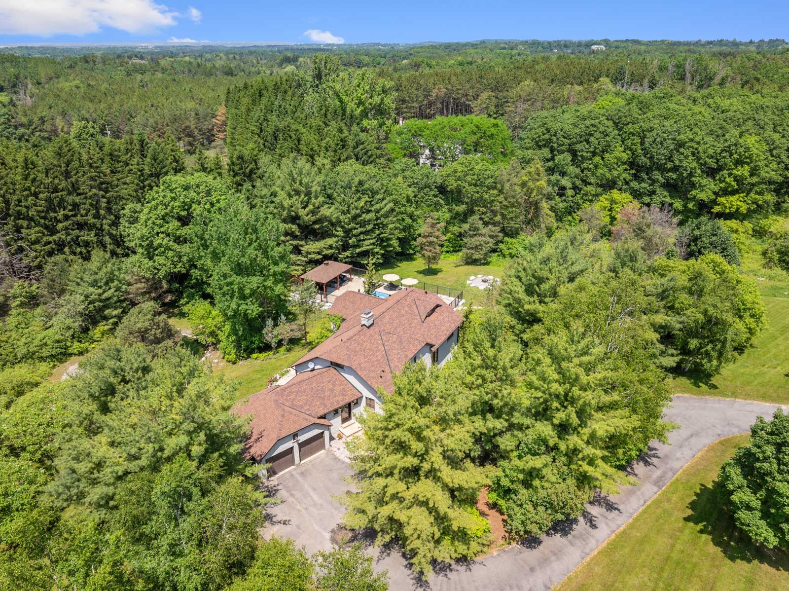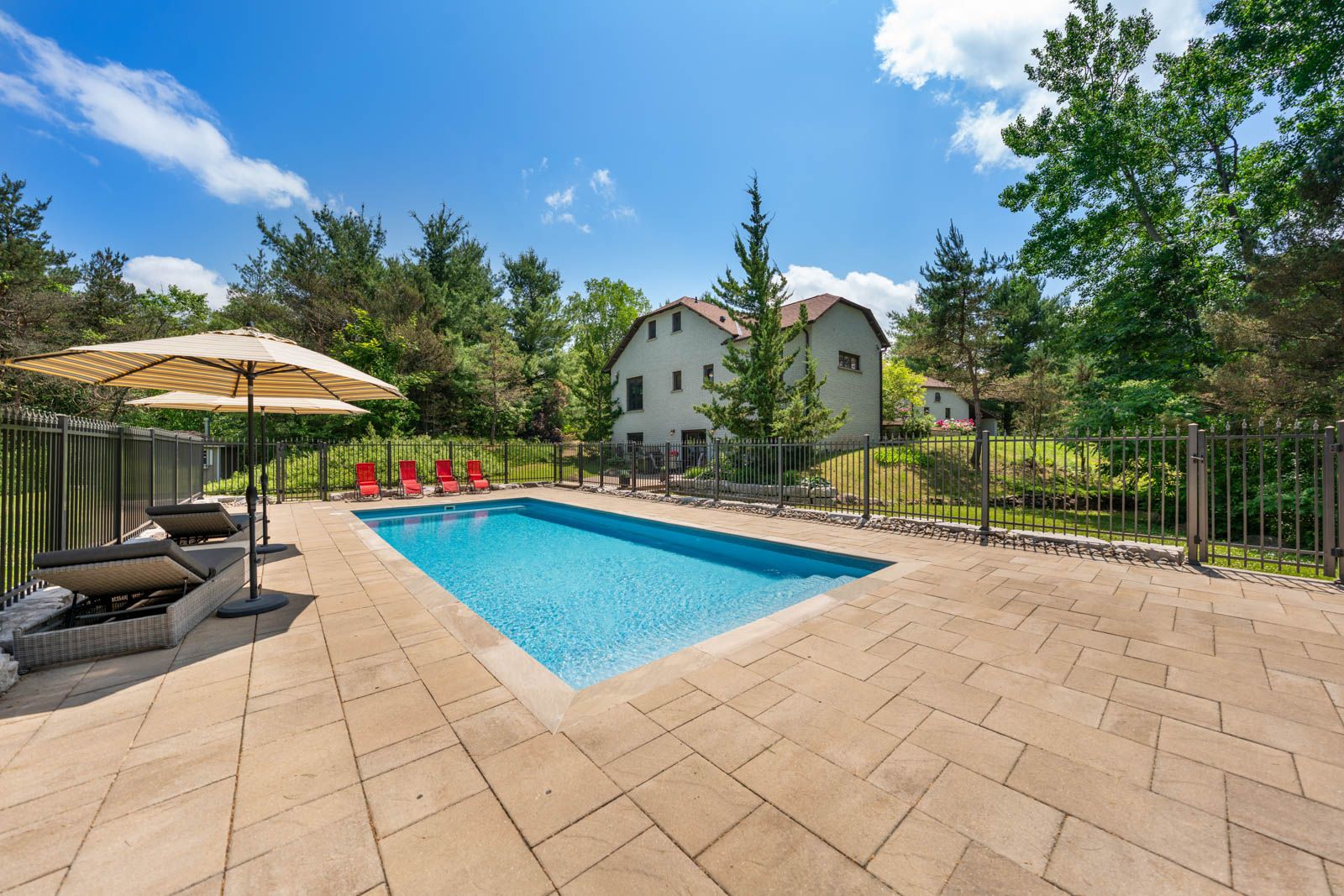 Welcome to 30 kingswood drive a european-inspired bungalow on a lush 2-acre estate this stunning executive home on a beautifully landscaped 2-acre lot offers the perfect blend of luxury, space, and functionality. Nestled behind a long, circular driveway, this european-style bungalow combines timeless elegance with modern comfort. Featuring over 5000 sq ft of finished living space with 3+1 bedrooms, a bright above-ground lower level, two full kitchens, and a luxurious sauna with steam shower. The home's curb appeal is undeniable, with manicured gardens and a custom arched front door that lends the façade a touch of old world sophistication. A double-car garage with an attached carport or boat port ensures both functionality and flair. Inside, the home exudes warmth and character, featuring hardwood floors, slate tile, pot lighting, and design elements like exposed wood beams and brick accent walls. The open-concept layout is bathed in natural light thanks to oversized windows, allframing serene views of the private grounds. Outdoors, this home becomes a true retreat. A sparkling, gated inground pool with a covered sitting area invites relaxation and recreation. Meanwhile, a tranquil pond and a stone fire pit with natural seating complete the picture of an idyllic countryside escape. Whether you're entertaining guests or enjoying peaceful moments surrounded by nature, 30 kingswood drive is a rare find a private oasis that offers the best of refined living just minutes from town.