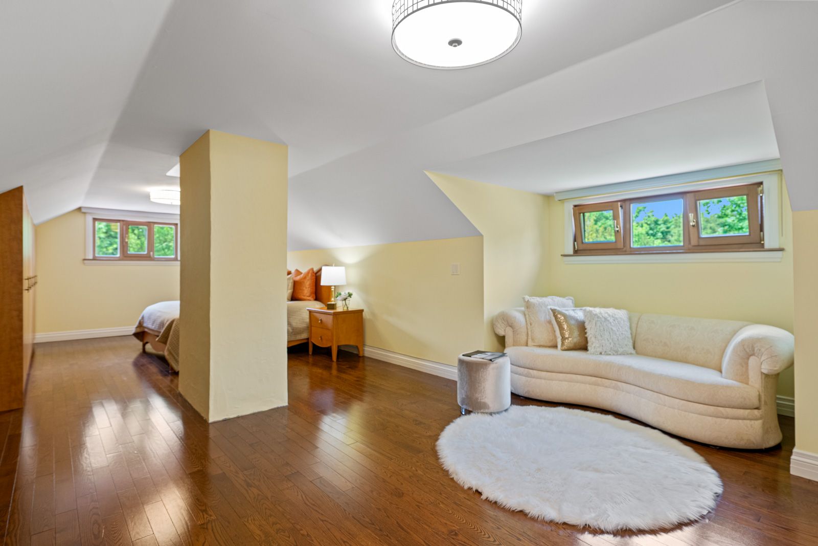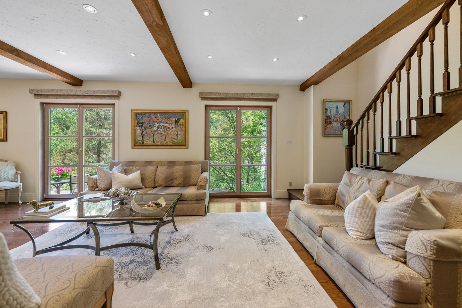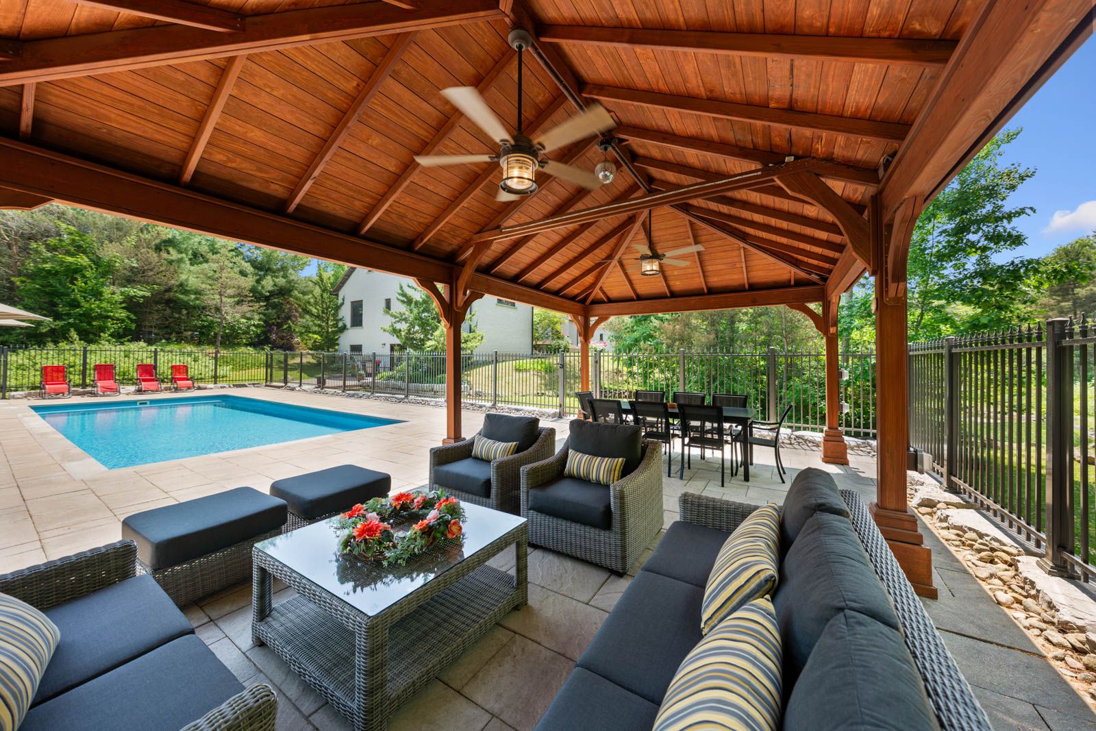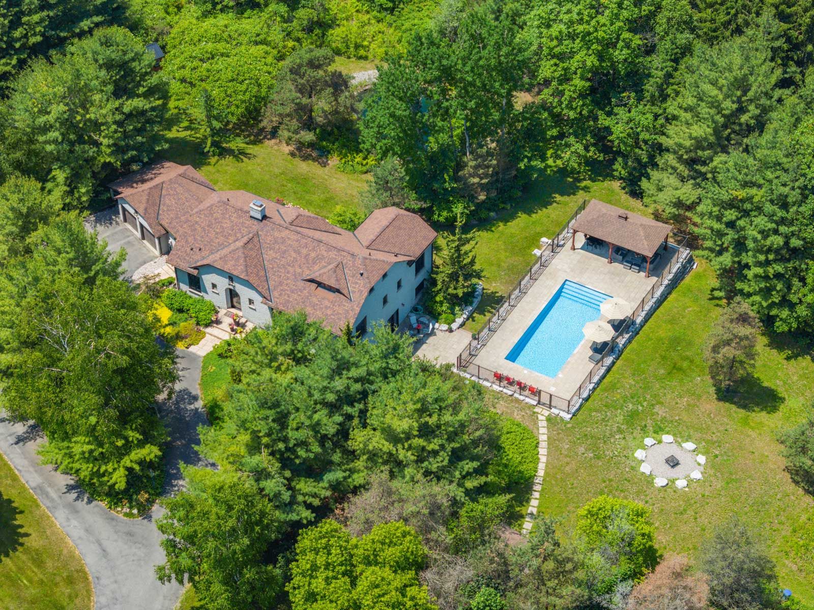 Welcome to 30 kingswood drive a european-inspired bungalow on a lush 2-acre estate this stunning executive home on a beautifully landscaped 2-acre lot offers the perfect blend of luxury, space, and functionality. Nestled behind a long, circular driveway, this european-style bungalow combines timeless elegance with modern comfort. Featuring over 5000 sq ft of finished living space with 3+1 bedrooms, a bright above-ground lower level, two full kitchens, and a luxurious sauna with steam shower. The home's curb appeal is undeniable, with manicured gardens and a custom arched front door that lends the façade a touch of old world sophistication. A double-car garage with an attached carport or boat port ensures both functionality and flair. Inside, the home exudes warmth and character, featuring hardwood floors, slate tile, pot lighting, and design elements like exposed wood beams and brick accent walls. The open-concept layout is bathed in natural light thanks to oversized windows, allframing serene views of the private grounds. Outdoors, this home becomes a true retreat. A sparkling, gated inground pool with a covered sitting area invites relaxation and recreation. Meanwhile, a tranquil pond and a stone fire pit with natural seating complete the picture of an idyllic countryside escape. Whether you're entertaining guests or enjoying peaceful moments surrounded by nature, 30 kingswood drive is a rare find a private oasis that offers the best of refined living just minutes from town.