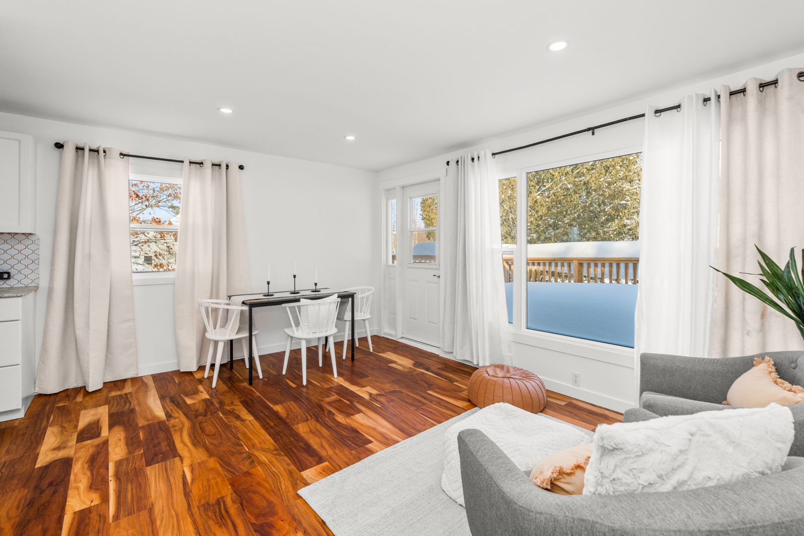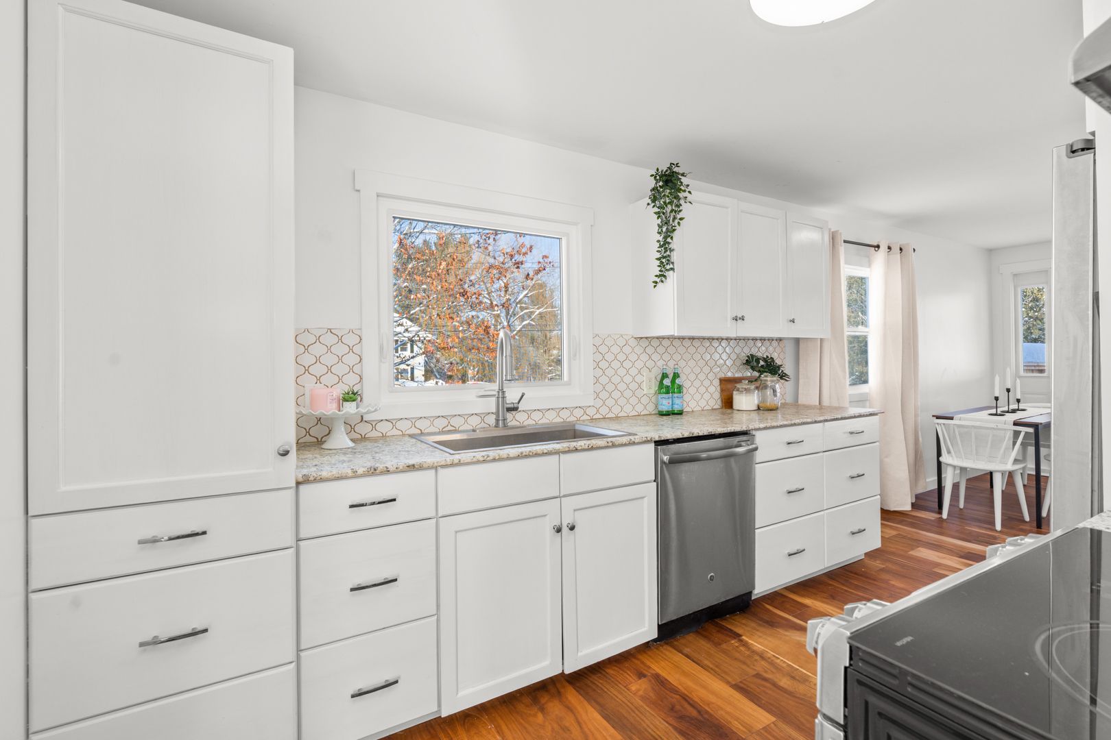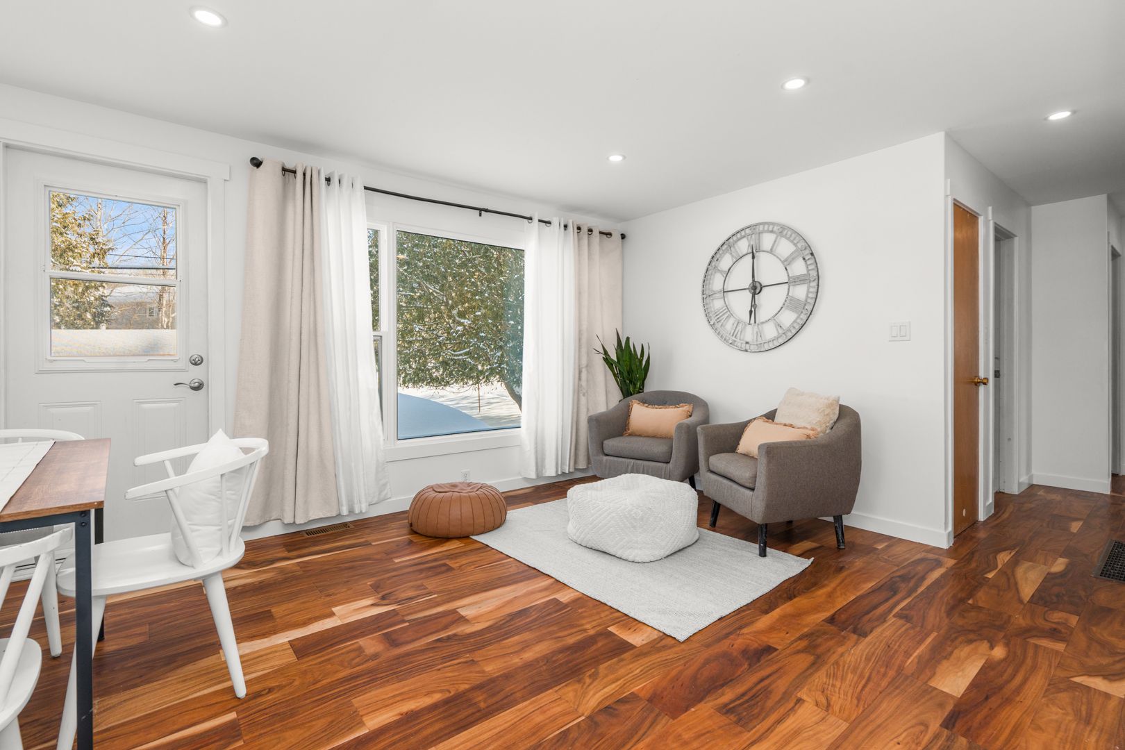 Whether you're a first-time homebuyer or looking for a move-in-ready property with character and space to grow, welcome to this beautifully updated home. This fully renovated 3-bedroom, 1-bathroom property sits on an oversized corner lot, offering plenty of outdoor space to enjoy while being just minutes from the highway for easy commuting. A massive mudroom offers the perfect entryway with ample room for coats, boots, gear, and storage - ideal for busy families or anyone who appreciates an organized home. Major upgrades provide peace of mind, including the kitchen (2018) updated electrical with a breaker panel (2019), an updated hvac system (2019), waterproofed basement (2019), sump pump (2019), new windows (2026), and new insulation for improved comfort and efficiency. Outside, the property continues to truly shine. The fully fenced yard (2022), gazebo (2023) and newly built deck (2023) creates the perfect setting for summer entertaining or relaxing in your own private outdoor oasis. Mature trees, flowers, and lush garden beds surround the home, featuring beautiful peonies, hydrangeas, and established bushes that bloom throughout the season.