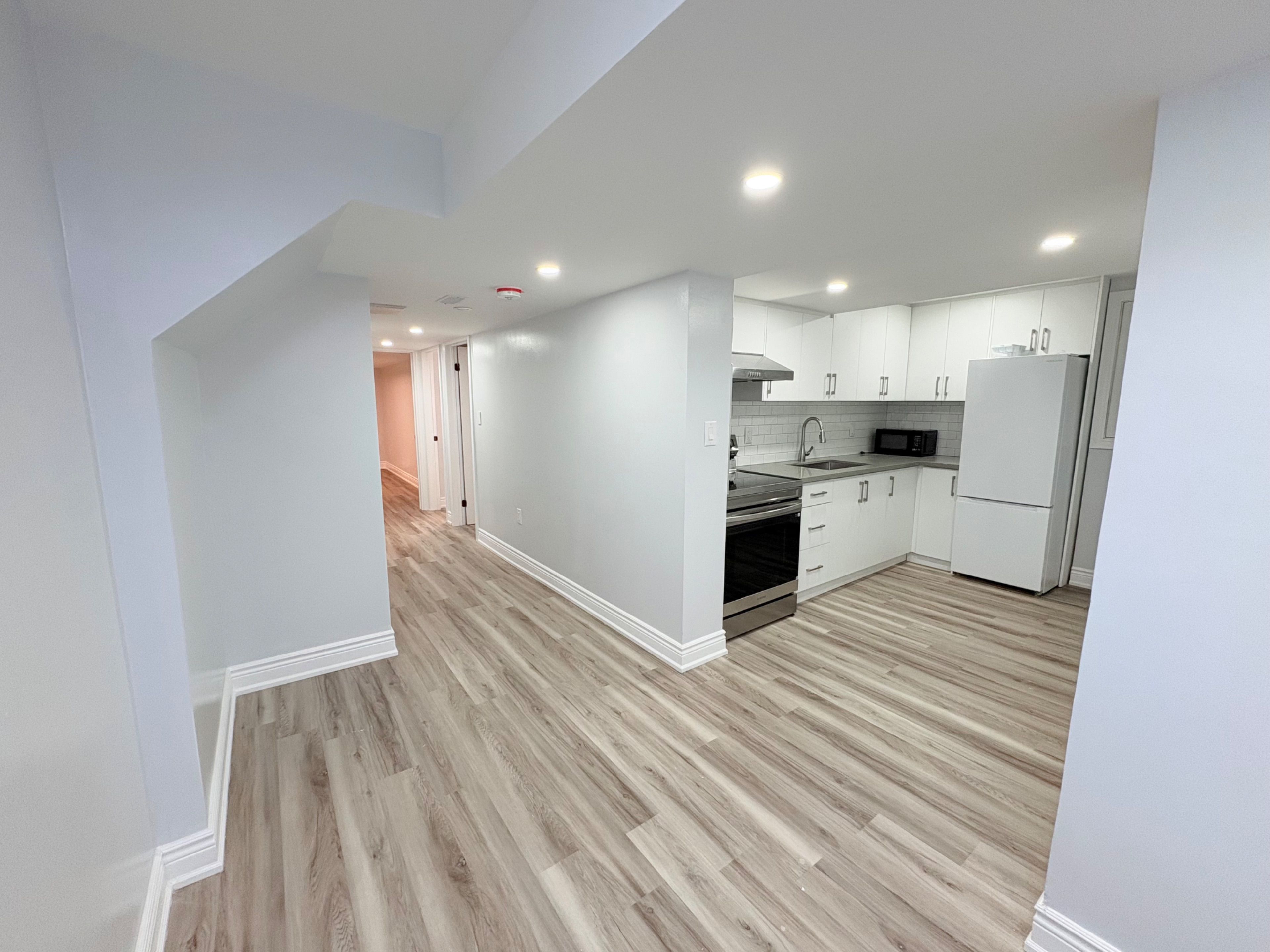 Students, family and professionals welcome! Beautiful 3-bedroom apartment with a private, separate entrance in a desirable markham neighbourhood! Each bedroom features a fully upgraded ensuite bathroom. The home offers a modern kitchen with brand-new quartz countertops, highsmooth ceilings, abundant pot lights, and a dedicated laundry area. Conveniently located witheasy access to hwy 407, hwy 7, and steeles ave, and close to shopping centres, schools, and parks - offering both everyday convenience and a welcoming community atmosphere. Rent includes 2 parking spaces. Tenant responsible for 40% of utilities.