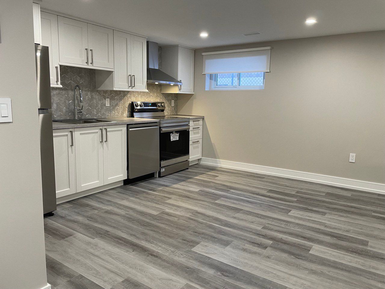 Legal basement apartment. Open concept, large bright with high ceilings, and separate entrance. Completed in 2024, offers a modern living space in a fantastic quiet culdesac location, close to schools, hwy, ttc, and shopping. One parking spot is included, and the tenant pays 30% of utilities. No pet, no smoking