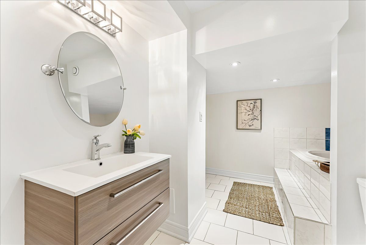 • Finished basement featuring recreation room, exercise room, and spa-like bathroom.