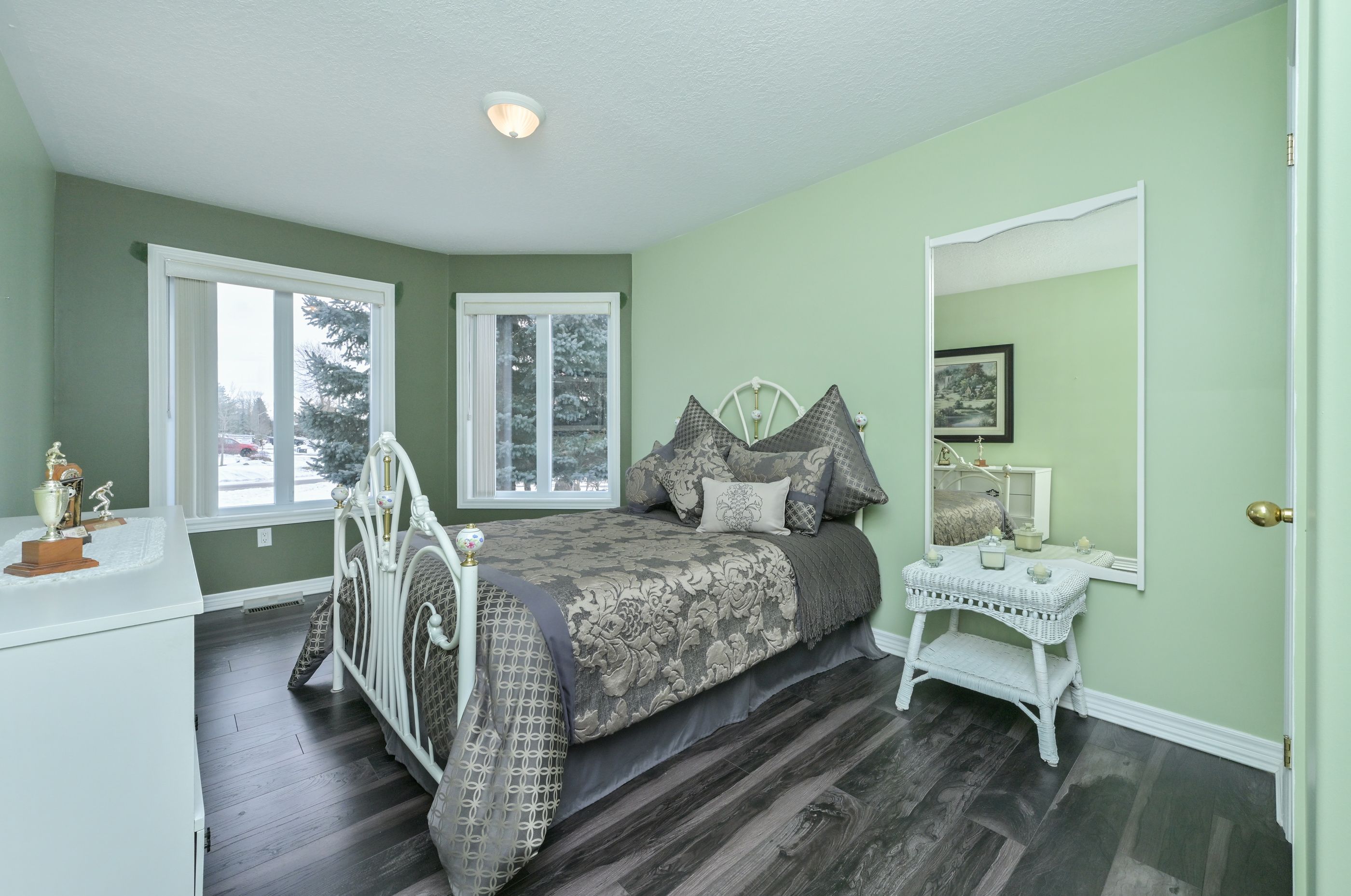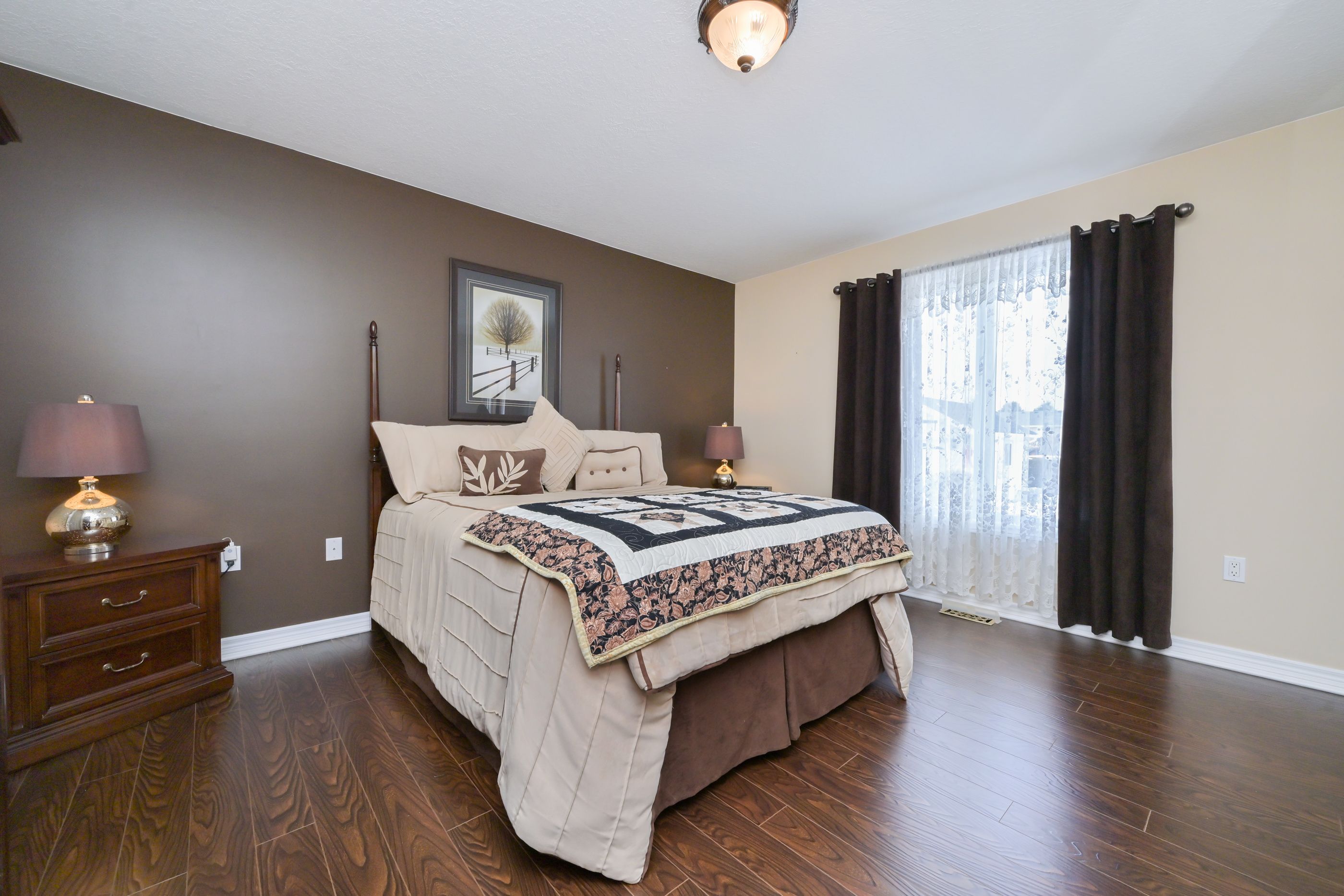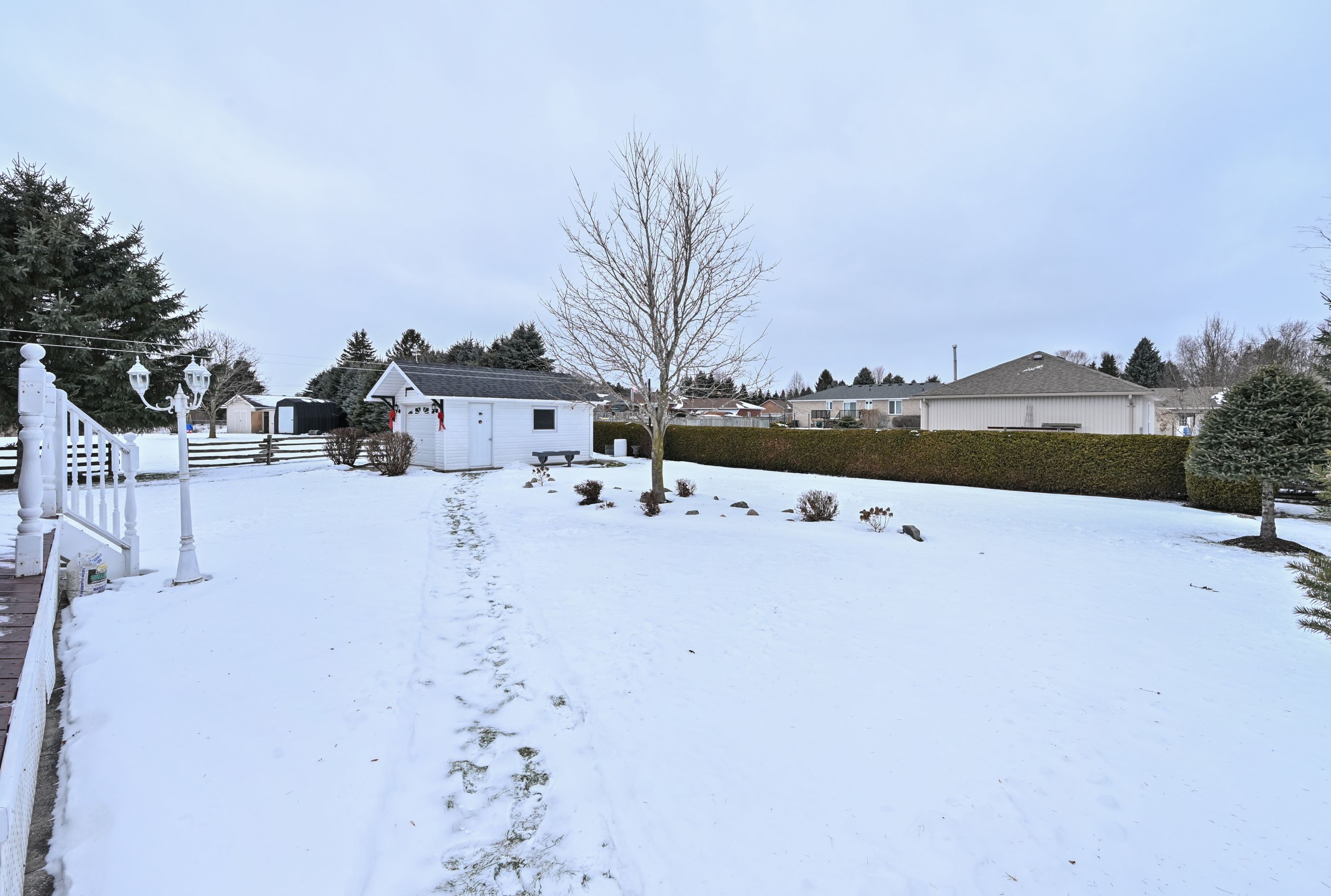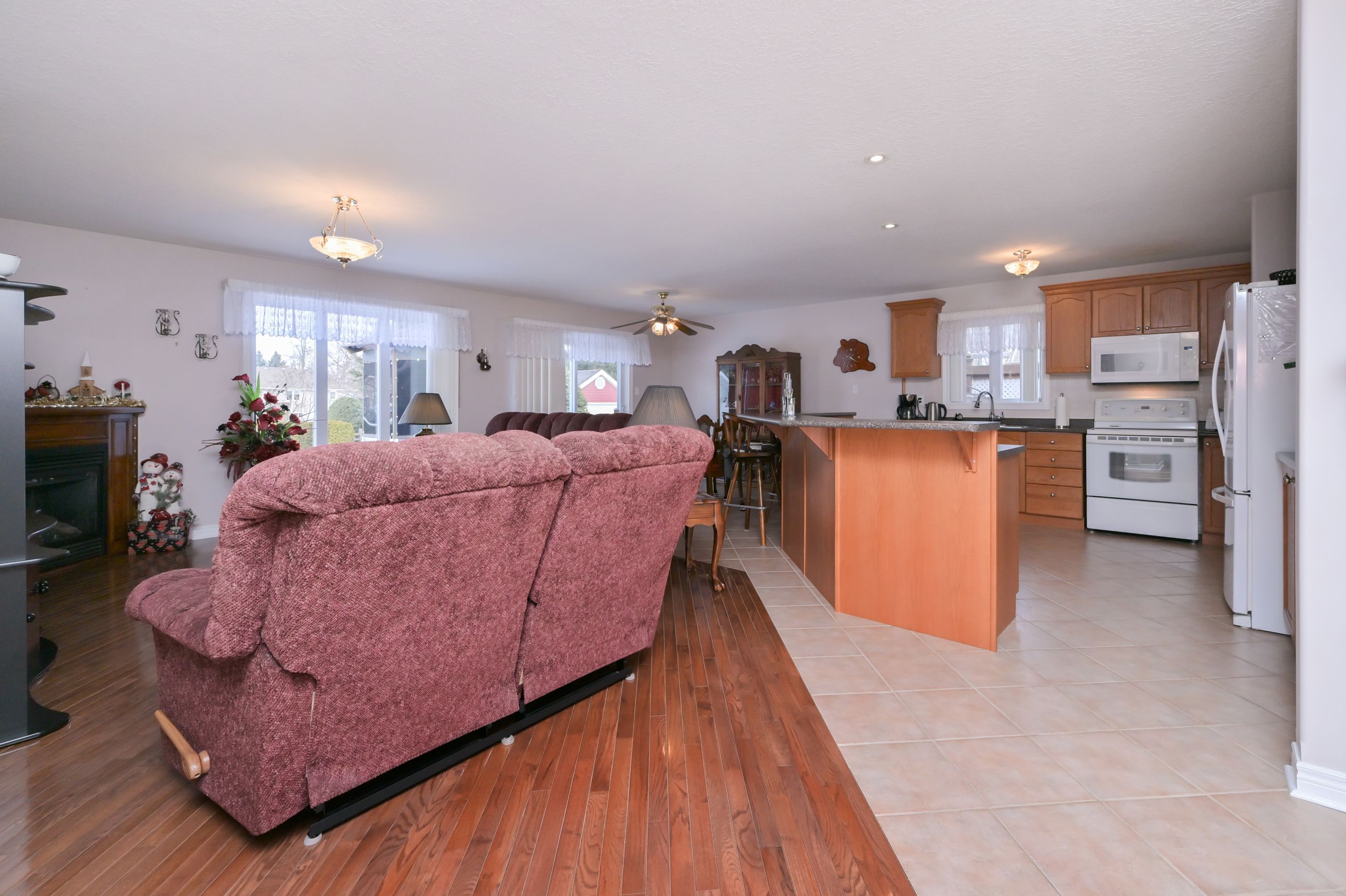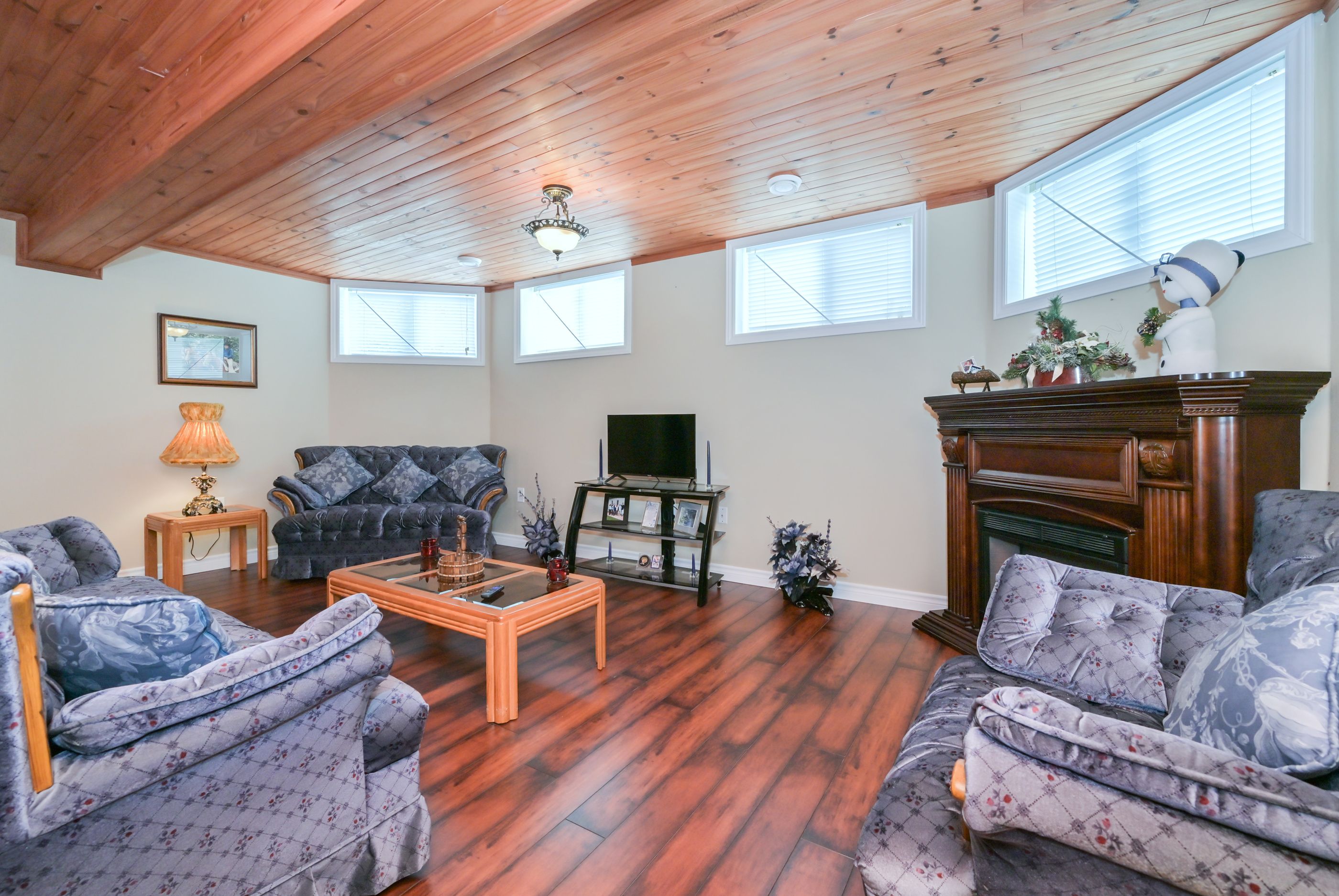 Pride of ownership is evident throughout this one-owner, all-brick home that has been immaculately maintained and exceptionally cared for. Spotless and move-in ready, this residence offers quality craftsmanship, thoughtful design, and outstanding versatility for today's family living. The main level features a bright open-concept layout with hardwood and ceramic flooring throughout (no carpet), a spacious kitchen with a large centre island, and a welcoming living area anchored by a corner gas fireplace. Walk out from the kitchen to a large deck overlooking the fully fenced, level backyard, enhanced by elegant coach lighting and a closed-in gazebo with hydro creating a warm, inviting space for entertaining or relaxing on summer evenings. This home offers four generous bedrooms, including a primary suite with a walk-in closet and 4-piece ensuite. A double-car garage with inside entry leads directly into a large laundry/mudroom, providing excellent functionality and potential for a private entrance, perfect for an in-law suite or future basement apartment. The fully finished basement adds exceptional value with a large bedroom (with potential of a second), a stunning luxury bathroom, cold cellar with built-in shelving and freezer, and a meticulously clean storage room with additional shelving. A standout feature is the detached shop (approx. 12. 5 x 20) with hydro, concrete pad, roll-up door, and man-door access. The large paved driveway comfortably accommodates 6 vehicles. Updates include windows (2018), roof (2019), central air, central vacuum, soundproof flooring and in-ground lawn sprinklers. This is a rare opportunity to own a home that has been lovingly maintained from day one, offering space, flexibility, and long-term value inside and out.