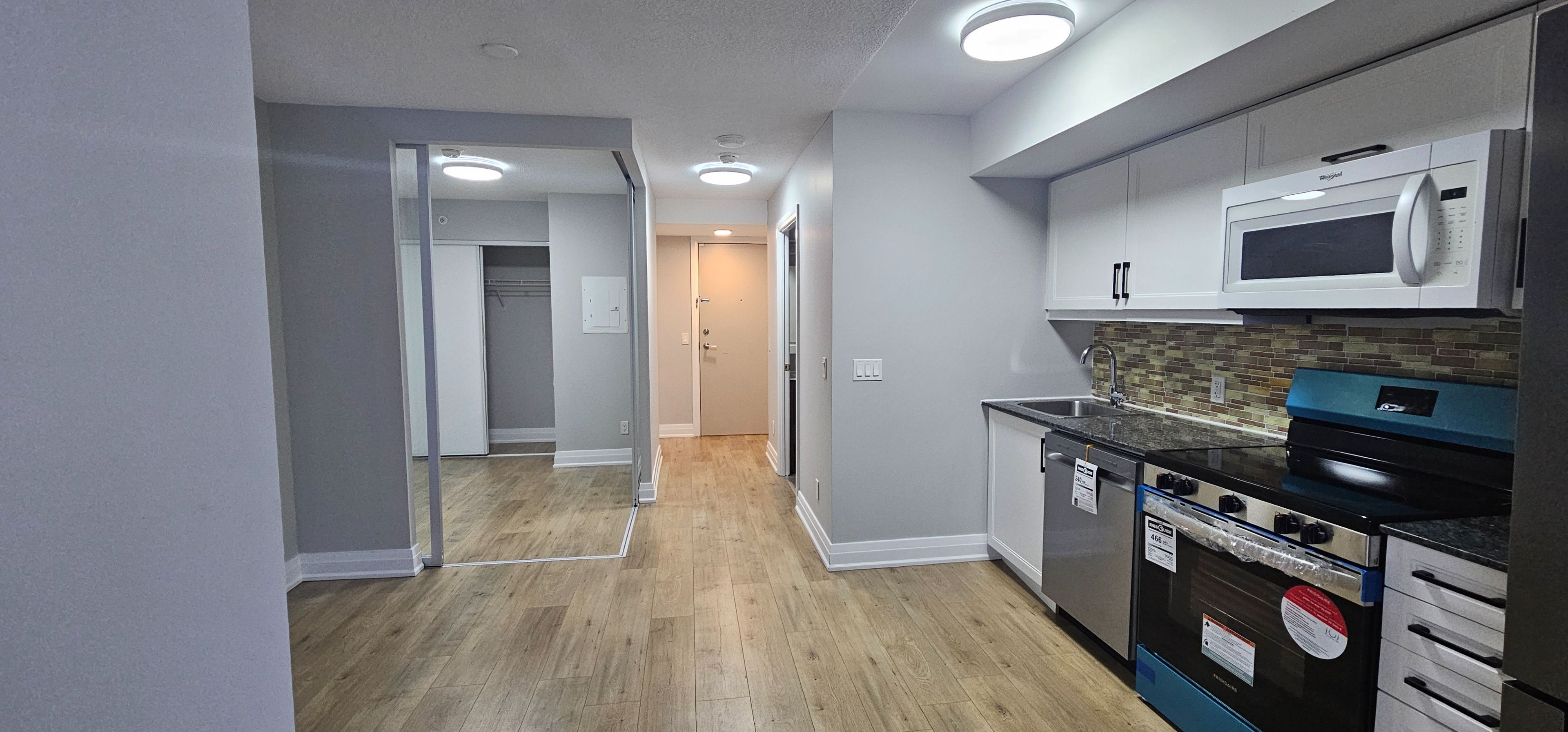 • Contemporary 1-bedroom suite with bright west-facing exposure for natural light.
