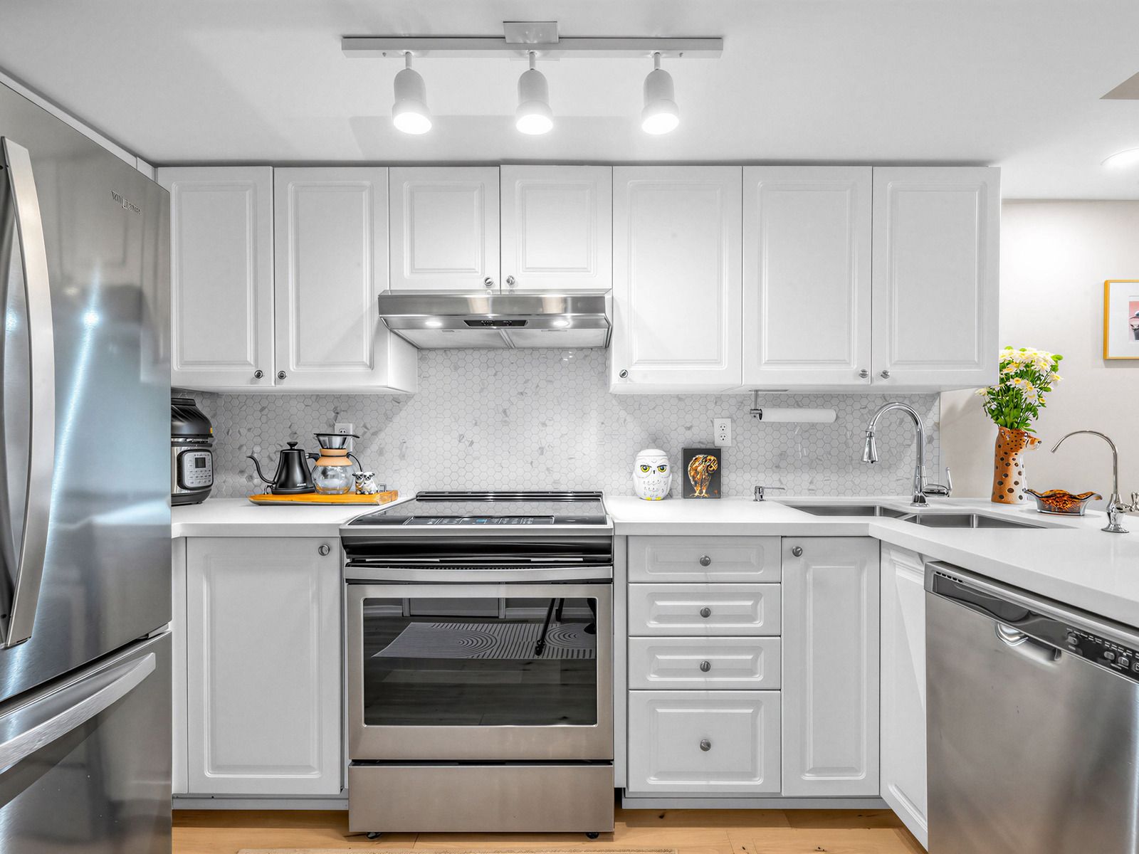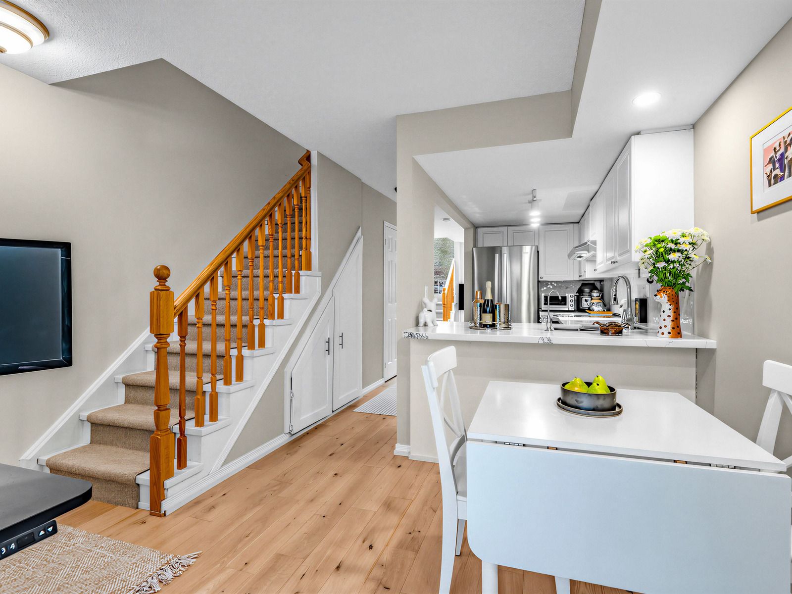 • Recent upgrades include new hardwood flooring and appliances for modern living.