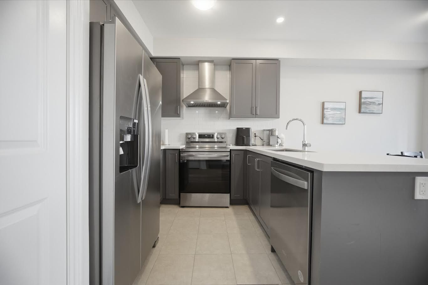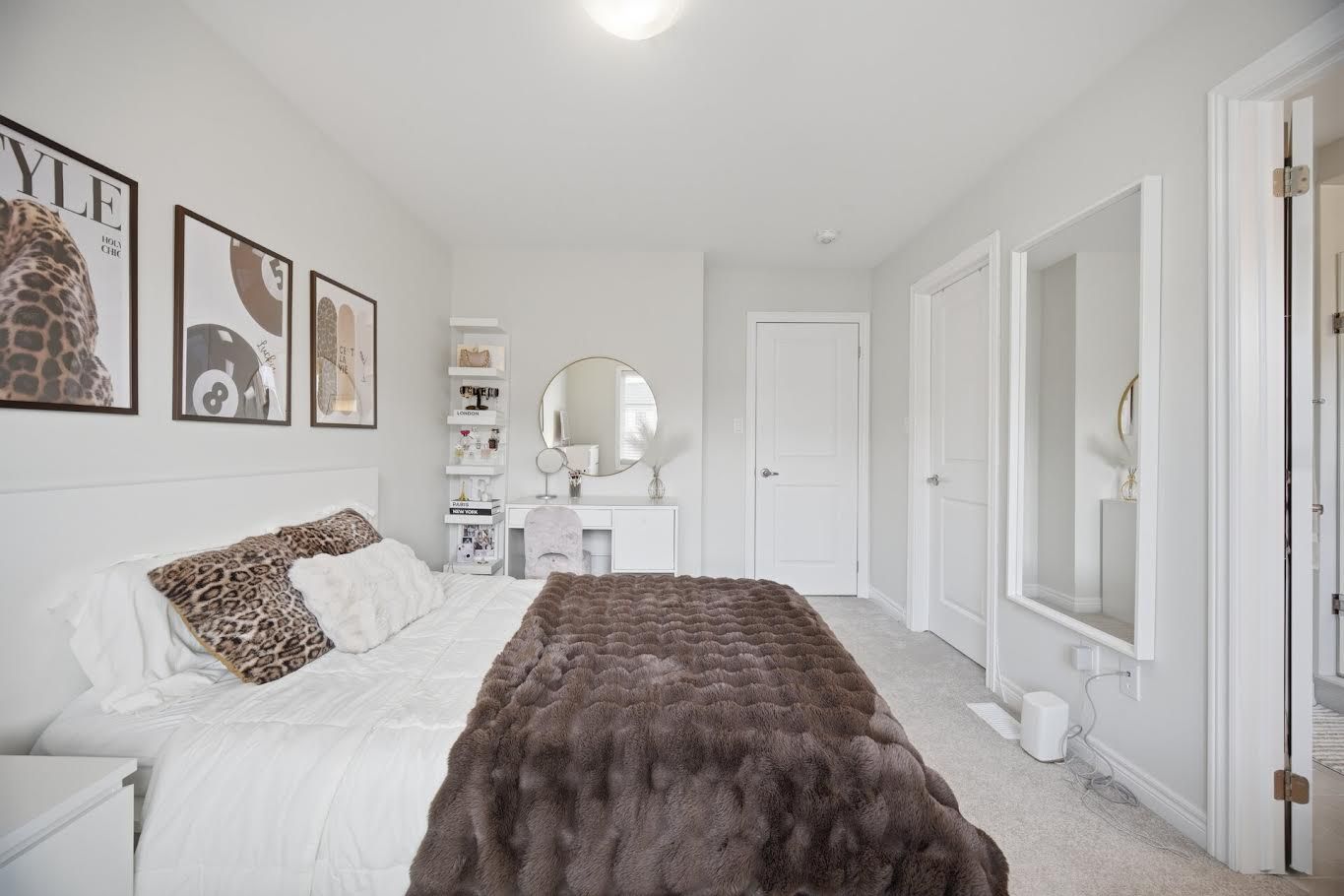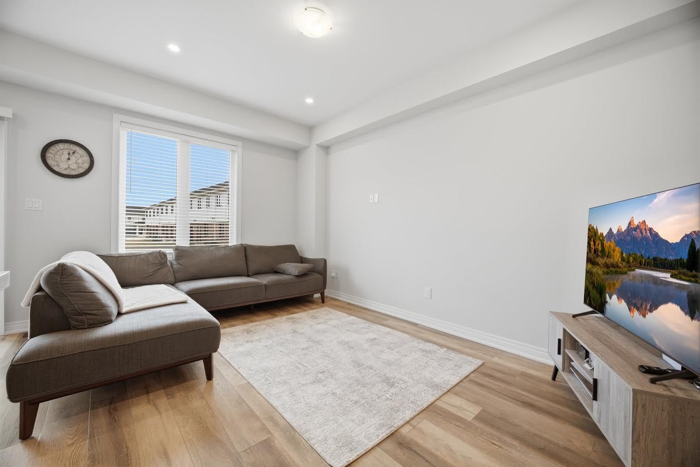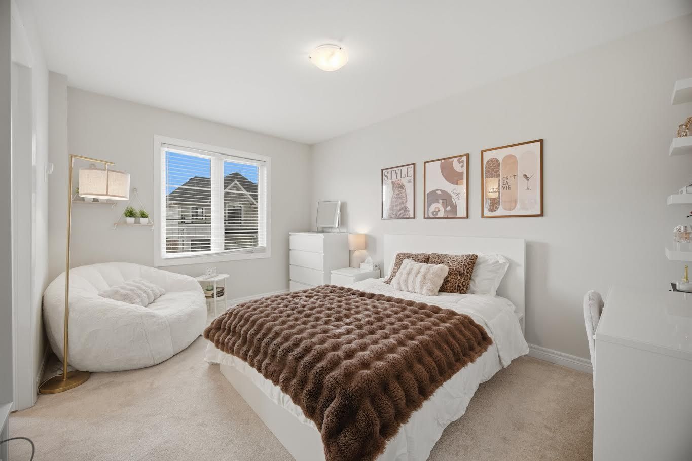 This beautifully appointed townhouse is located in the tranquil and highly sought-after ryckman s community, offering a perfect blend of comfort and modern design. The home features a thoughtfully designed open-concept layout with 9-foot ceilings, a contemporary great room, and an upgraded gourmet kitchen complete with quartz countertops, extended upper cabinetry, and a functional breakfast bar. Expansive windows on both levels provide abundant natural light, creating a bright and inviting interior. The second floor offers three well-proportioned bedrooms, including a spacious primary suite with a private ensuite and walk-in closet. A conveniently located second-floor laundry area enhances everyday functionality. An exceptional opportunity to enjoy stylish living in a peaceful neighborhood setting.