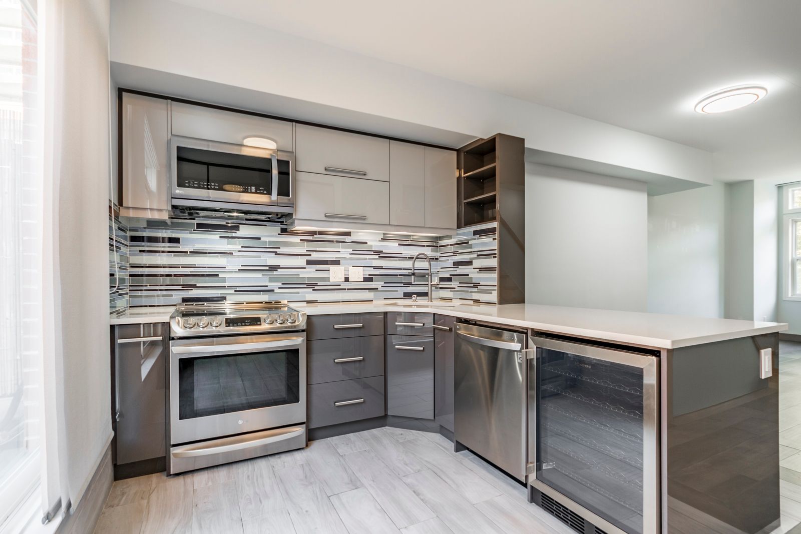 • Gourmet kitchen equipped with high-end appliances and quartz countertops.