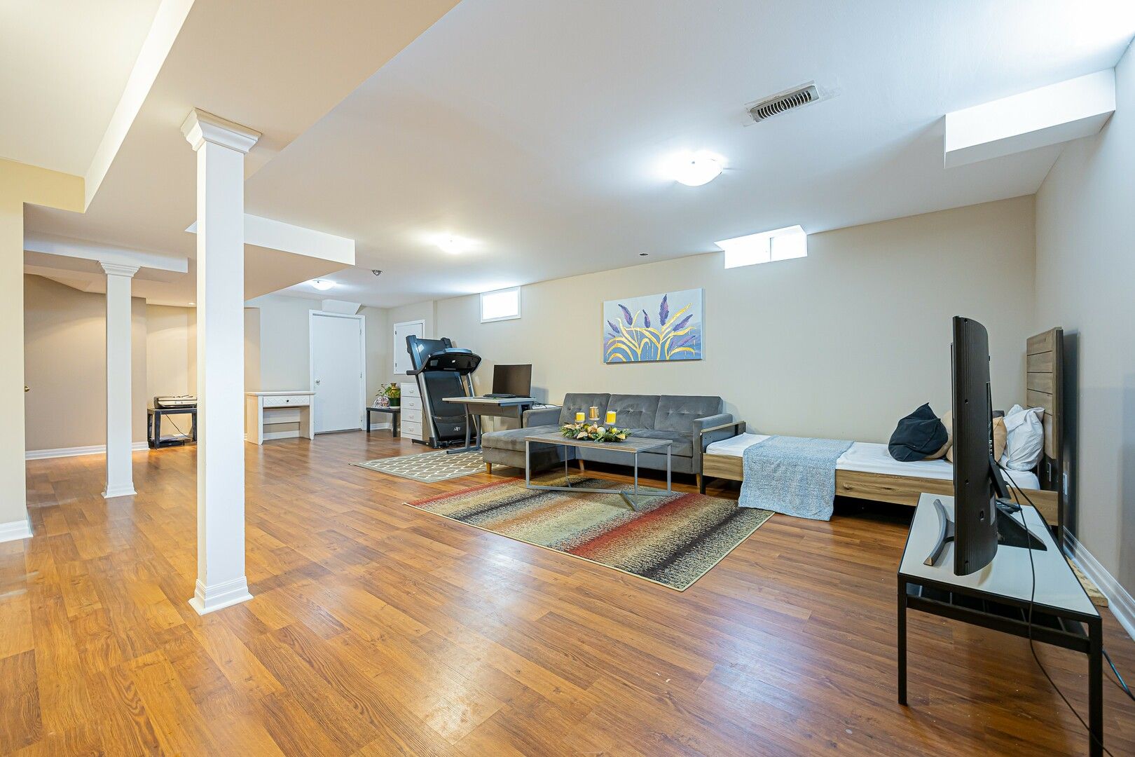 Rare opportunity to own a beautifully crafted detached home in the highly desirable westbrook community. Featuring a bright open concept layout with hardwood floors on the main level, a welcoming living and dining space, and a modern eat-in kitchen with breakfast bar and walk out to the backyard perfect for entertaining and everyday comfort. Generously sized bedrooms include a private primary retreat with ensuite, while the finished basement offers flexible space for a recreation room, home office, or guest suite. Set on a wide lot that expands at the back, this home is surrounded by scenic trails and parks and is just steps to rougecrest park, schools, and neighbourhood amenities. A perfect blend of space, lifestyle, and location.