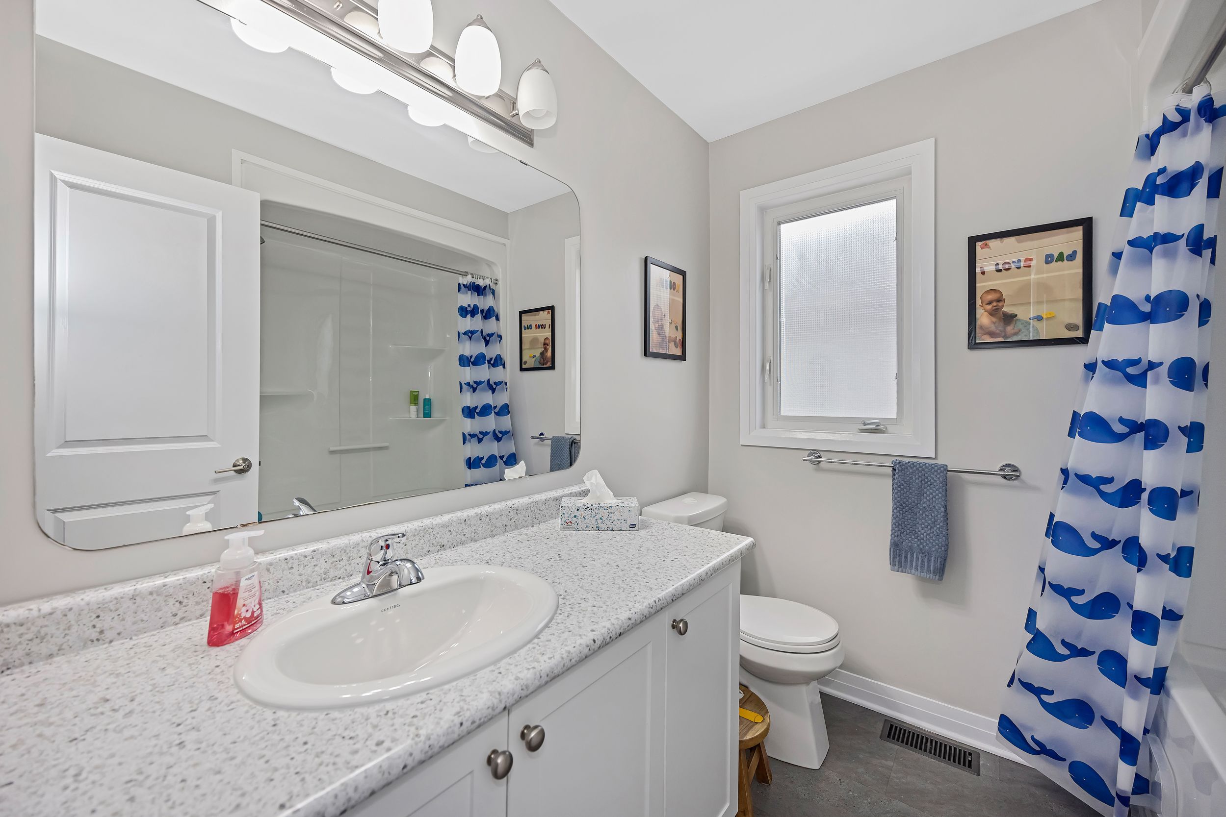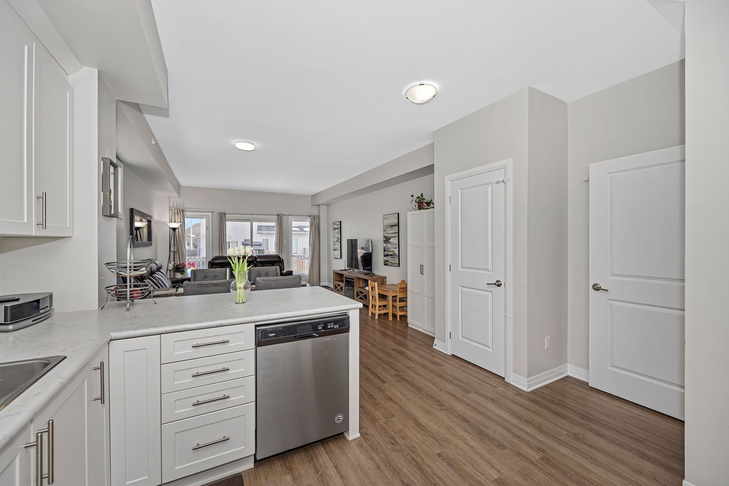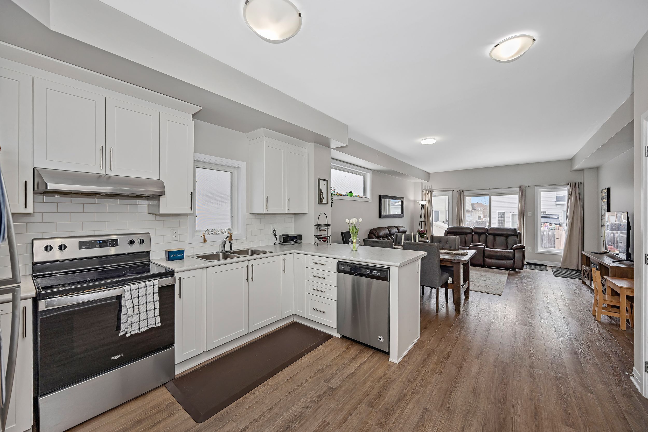 • Bright open-concept main level with a stylish kitchen and granite countertops.