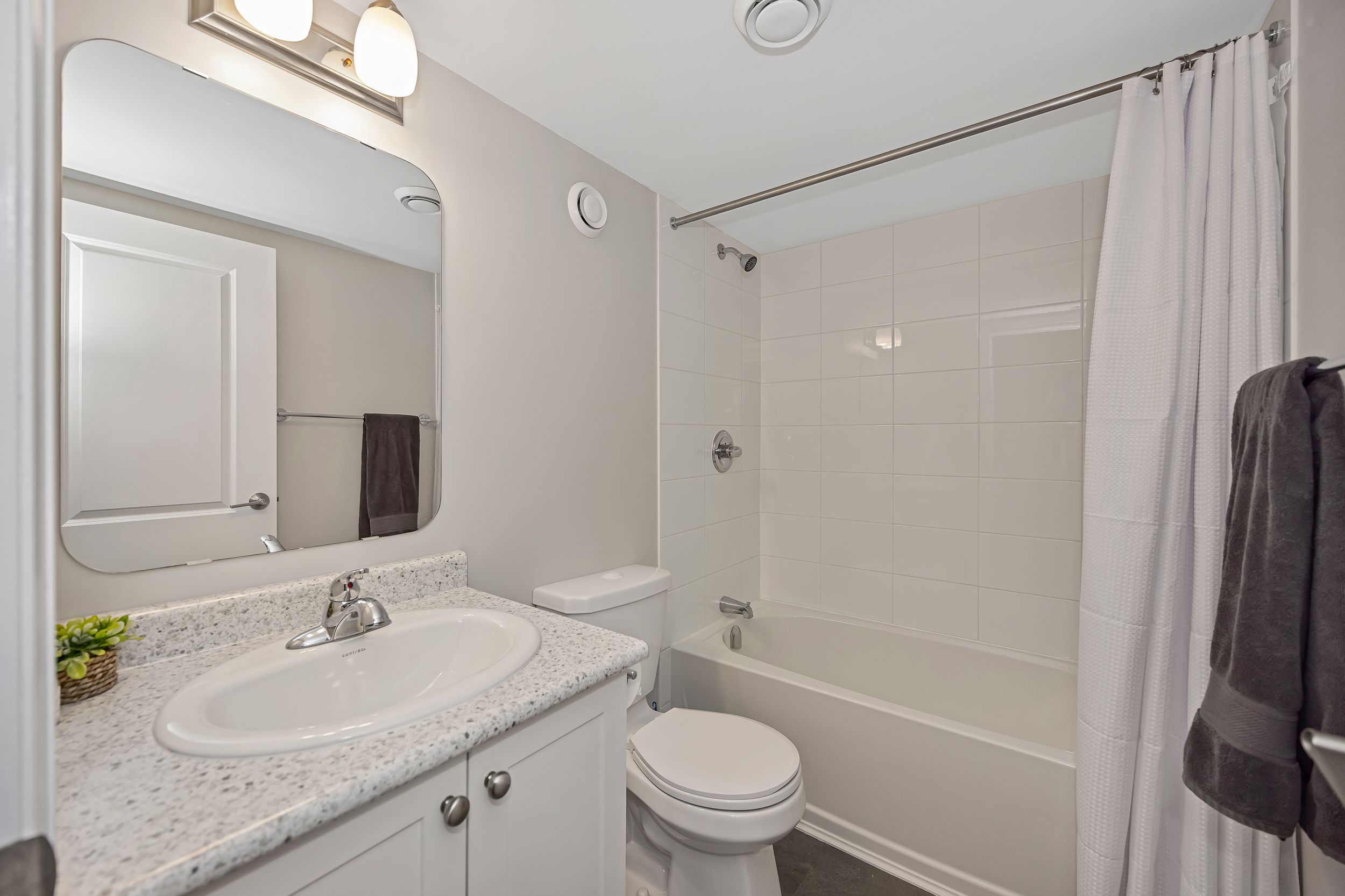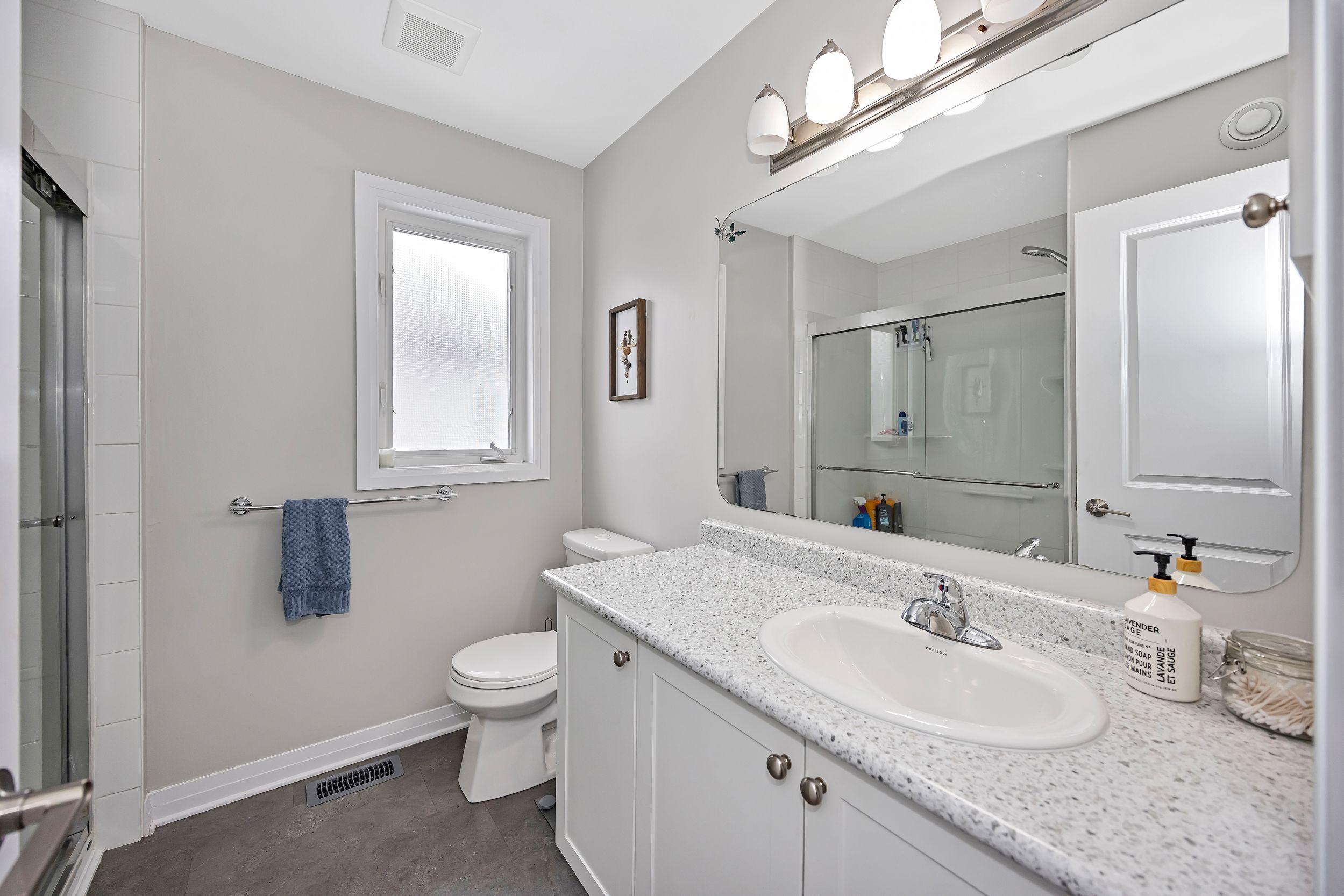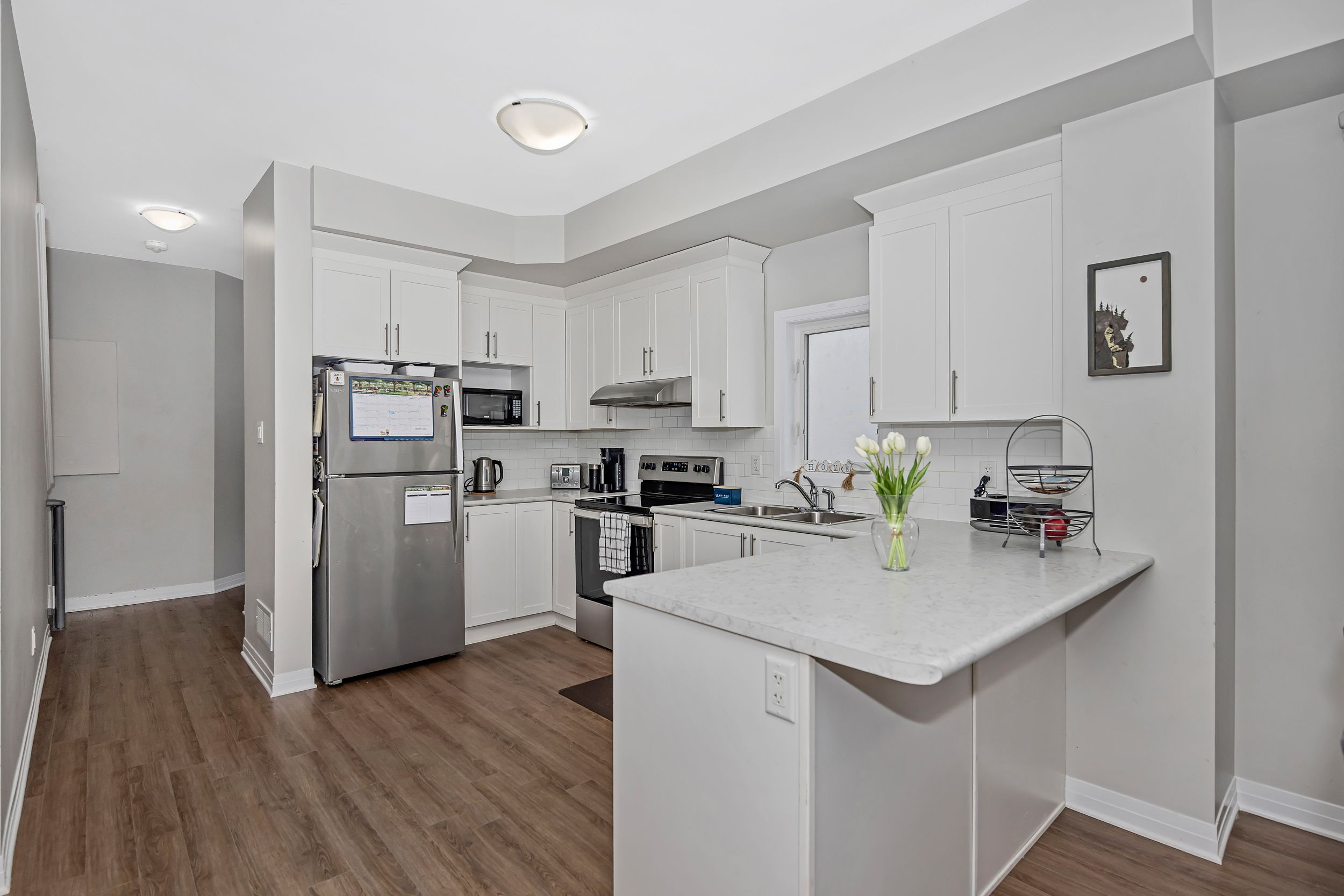 • Bright open-concept main level with a stylish kitchen and granite countertops.