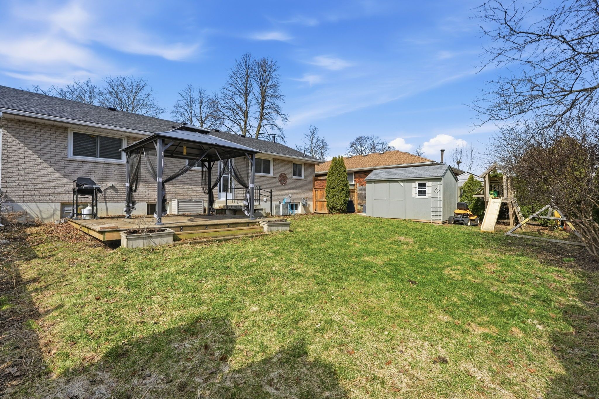Opportunity knocks in brantford's desirable north end! Rarely offered on a quiet cul-de-sac, this bungalow is perfectly situated close to schools, parks, shopping, and easy access to hwy 403. The bright main level features an eat-in kitchen with gas stove, 3 bedrooms and plenty of natural light, while the spacious lower level offers a large recreation room, bathroom, laundry area, ample storage, and potential for a secondary suite. Ideal for buyers looking to add their personal touch, this home is ready for some tlc and endless possibilities. Recent updates include roof shingles (2025) and a double-wide driveway. Enjoy the sunny, private backyard complete with a deck, gazebo, shed, and cedar tree fencing-perfect for relaxing or entertaining. Located just minutes from lynden park mall, this is a fantastic opportunity to invest in a highly sought-after, family-friendly neighbourhood.
