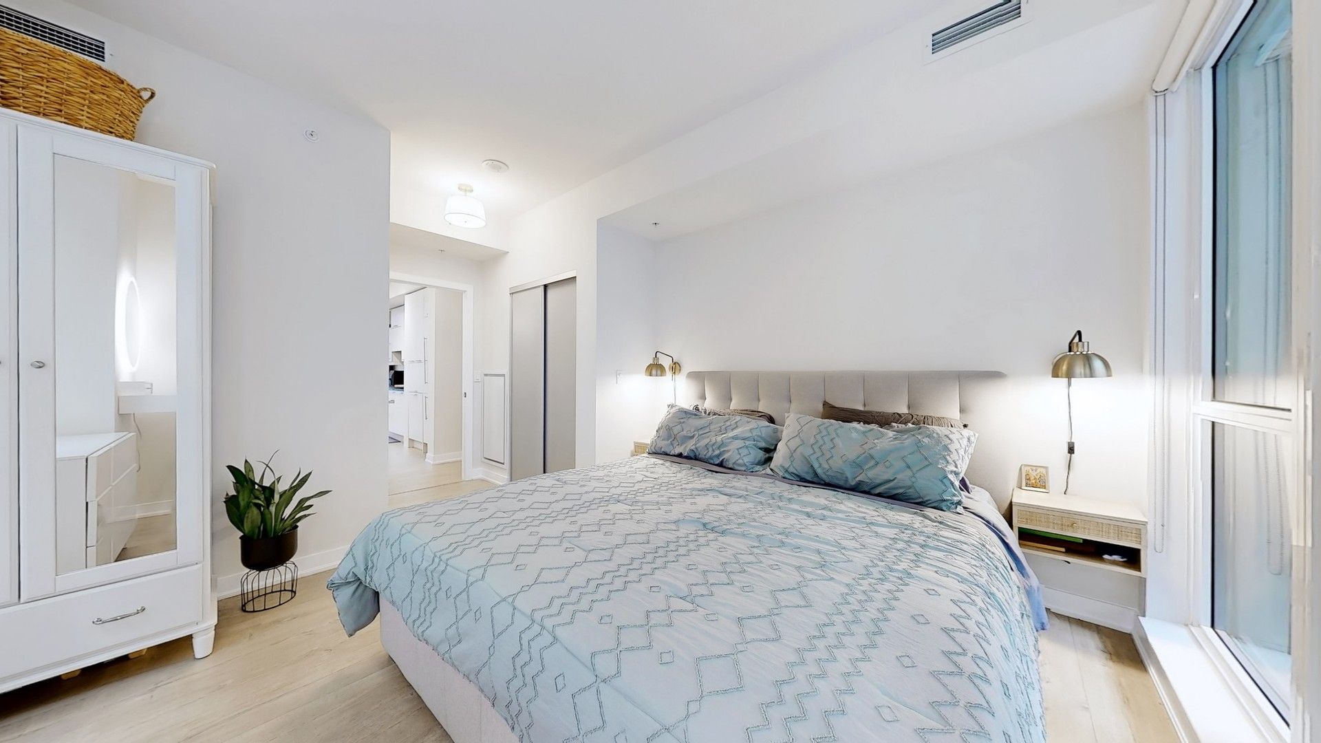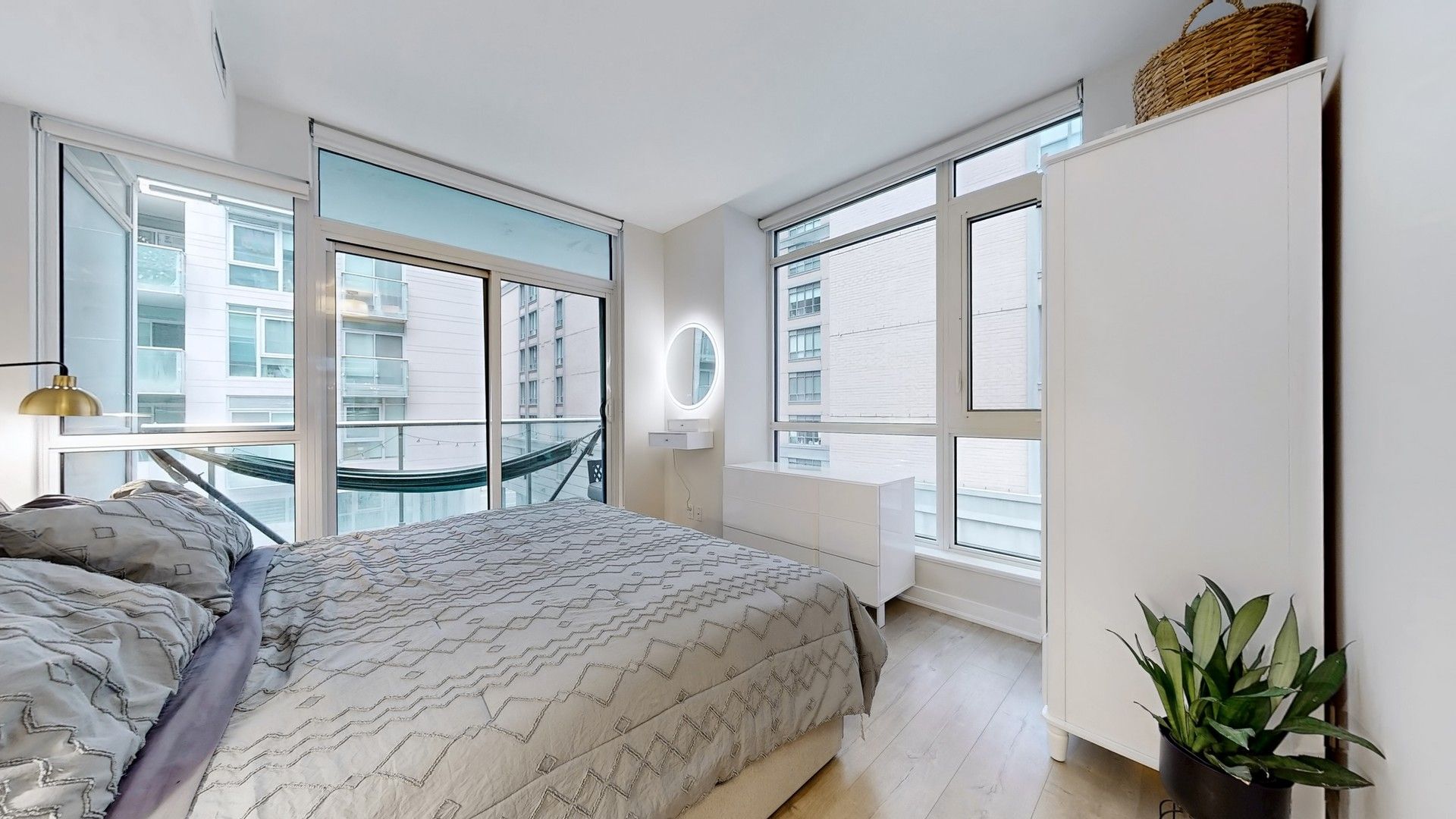 • Bright corner suite with modern design and abundant natural light.