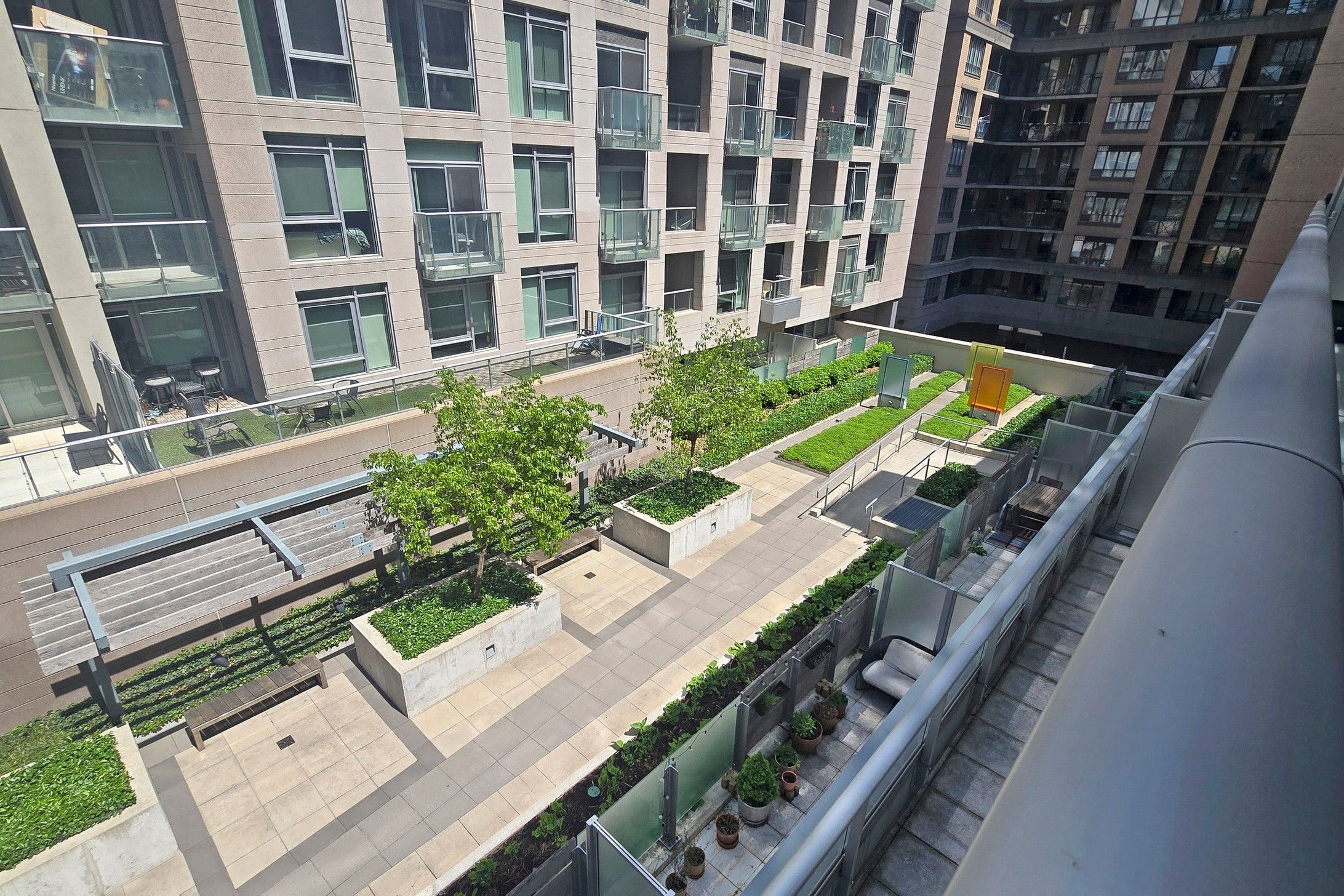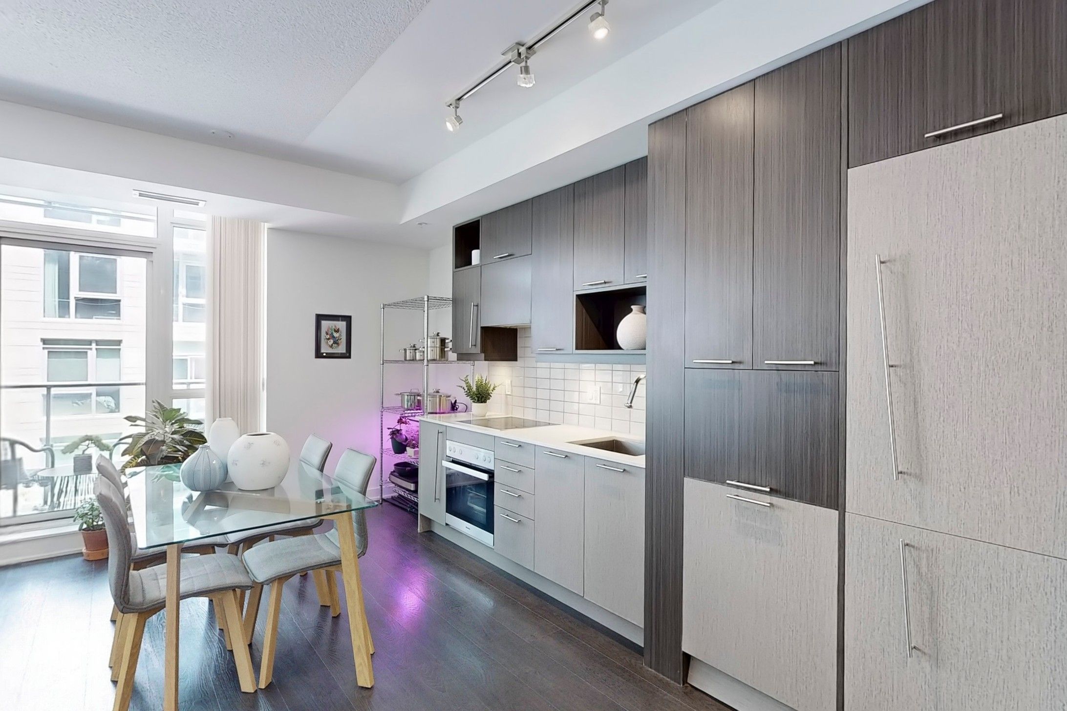 Live elevated at studio 2 condos experience refined downtown living in this beautifully designed 1+1 suite (631 sqft per mpac) at studio 2 condos. Thoughtfully laid out with a den ideal as a second bedroom or private office, this residence blends sophistication with functionality. Soaring 9-foot ceilings and floor-to-ceiling windows flood the space with natural light, while the expansive 150 sqft balcony overlooking a serene courtyard offers a rare and peaceful urban retreat. The sleek open-concept kitchen showcases premium built-in miele appliances, seamlessly combining modern elegance with everyday practicality. Perfectly positioned steps from osgoode station, world-class dining, the financial district, and top institutions including u of t, tmu, and ocad, this address places you at the centre of toronto's finest. Residents enjoy an exceptional suite of amenities: 24-hour concierge, state-of-the-art fitness centre, at, elegant party with bar, jacuzzi, billiard table, and meeting spaces, sauna, guest suites, visitor parking, and secure bike storage. Downtown living, redefined. (optional full furniture package available at a negotiable price, including bed & mattress, desk set, tv, dining table (4 seats), l-shaped sofa, coffee table, rug, lamps, side tables, and outdoor storage box.)