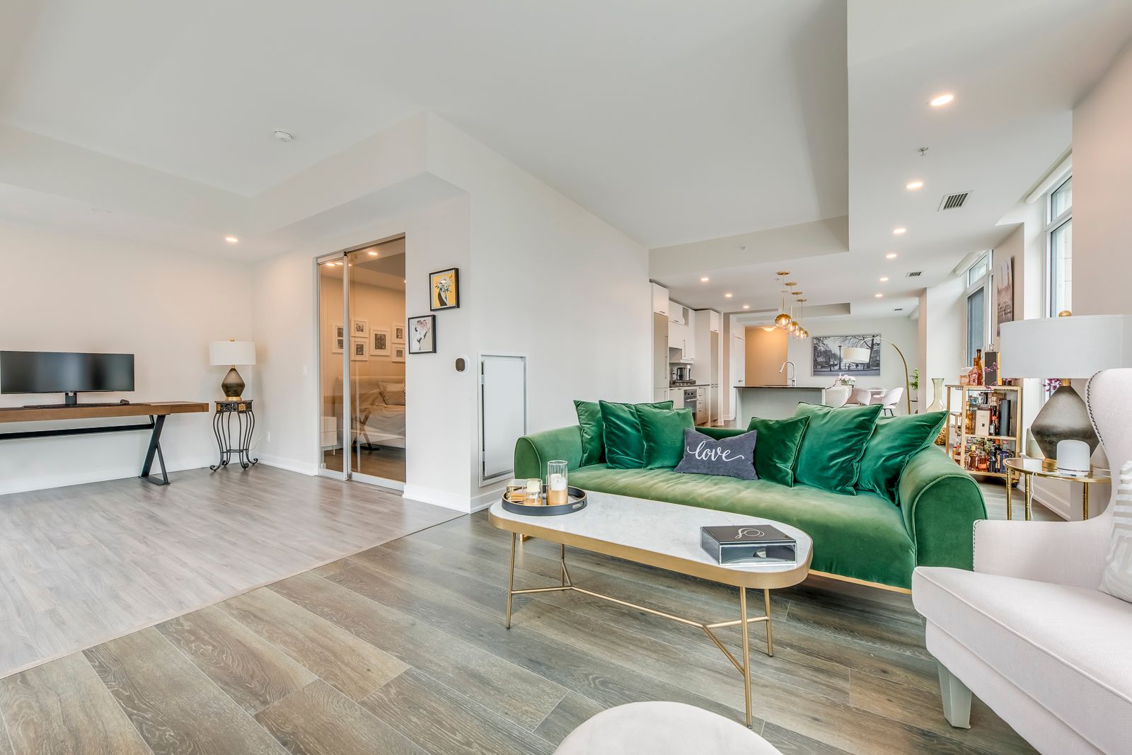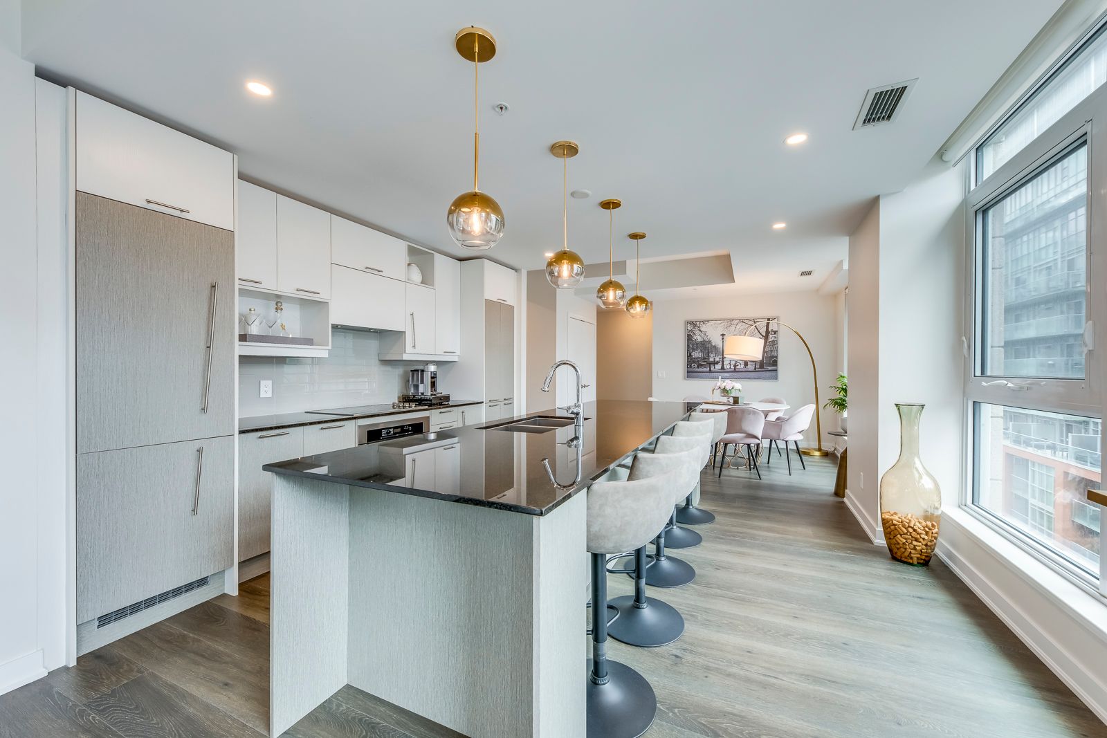 • Open-concept layout with a large kitchen island, great for entertaining.