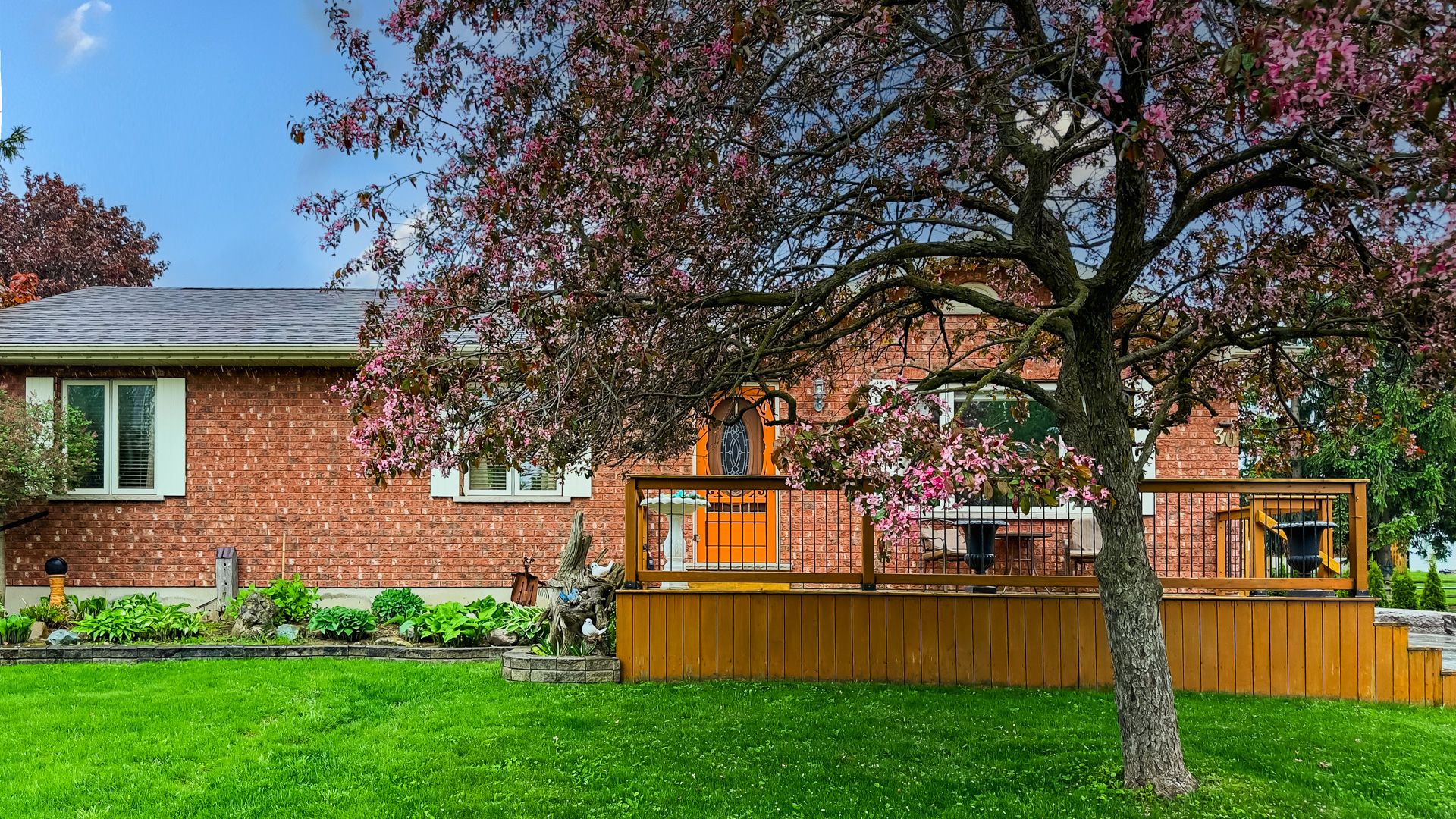 • Beautifully landscaped yard featuring mature trees and a tranquil pond.