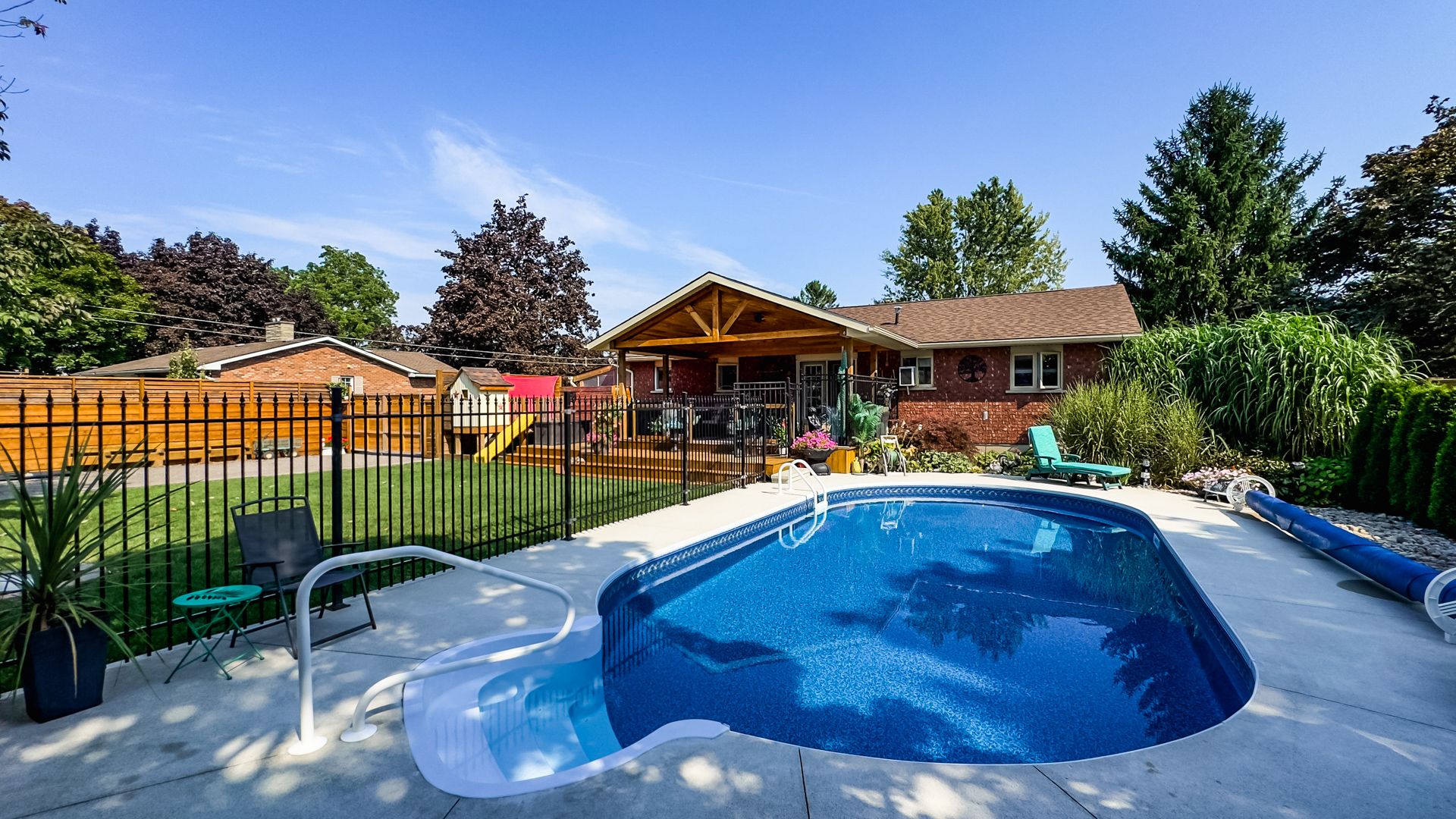 They're calling for one of the hottest summers yet... And this is exactly where you'll want to be. 30 north street in egmondville - where backyard living takes centre stage. Imagine long summer days spent poolside in your heated saltwater pool, evenings under the covered deck, and weekends filled with family, friends, and unforgettable memories. This private outdoor oasis is truly something special - beautifully landscaped with mature trees, perennial gardens, a tranquil pond, and multiple spaces to relax, entertain, and unwind. Whether it's kids splashing in the pool, grandkids playing in the yard, or hosting the perfect summer bbq... This backyard was made for it all. Step inside and you'll find an immaculate, move-in ready home offering 2+1 bedrooms, 2. 5 bathrooms, and convenient main floor living. The solid amish-built kitchen features maple cabinetry, subway tile backsplash, and updated flooring - all tied together with fresh, modern finishes throughout. The fully finished lower level adds even more space with a large family room, cozy gas fireplace, guest bedroom, full bath, and plenty of storage - ideal for extended family or visitors. Lovingly maintained and thoughtfully updated over the years, this home offers peace of mind with improvements including bathrooms, windows, flooring, decking, roof, and more. And the extras don't stop there - a pool shed plus a 16x20 workshop give you all the storage and hobby space you could need. This isn't just a home... It's your own private staycation. 30 north street - where summer never ends