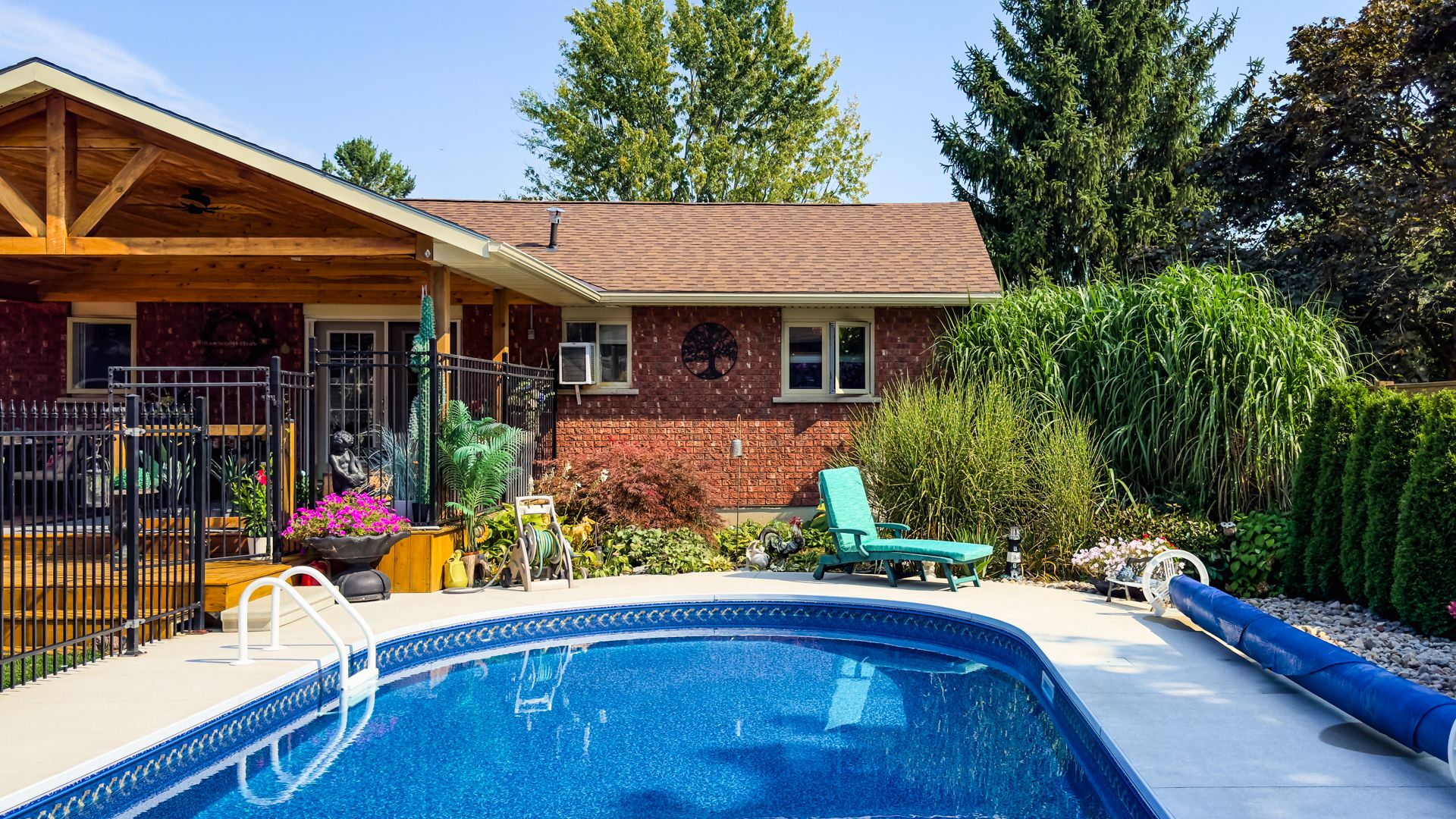 • Private outdoor oasis with heated saltwater pool for summer enjoyment.