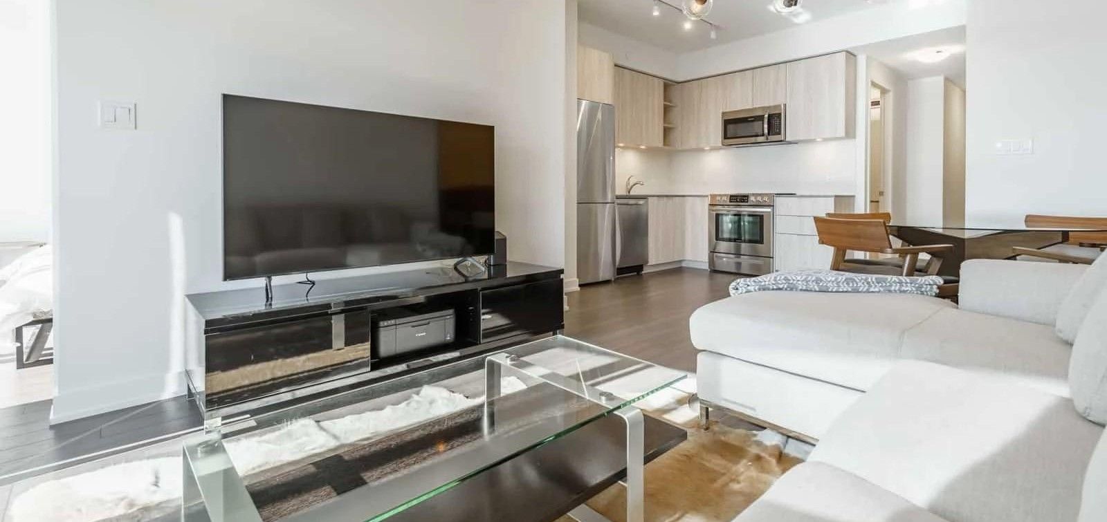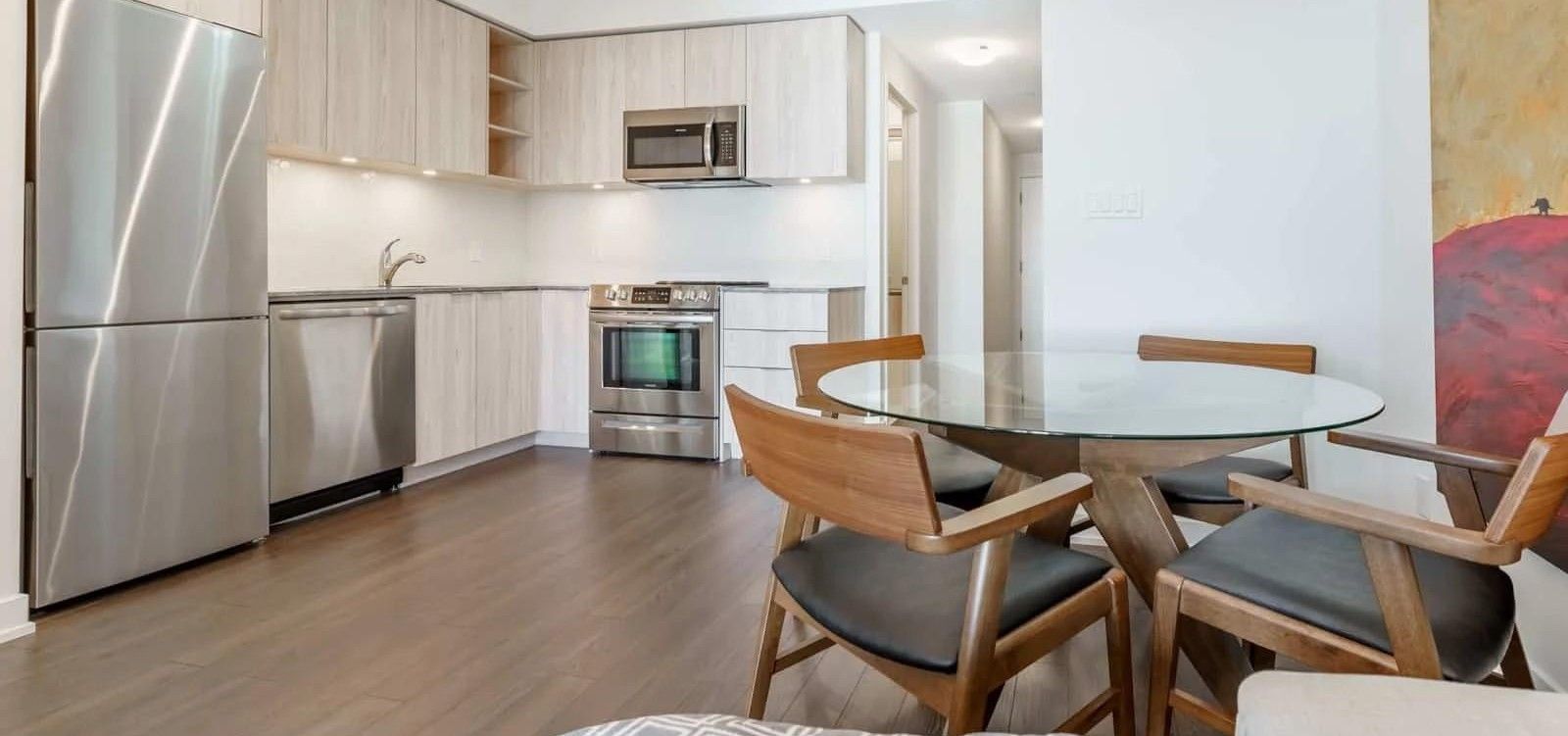 Fully furnished one bedroom condo with water views, large balcony, stainless steel appliances. Great open layout, bright and spacious unit. Unit comes with a queen size bed, all linens, 4 pillows, comfortable sofa, and 4 piece dining set. Well equipped unit, all you need is your suitcase.