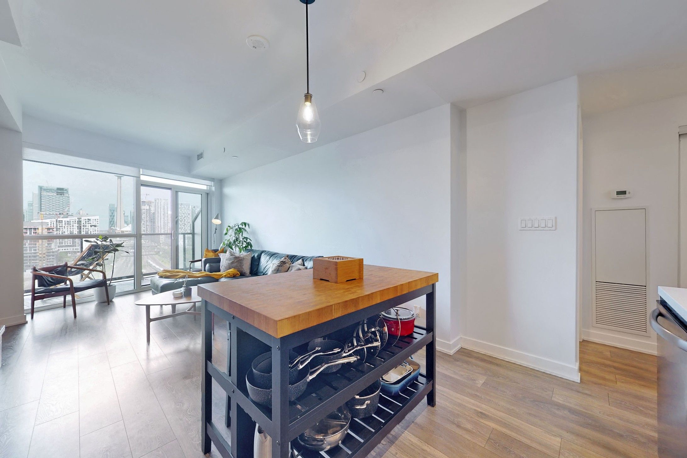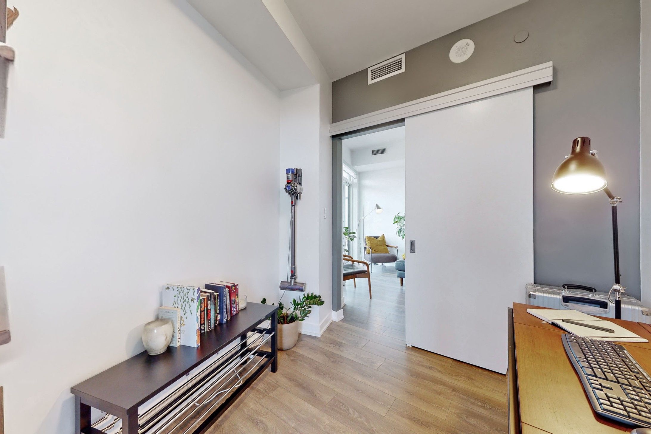 This bright one plus den corner unit is incredibly well laid out with two separate balconies that have been tiled for comfort and can be accessed from the primary bedroom and living room functional layout! Den can be used as a separate bedroom or as an amazing home office. Located steps away from liberty village with access to parks, lake ontario, restaurants, coffee shops, grocery stores, ttc. Garrison point offer great amenities (large gym, outdoor swimming pool, party room and guest suites. City living at its finest.