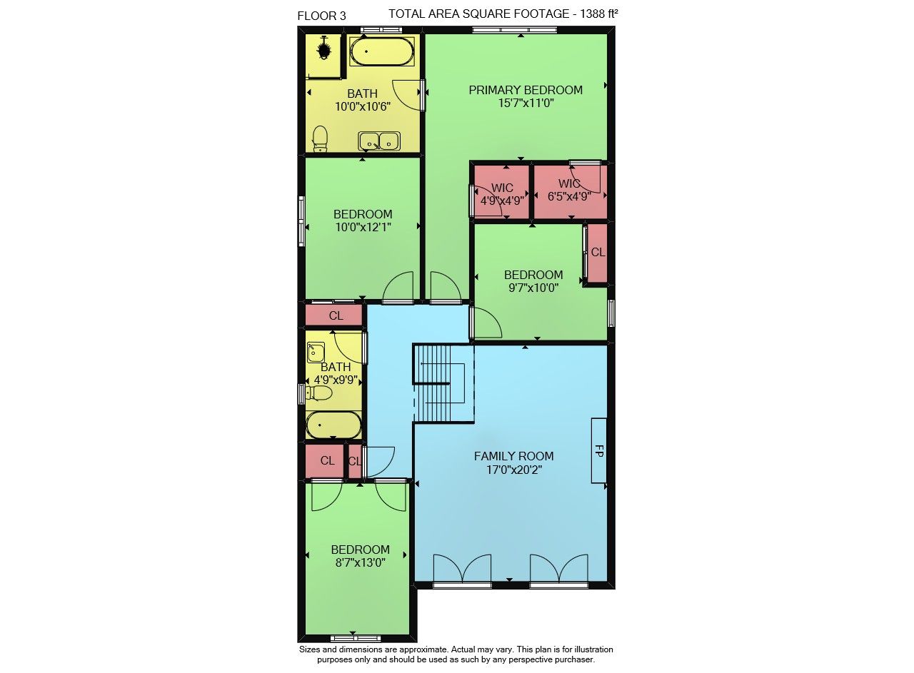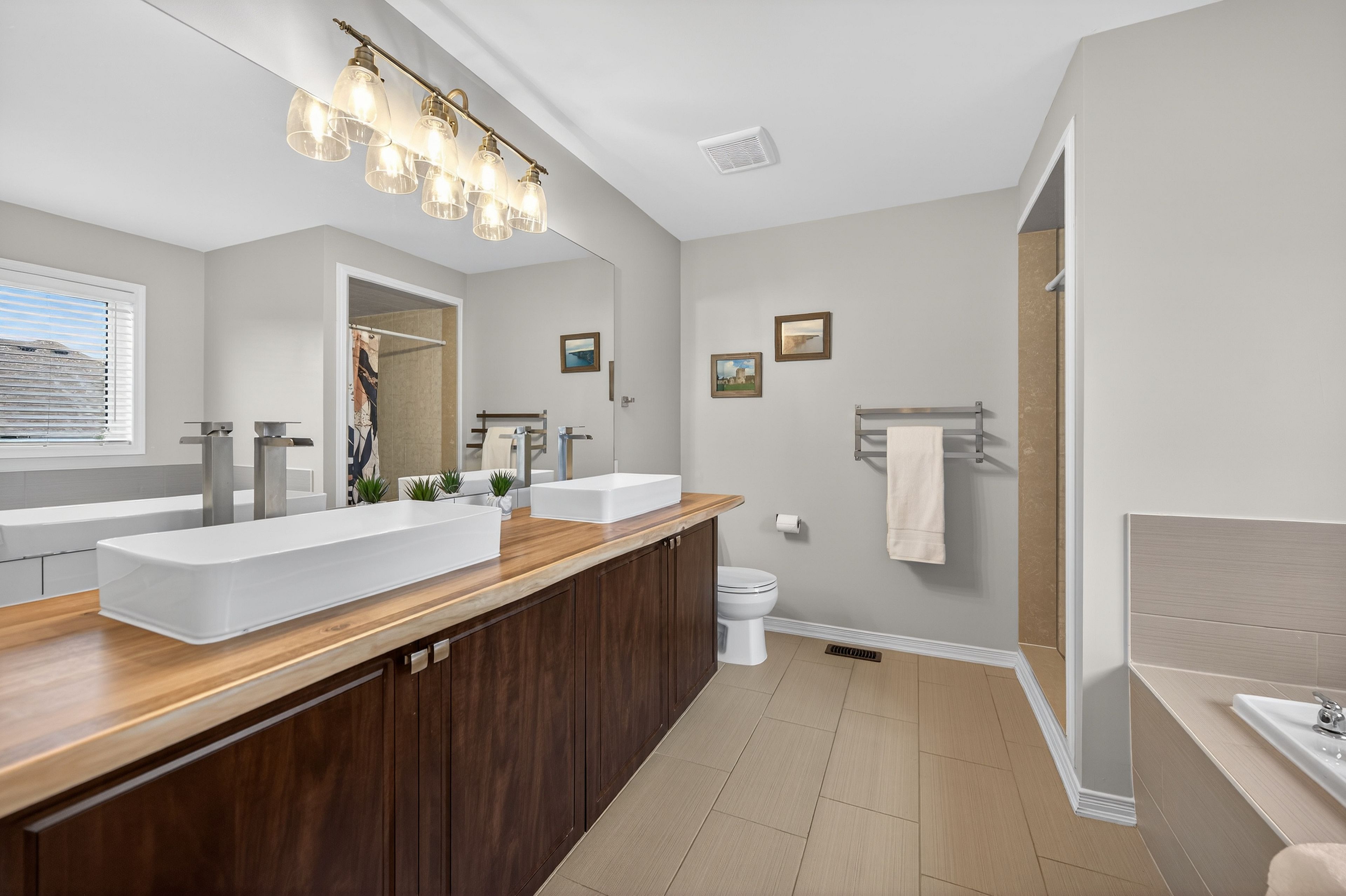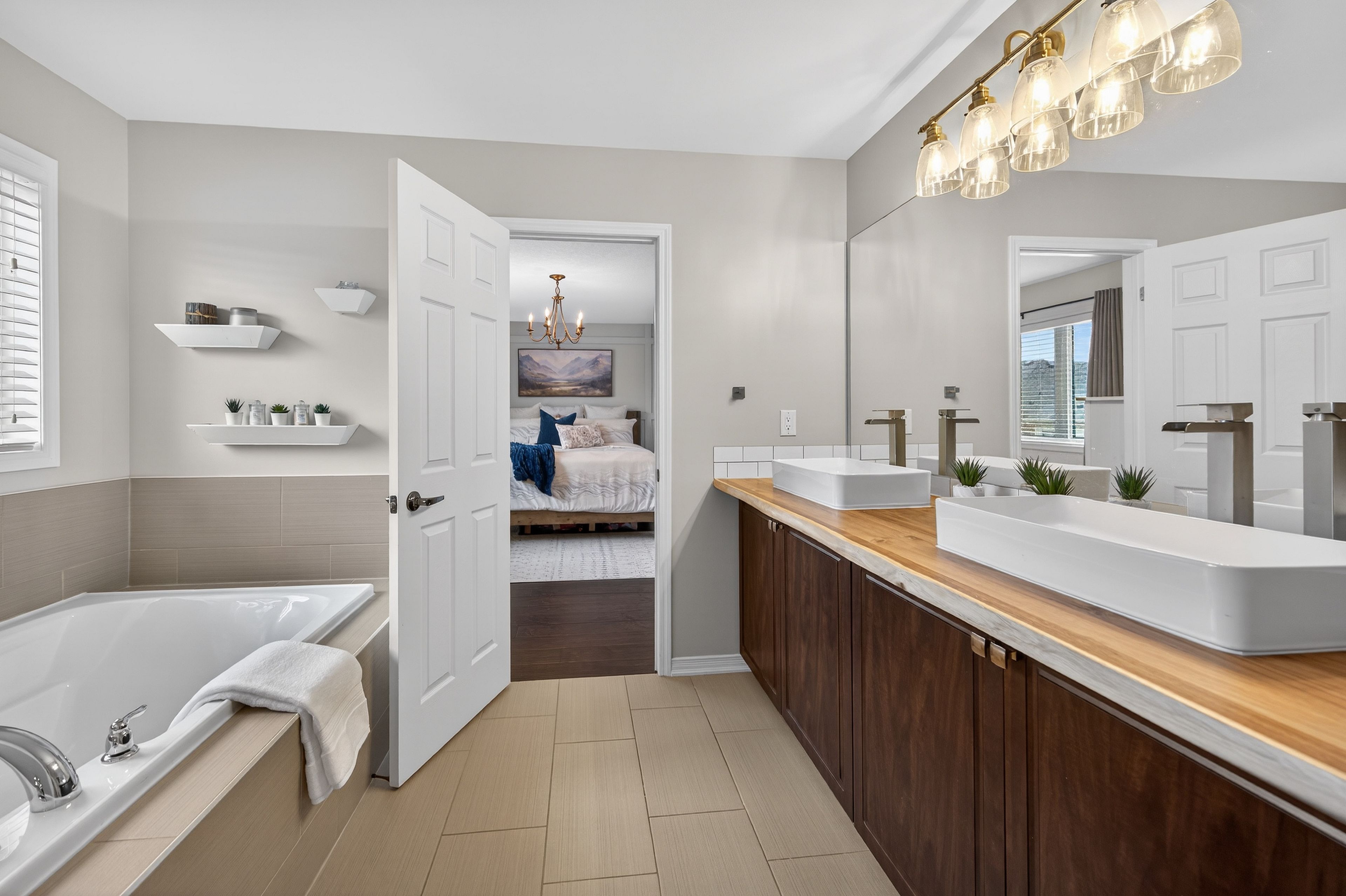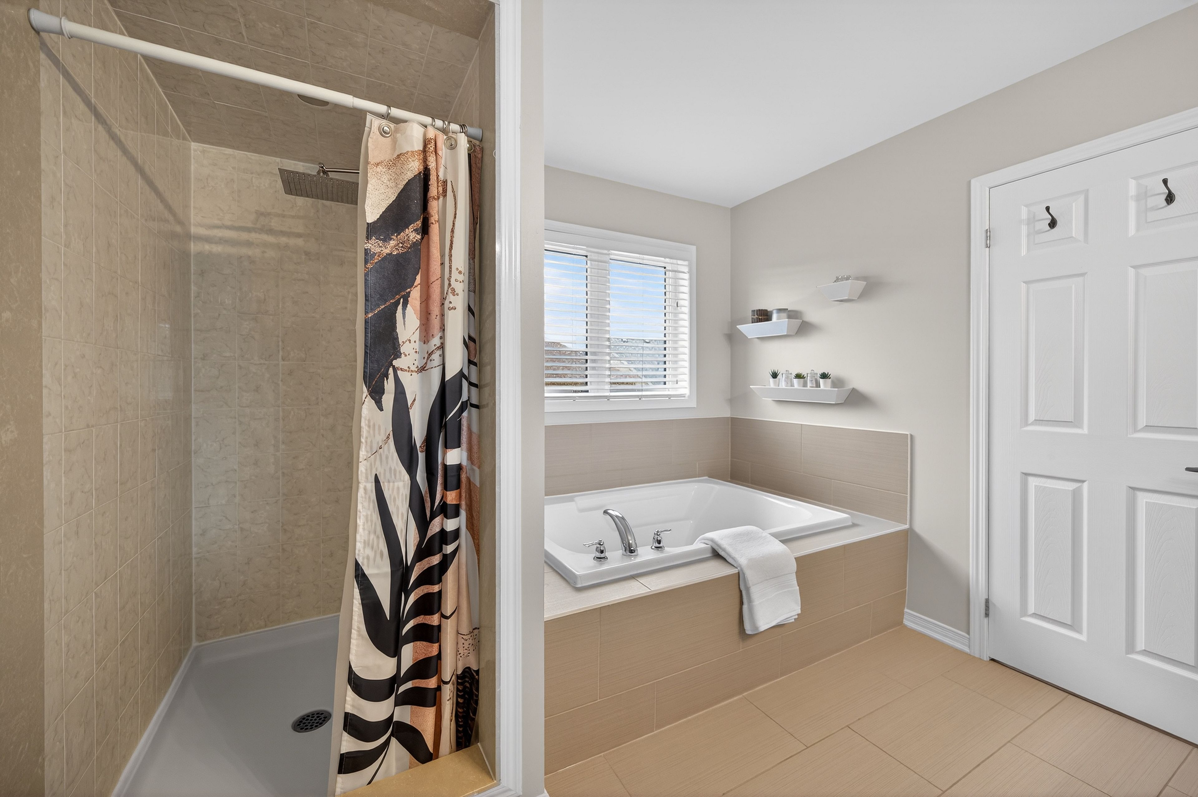 • Spacious primary bedroom with two walk-in closets and ensuite bathroom.