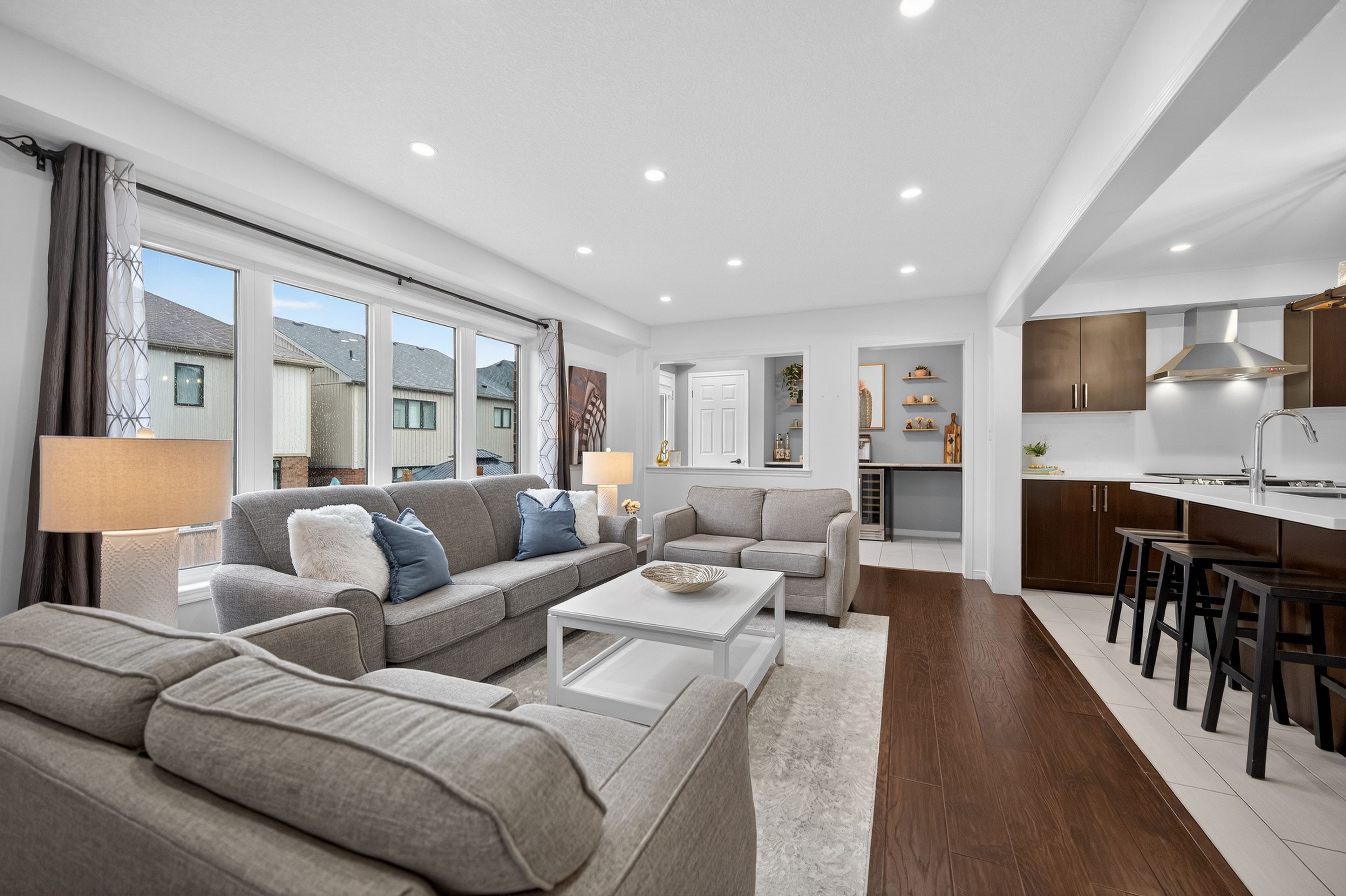 Stylish, spacious, and move-in ready! This beautiful detached 4-bedroom home in avalon area of caledonia, built in 2018, features the ideal blend of modern design and everyday function. The open concept main floor is perfect for family living and entertaining, featuring a gorgeous kitchen with quartz countertops and backsplash and a thoughtfully designed side area ideal as a coffee station, bar, or serving space with convenient access to the rear yard. One of the standout features of this home is the stunning great room with soaring ceilings, an electric fireplace, and patio doors opening to a front balcony, providing a bright and inviting space to relax or gather. The spacious primary bedroom retreat includes two walk-in closets and a lovely ensuite complete with his and hers sinks, a separate shower, and a soaker tub. Main-floor laundry adds to the home's everyday practicality. Beautiful floors, wood stairs, a large kitchen pantry, and spacious bedrooms offer everything you need and must be seen. This home, located in one of caledonia's desirable family neighborhood's, features a double garage, driveway, and proximity to newer elementary schools, making it a perfect fit for families.