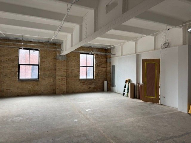 2nd floor historical ge offices, open concept with 12 ft clear ceilings , south windows, polished concrete/carpet floors and covered parking lot 1 x $175 per month