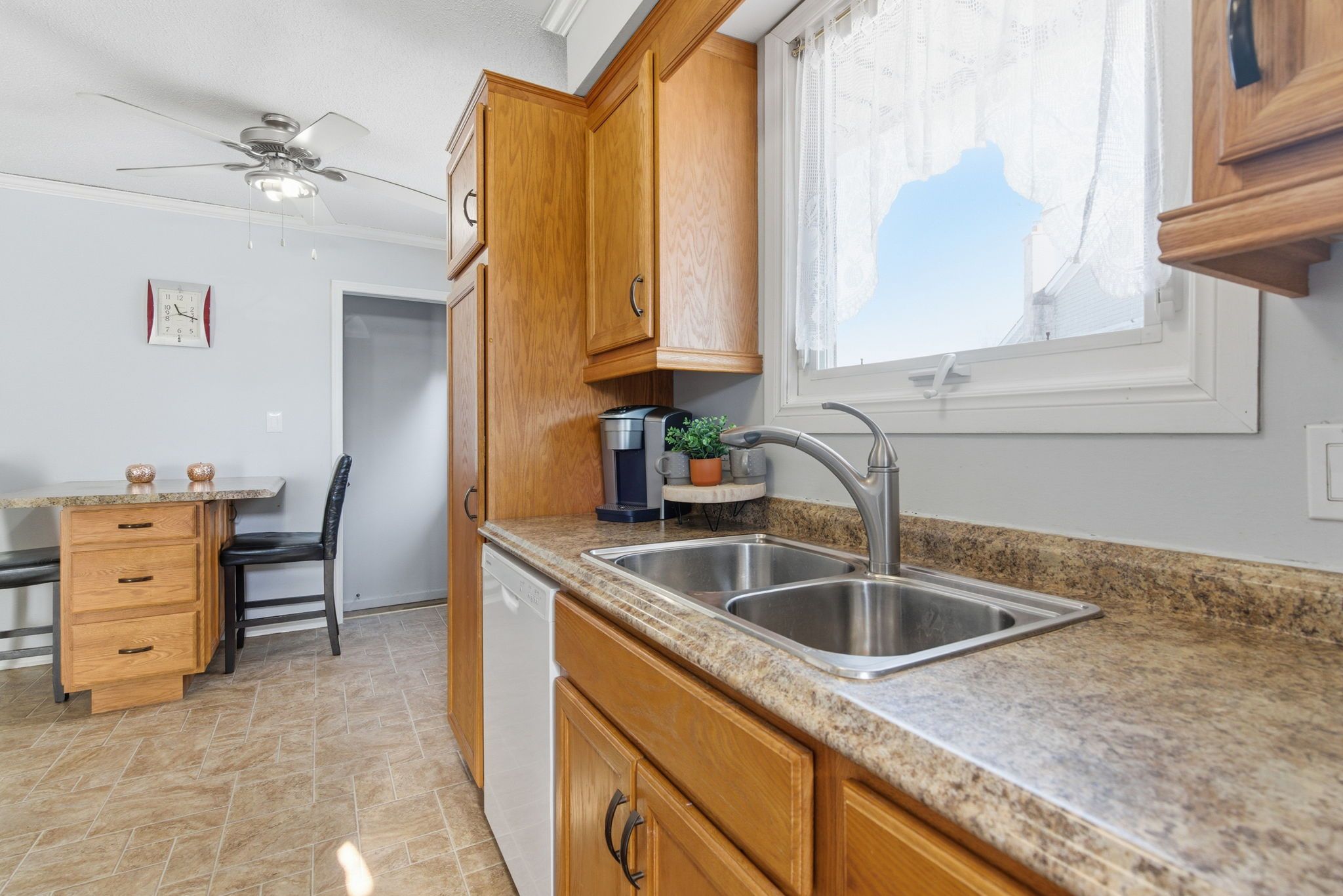• Charming brick exterior with a bay window and great curb appeal.
