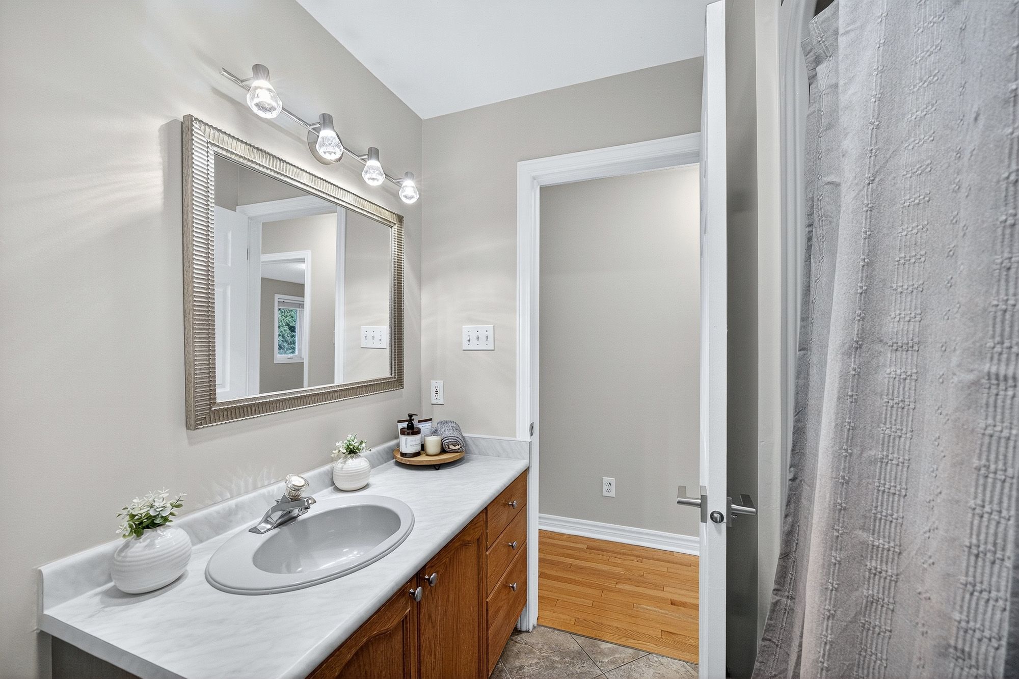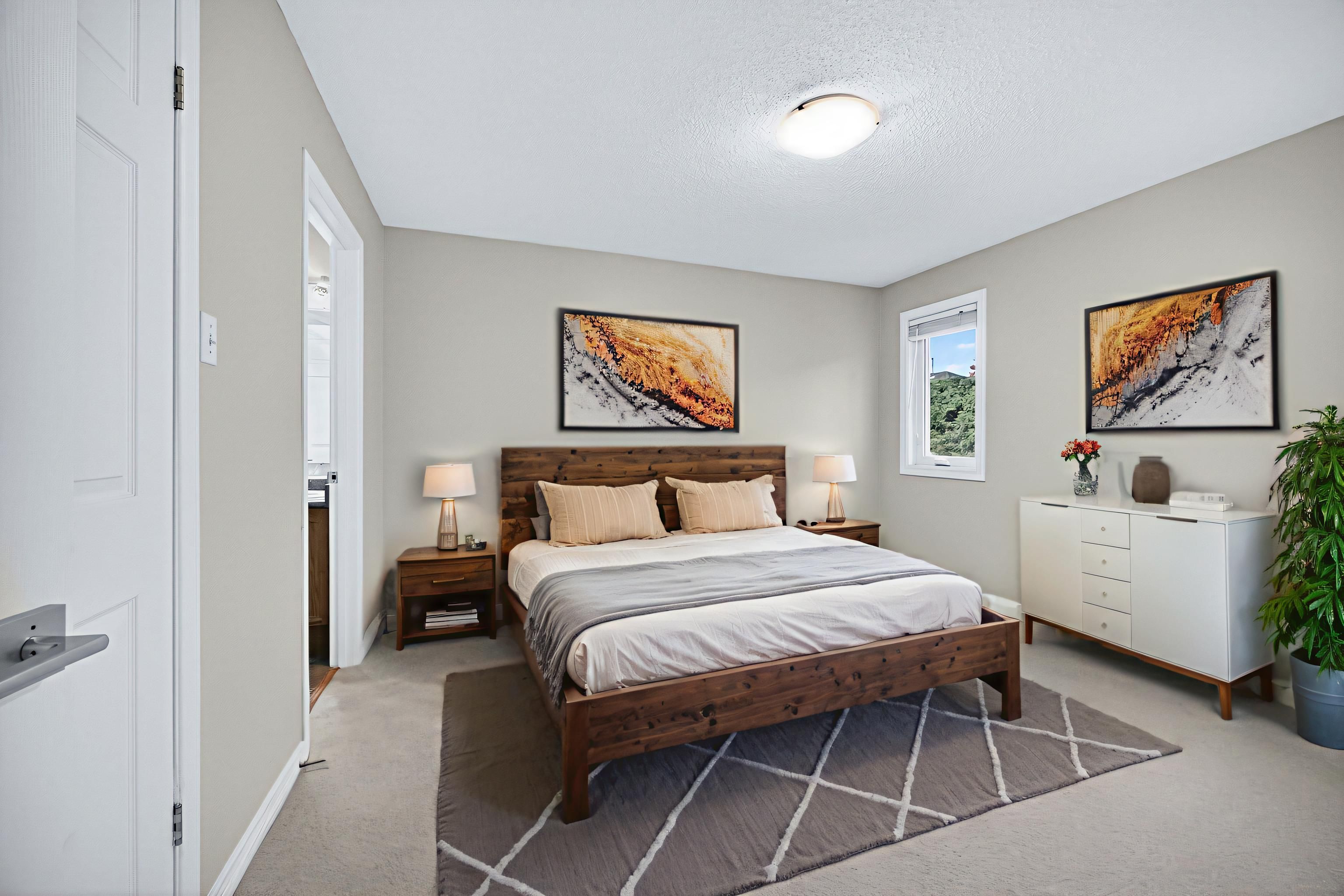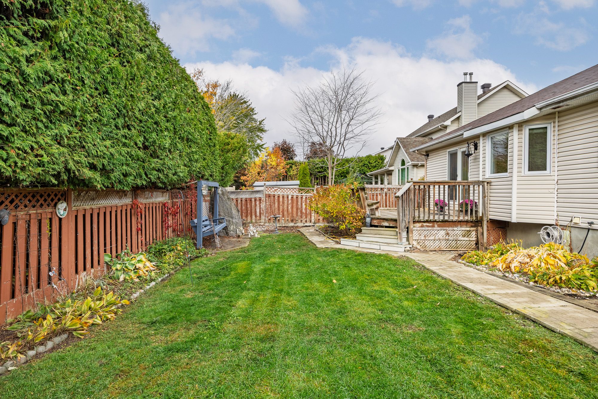 Rare opportunity to afford a detached bungalow in a mature stittsville neighbourhood! This 3 bedroom, 2 bath bungalow with double car garage & main floor laundry is the ideal spot to downsize to without having to get rid of your furniture or storage space. Plus it has a manageable property (private and without a huge yard to tend to!) the foyer opens onto the open concept living room/dining room with large bay window and hardwood flooring. The functional kitchen opens to a main floor family room with new gas fireplace! Hardwood through here as well and into the eating area. Step onto a spacious deck and view a yard with loads of potential! Mature hedges and fencing keep it private... You could have vegetable gardens, perennial gardens or an amazing low-maintenance patio. The hardwood continues through the hallway to the laundry/mudroom which has brand new vinyl flooring. The primary bedroom features new carpeting, a walk-in closet as well as a 3 piece ensuite. The two secondary bedrooms also have new carpeting and share a main bath. The 3rd bedroom is ideal as a main floor den/office. The lower level remains unfinished for all of your storage needs or finish it to suit your tastes and lifestyle. The entire house has been freshly painted in october of 2025. Walk to parks and public transit, the trans canada trail is a short walk away - ideal for cycling or cross country skiing, cardel rec centre is also just a short drive away as are major grocers, restaurants, fitness centres, cafes and more including a beautiful trail system behind the house with park! October 2025 updates: professionally painted, new carpeting in all bedrooms, new tiling in foyer and laundry room, front steps epoxied, new washer. Other updates - furnace 2015, newer windows (except for front) natural gas fireplace 2024, dryer 2024. Some photos have been virtually staged. Original kitchen & bathrooms are all in great condition but would love to be updated!
