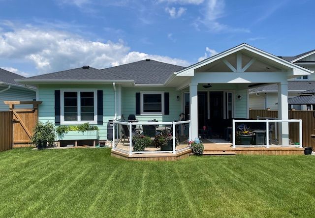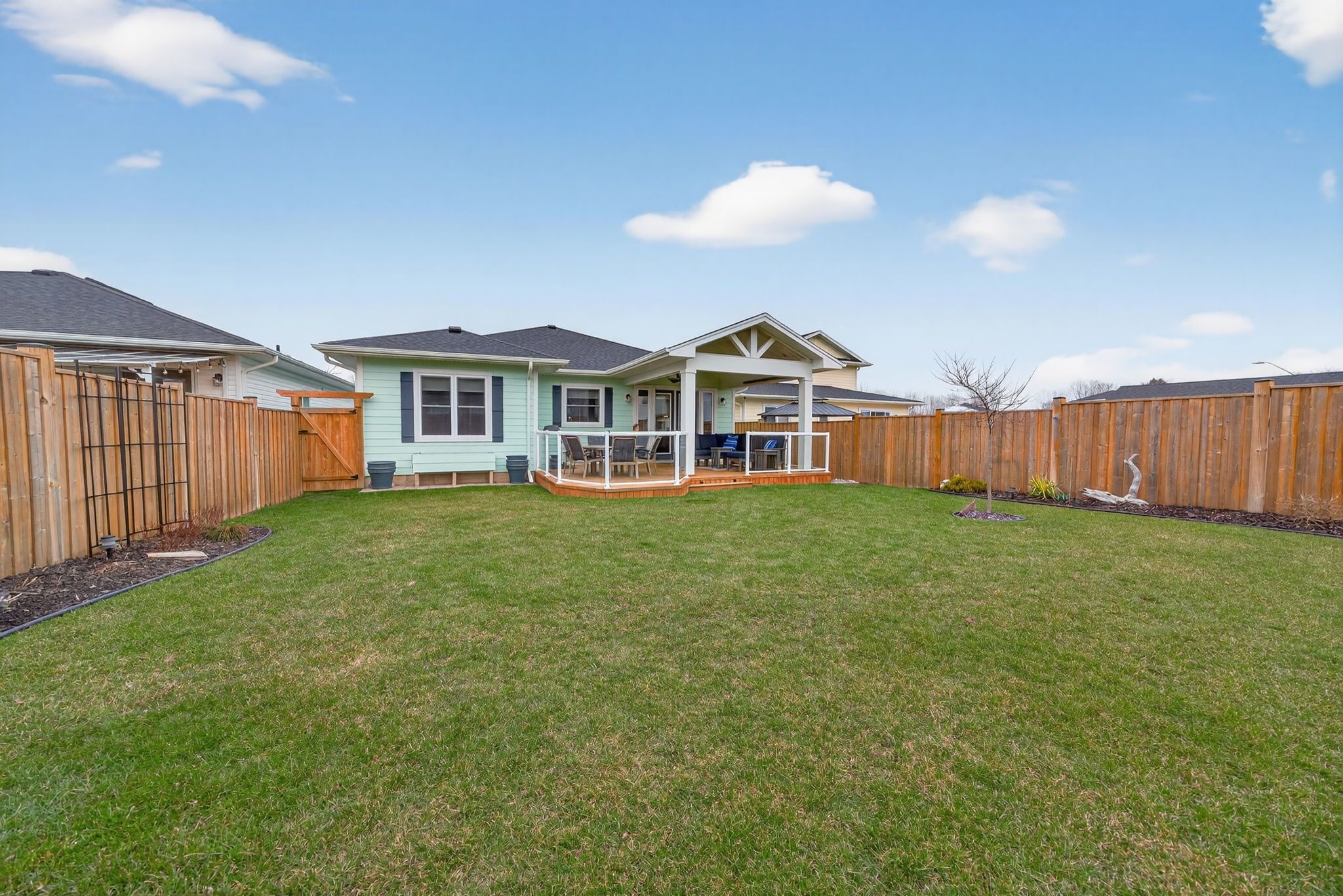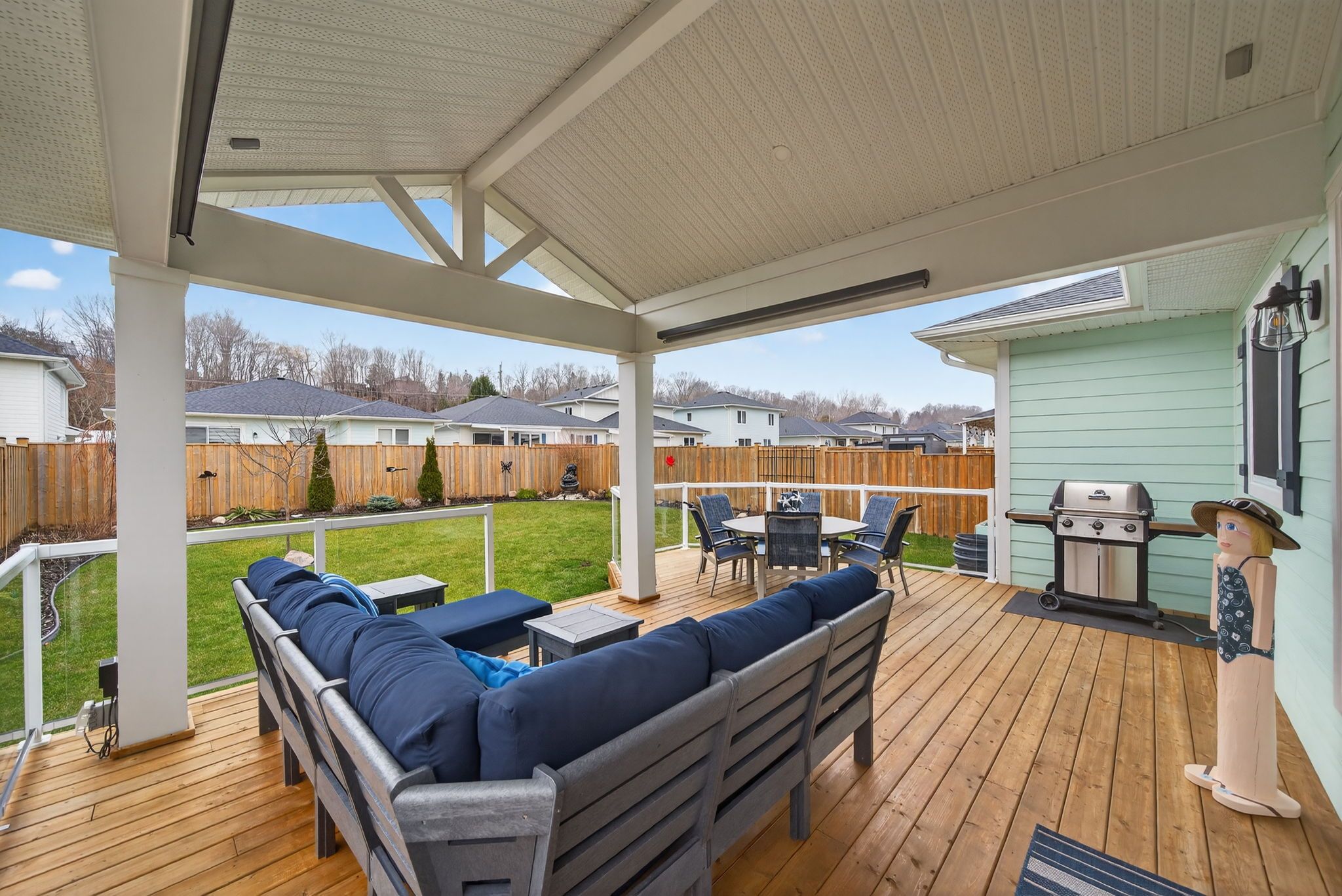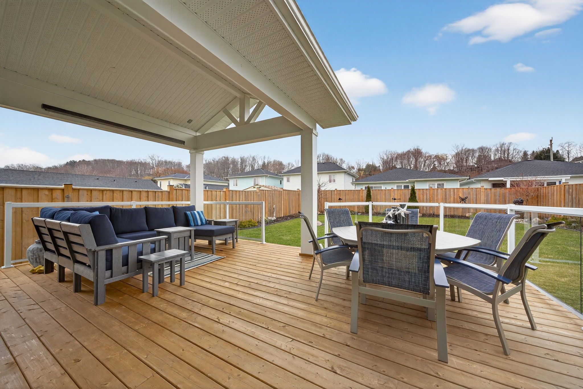 • Enjoy lake sounds from a beautiful backyard deck oasis.