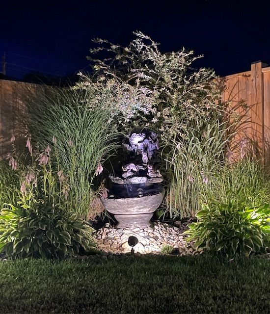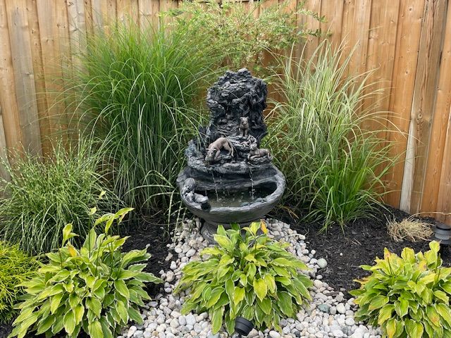 • Spacious fenced yard with gardens, fountain, and a large deck.