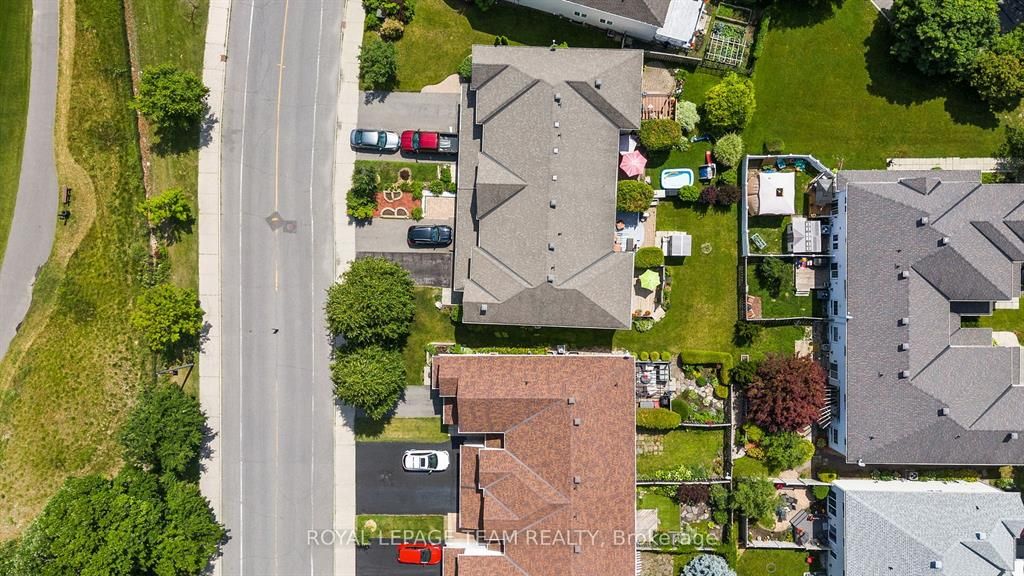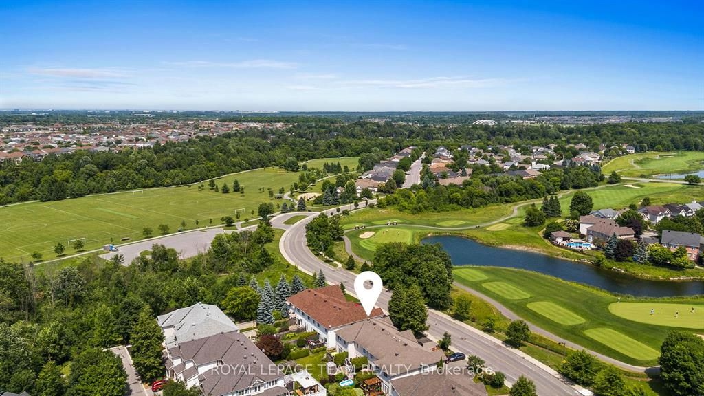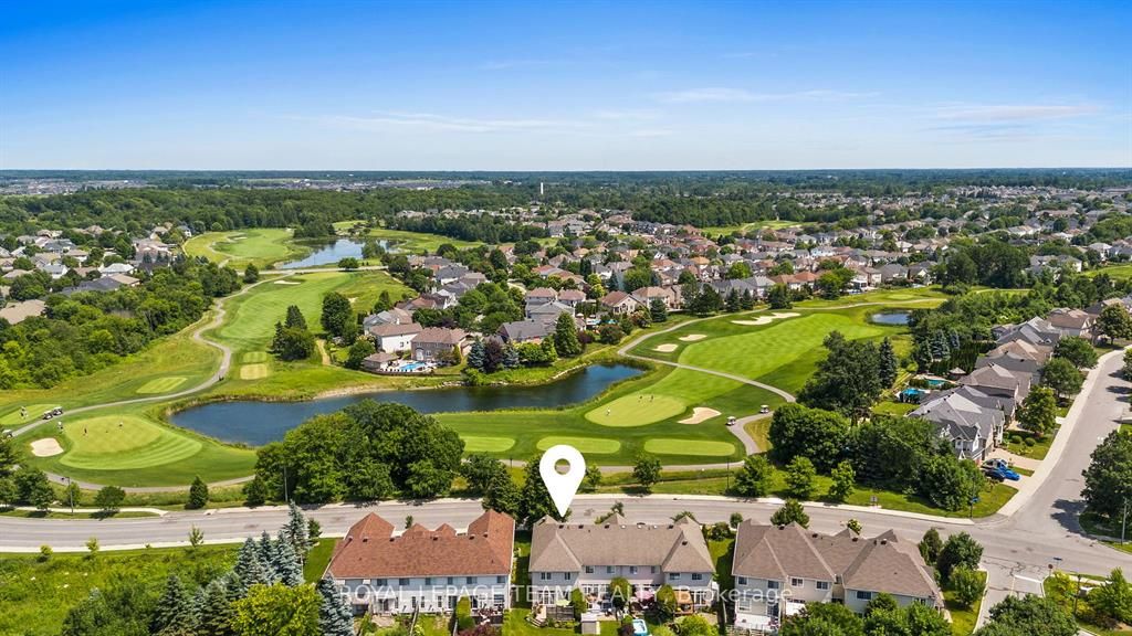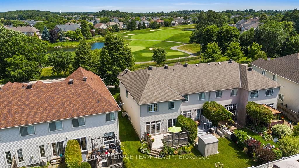 Location! Location! Location! Fronting onto award winning stonebridge golf course with views of pond, monarch national, end unit no road fees! Open concept main floor with new upgraded kitchen, granite, ceramic, and a large picture window that fills the lower level with natural light. Offering hardwood on main floor and in master, with two walk-ins, convenient 2nd floor laundry, finished lower level family room with fireplace. Beautifully landscaped, private deck. This home combines modern upgrades with an excellent location and scenic views. Prime spot! Updates include; windows 2019 (all but 2 small ones); furnace 2018; roof 2016 average monthly costs: water $45; gas: $93; hydro: $63