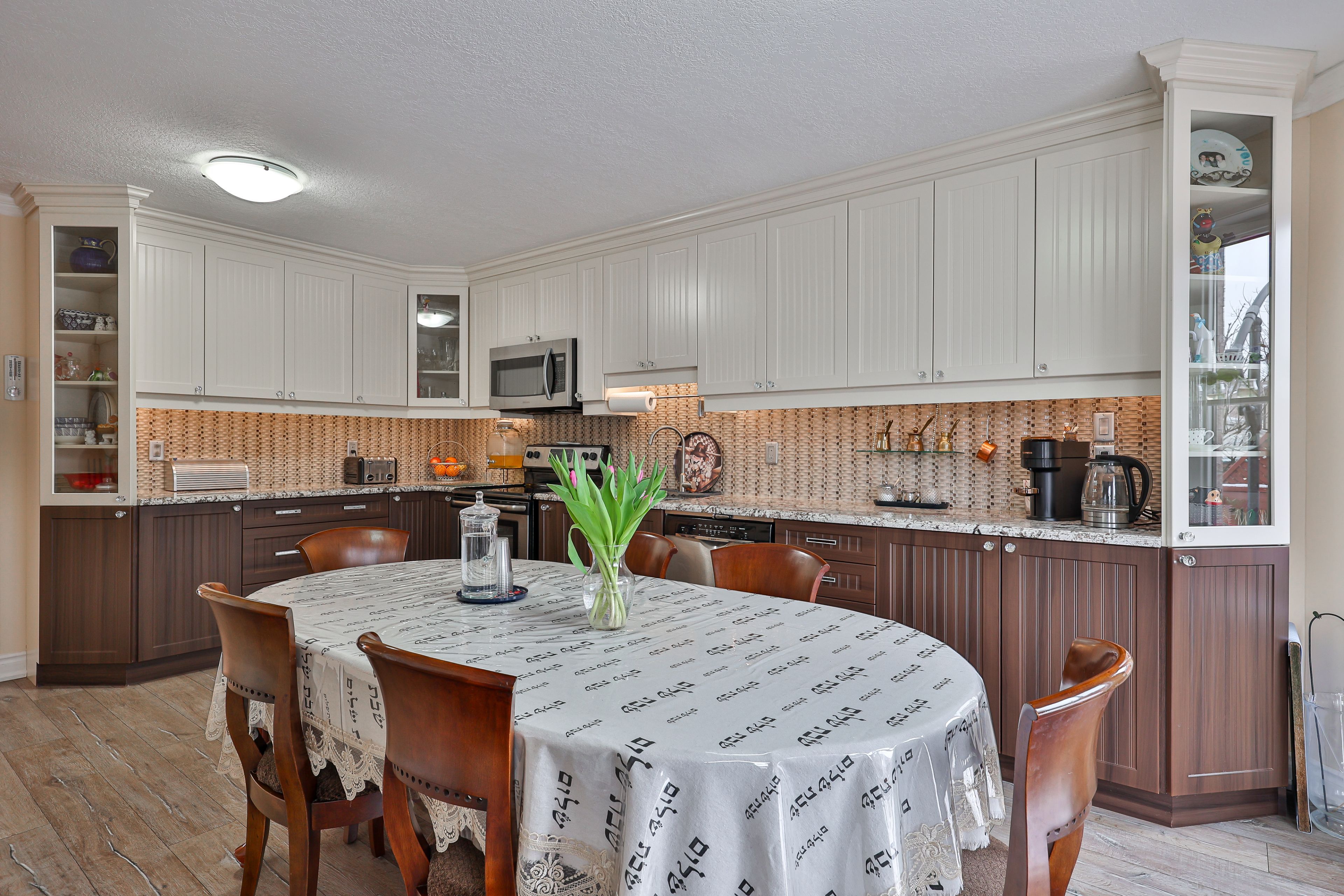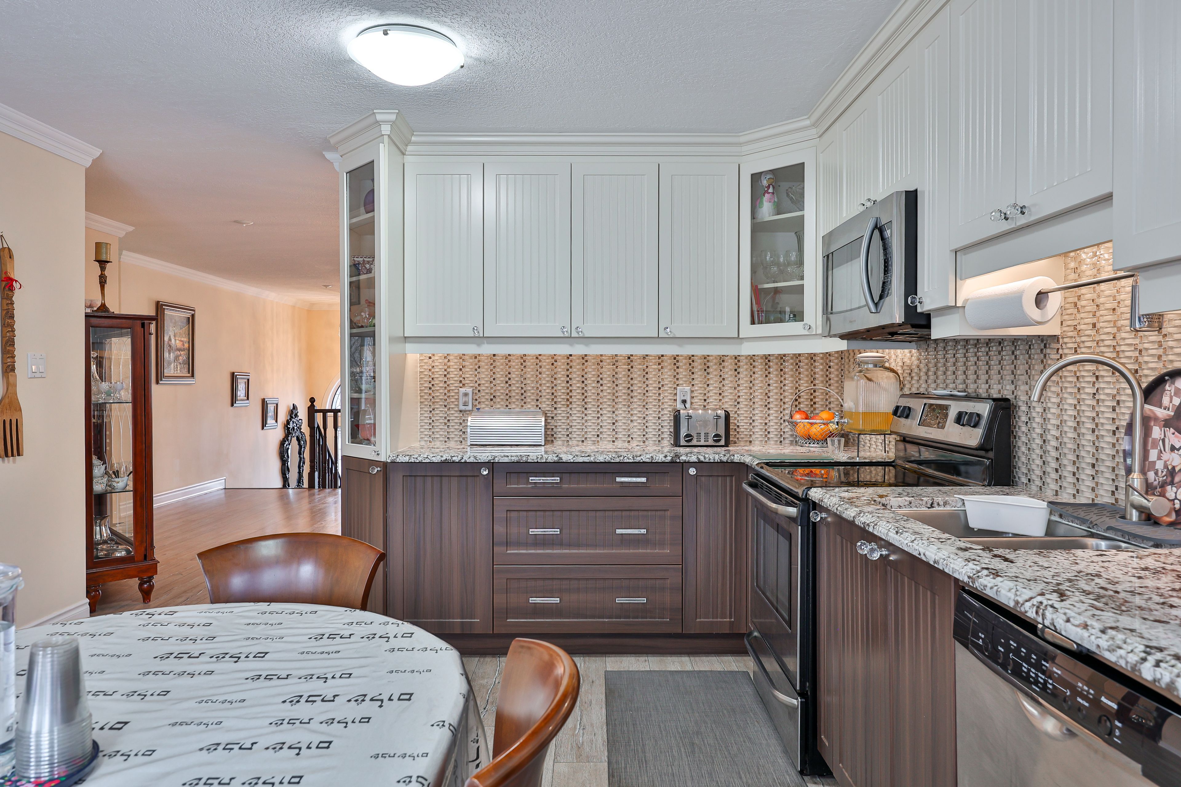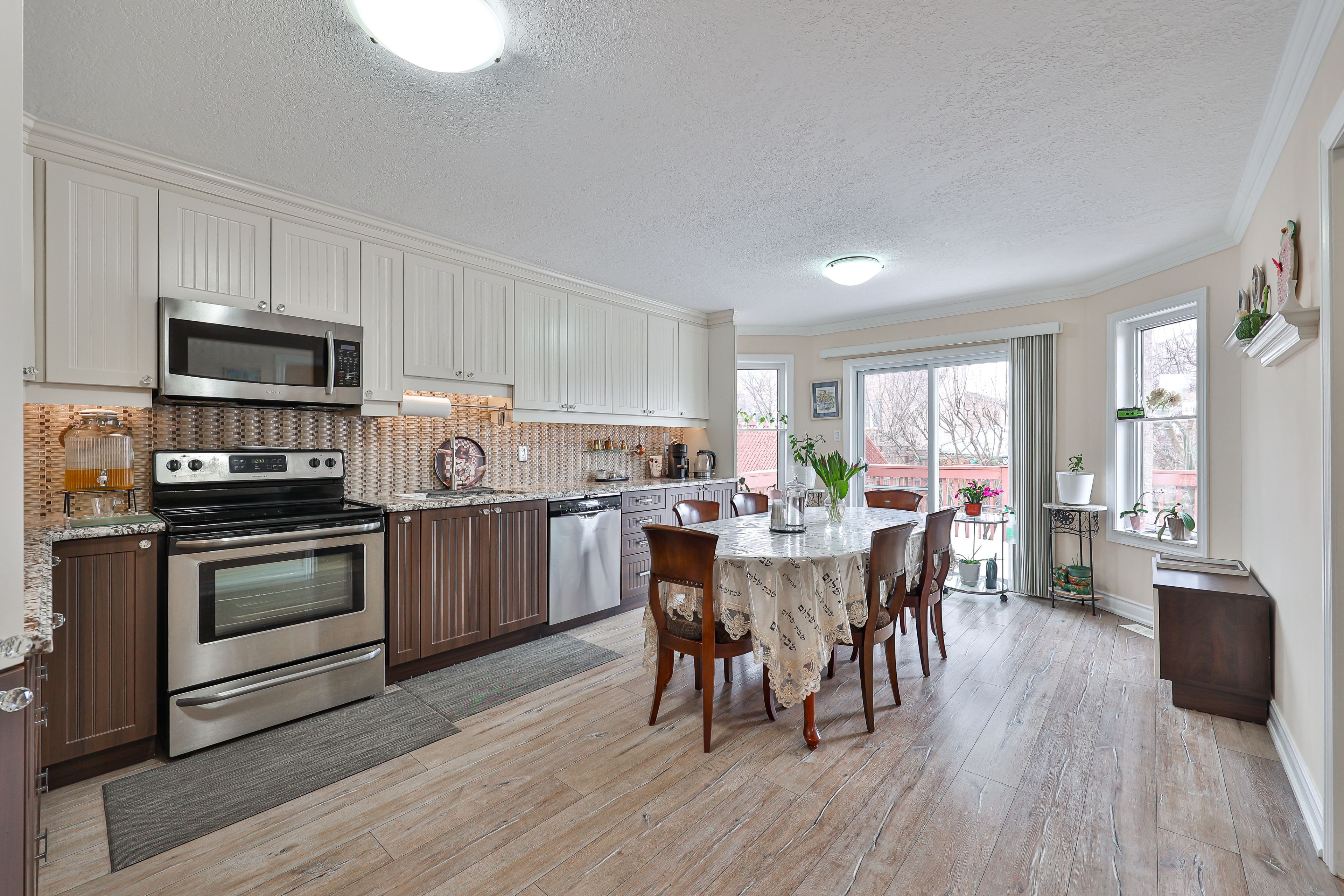 • Main floor features 3 large bedrooms and modern kitchen with granite countertops.