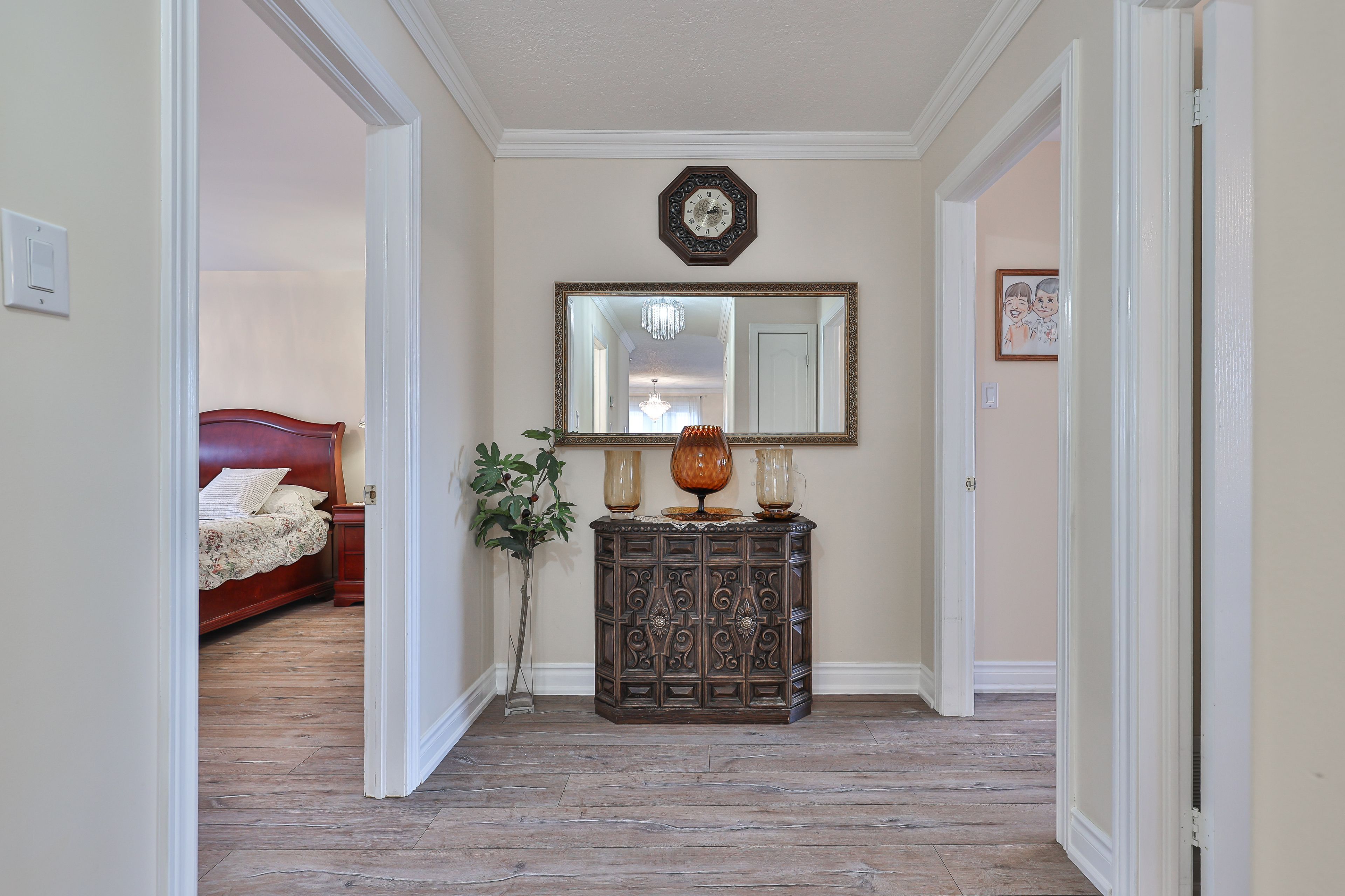 Welcome into this beautifully designed bright, spacious and perfect condition raised bungalow that blends comfort and functionality !!! This warm and cozy fully detached raised bungalow offers 2 levels of spacious living with 2 car garage , driveway for 4 cars no sidewalk, gorgeous backyard. The main floor offers 3 large bedrooms and 2 full bathrooms with quartz countertops, an open concept living & dining room that flows into a large, newer, modern kitchen with granit counter top and modern backsplash, that features big bright windows and sliding door with walkout to huge deck, looking into a nicely landscaped backyard- garden. Large pantry and mudroom off the kitchen with entrance to the backyard. The fully finished basement functions as a very large basement apartment with separate entrance with 1 bedroom and with a full sized kitchen and a wide open living/dining room( rec room), 3pc bathroom, so basement apartment with a separate side entrance provides excellent income potential !!! The laundry room includes additional access to the oversized garage, ideal for extra storage !!! Double car garage and plenty of parking!!! Located minutes from highway 400 and within walking distance to both public and catholic schools, this home is perfectly situated for families.