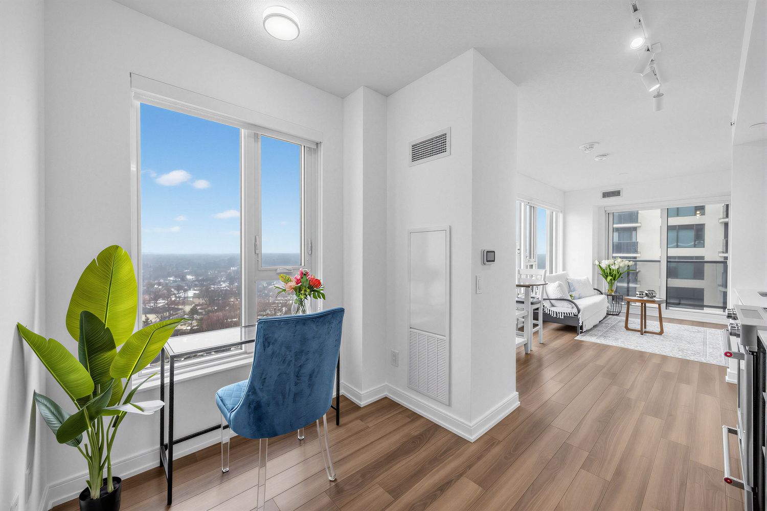 Welcome to modern 1+den condo in the kip district 2. This under-5-year-old 1-bedroom plus den suite offers over 600 sq. Ft. Of bright, contemporary living space with floor-to-ceiling windows and a private balcony capturing open north/east views. The functional den is ideal for a home office or reading nook. Prime transit location! Leave the car at home, just a short walk to kipling subway and go station, connecting you directly to downtown toronto, mississauga, and pearson airport. Quick access to highways 427, qew, gardiner, and 401 makes commuting effortless. Shops, cafes, groceries, and casual or dine-in restaurants are all moments away. Sophisticated finishes! High ceilings, sleek laminate floors, and modern roller blinds complement a streamlined kitchen with flat-panel cabinetry, quartz countertops and backsplash, under-cabinet lighting, stainless steel appliances, and an undermount sink. A full 4-piece bath, ensuite laundry, parking, and locker complete the package. Exceptional amenities! Residents enjoy a fully equipped gym, large party room, rooftop terrace with bbqs, pet-washing station, and ample visitor parking, all within a vibrant, well-managed community. Perfect for commuters, first-time buyers, or investors seeking stylish city living in a transit-rich location.