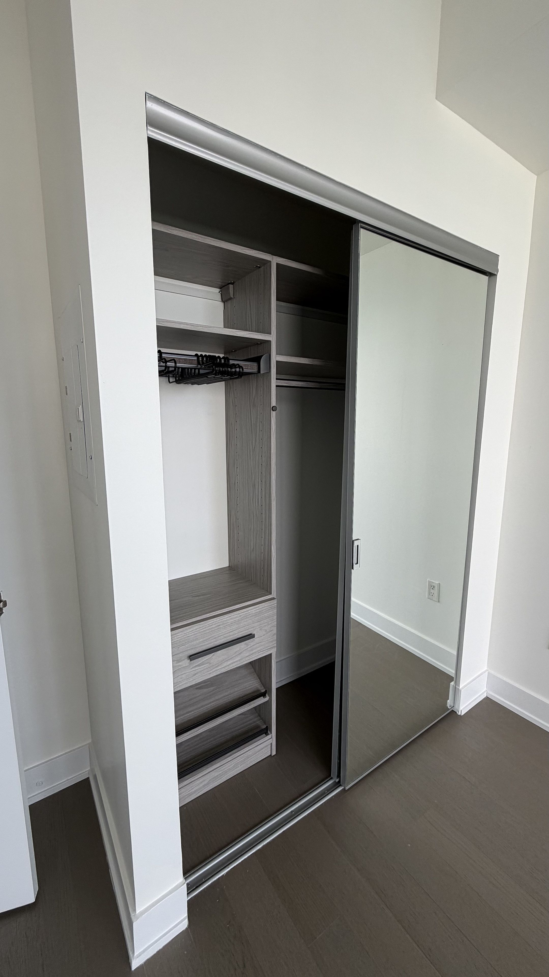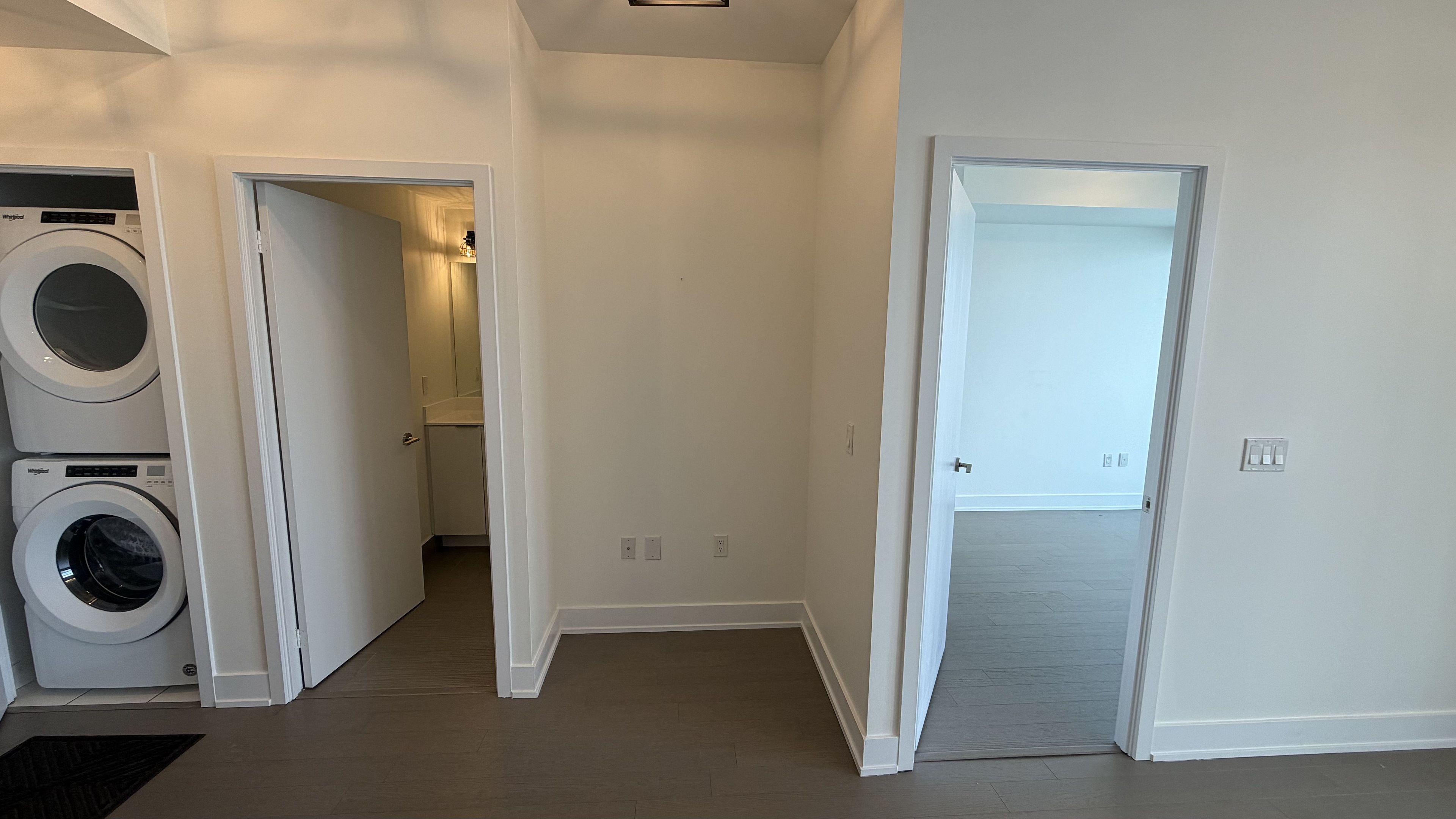 Experience elevated waterfront living with breathtaking views of the cn tower skyline and lake ontario from this high-floor 1-bedroom plus study suite. Designed with efficiency in mind, the unit offers a smart layout complemented by a sleek, contemporary kitchen featuring full-size stainless steel appliances and an in-suite washer and dryer. Step out onto the expansive ~100 sq ft balcony and take in stunning sunset views and open skies stretching across the city. Extensively upgraded (over $20,000 spent), this suite showcases smooth ceilings, a custom-built bedroom closet, mirrored closet doors, updated lighting fixtures, enhanced kitchen cabinetry with upgraded countertops and backsplash, a modernized bathroom with frameless glass shower and upgraded tilework, along with premium laminate flooring throughout. The property includes one parking space . Located in the sought-after eau du soleil community in humber bay, residents enjoy access to resort-style amenities including a saltwater pool, sauna, jacuzzi, fitness centre, yoga and pilates studio, theatre room, rooftop terrace with bbqs, elegant party spaces, guest suites, and 24-hour concierge service. Just steps to the lakefront, humber bay park, and a variety of dining and entertainment options, with convenient access to ttc transit, the gardiner expressway, mimico go station, sherway gardens, costco, cineplex, and more.