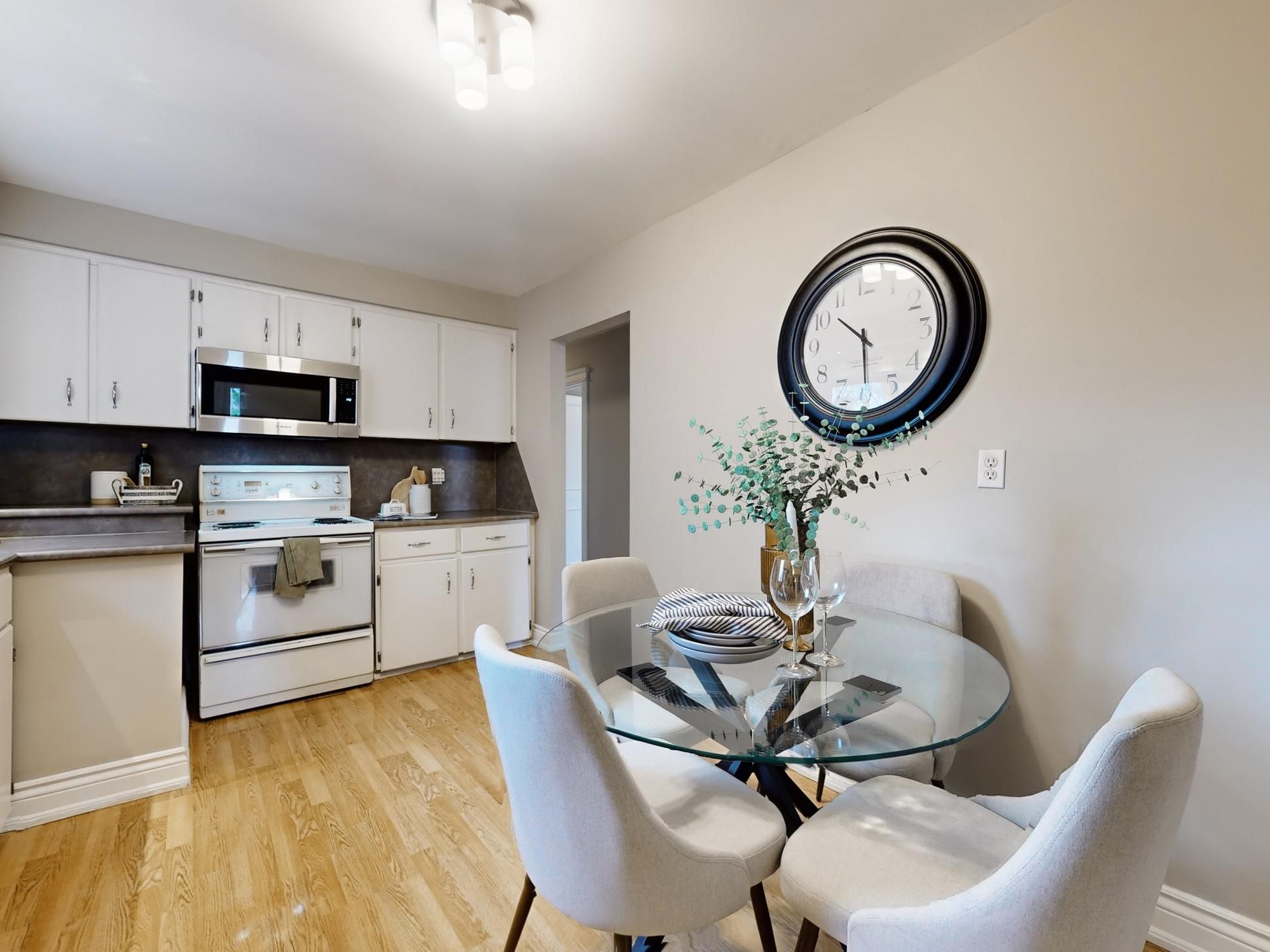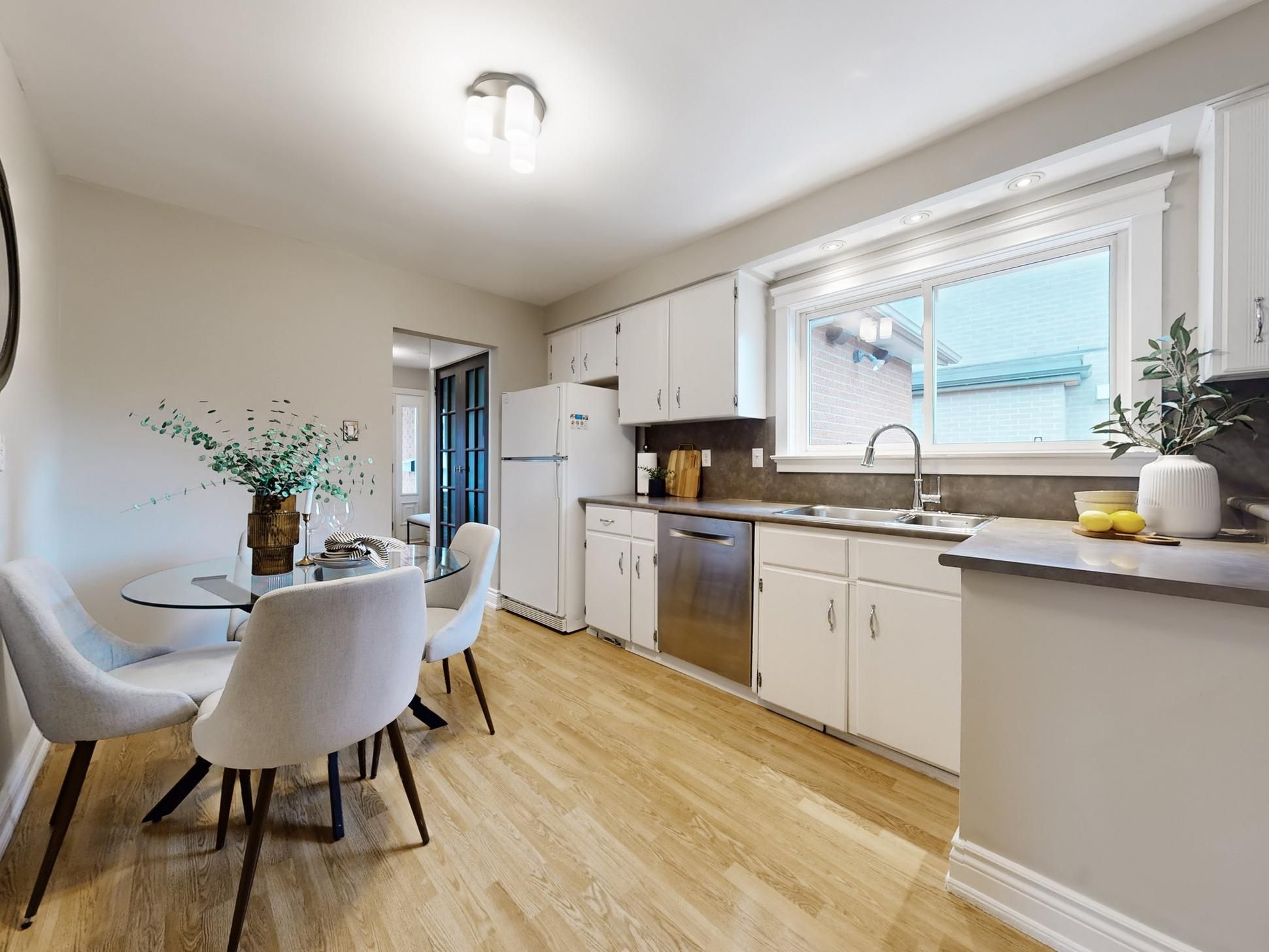 • Functional eat-in kitchen flows into spacious dining area.