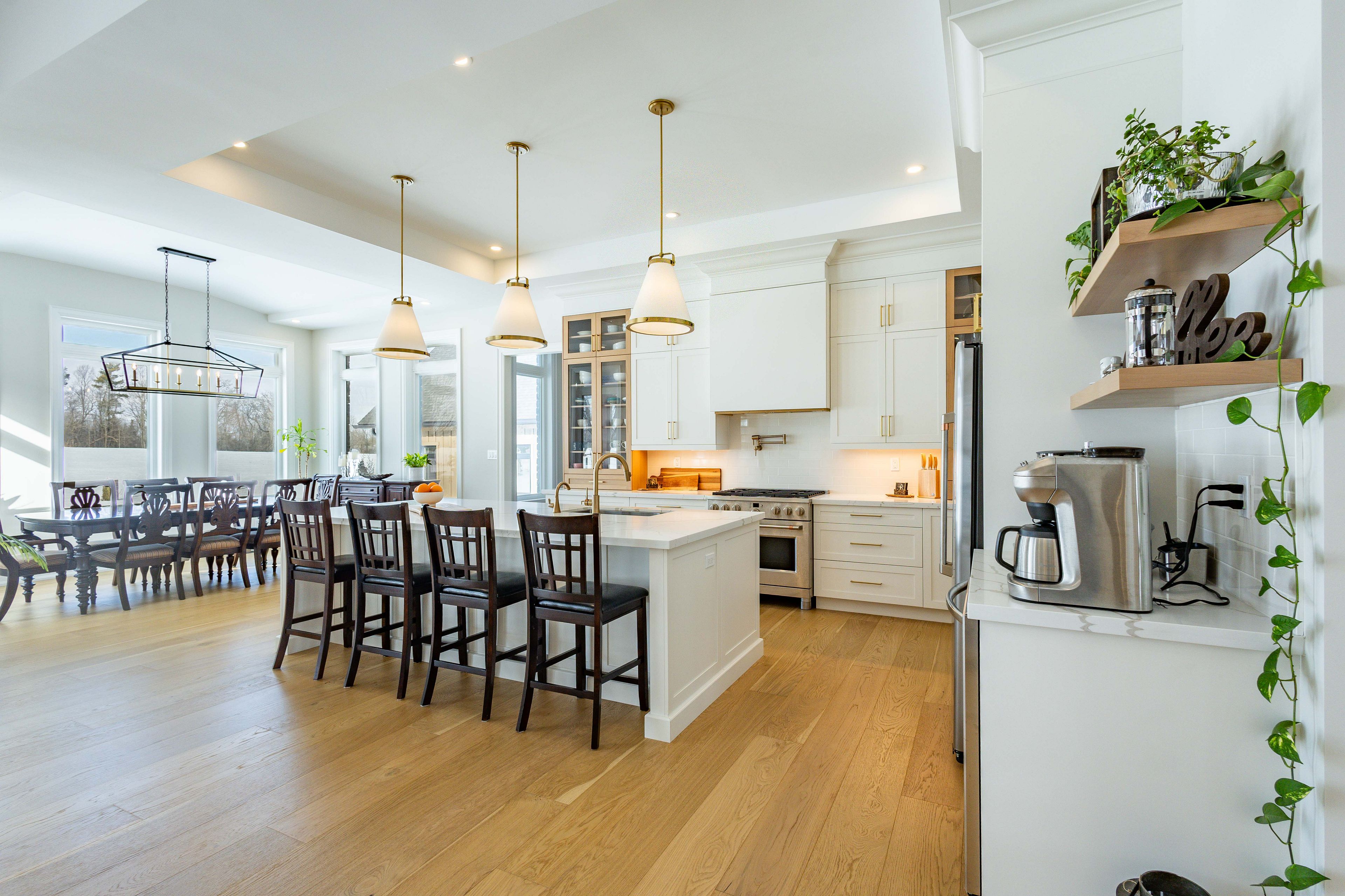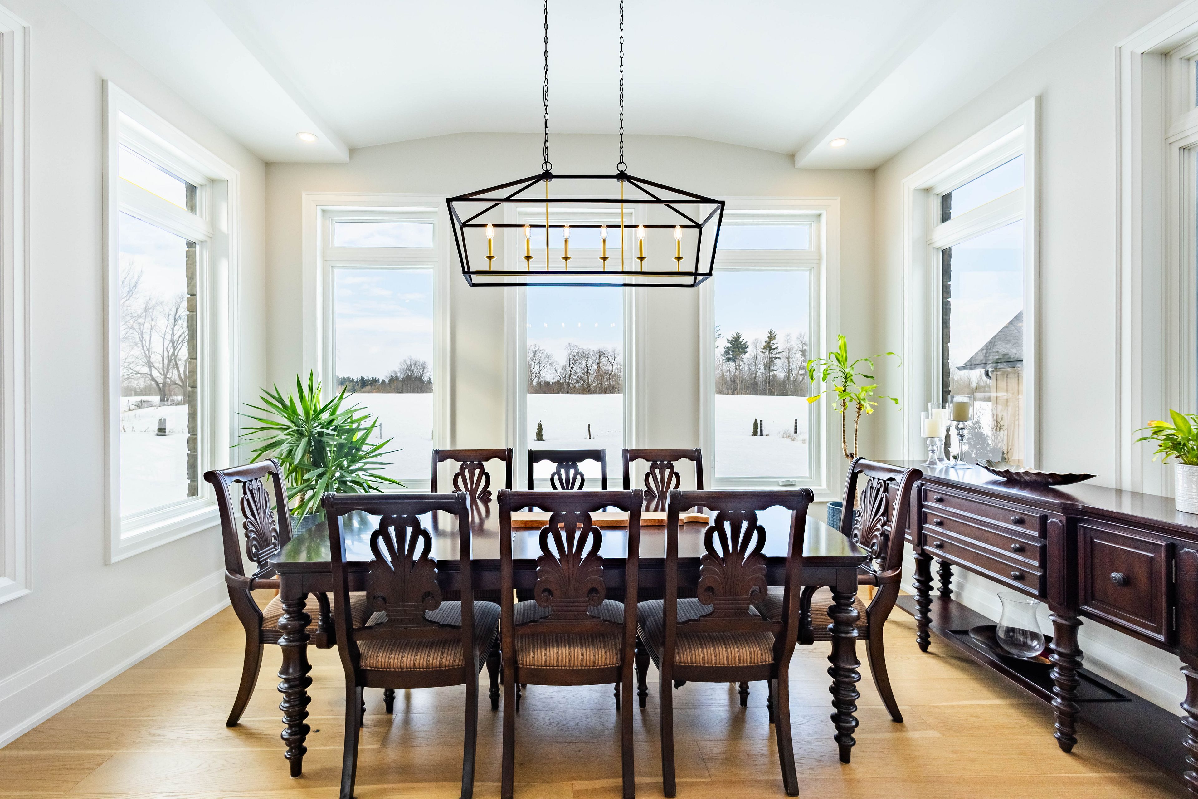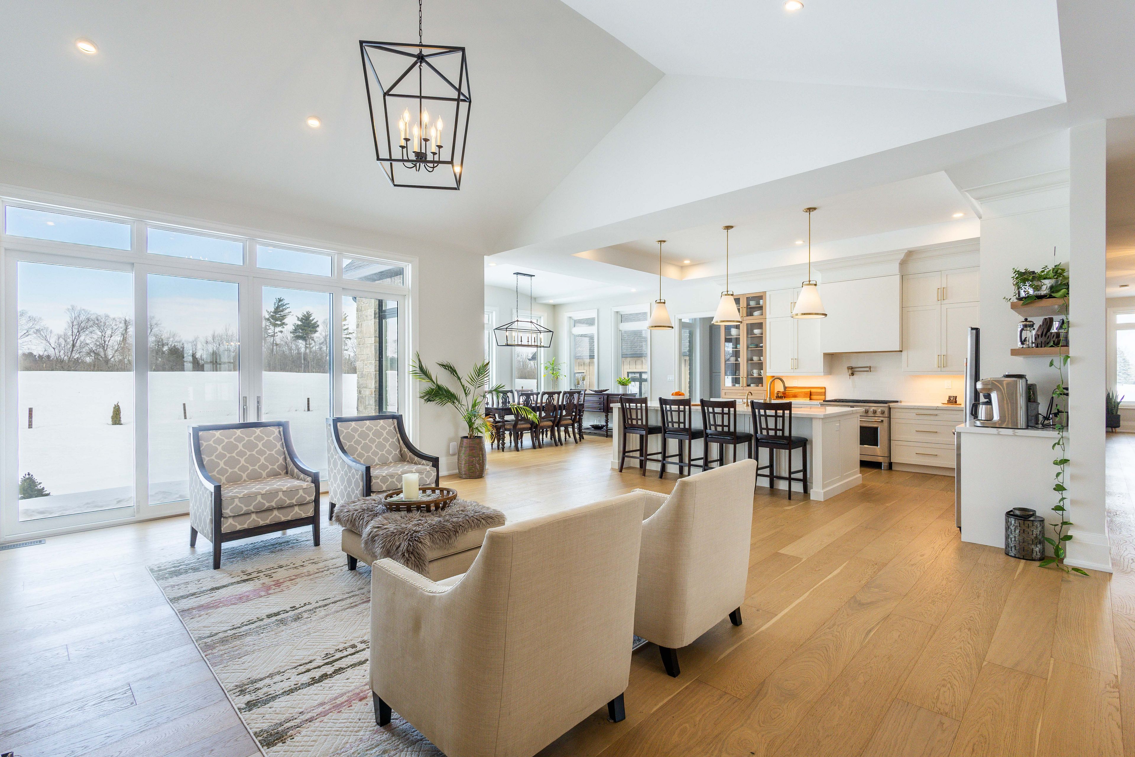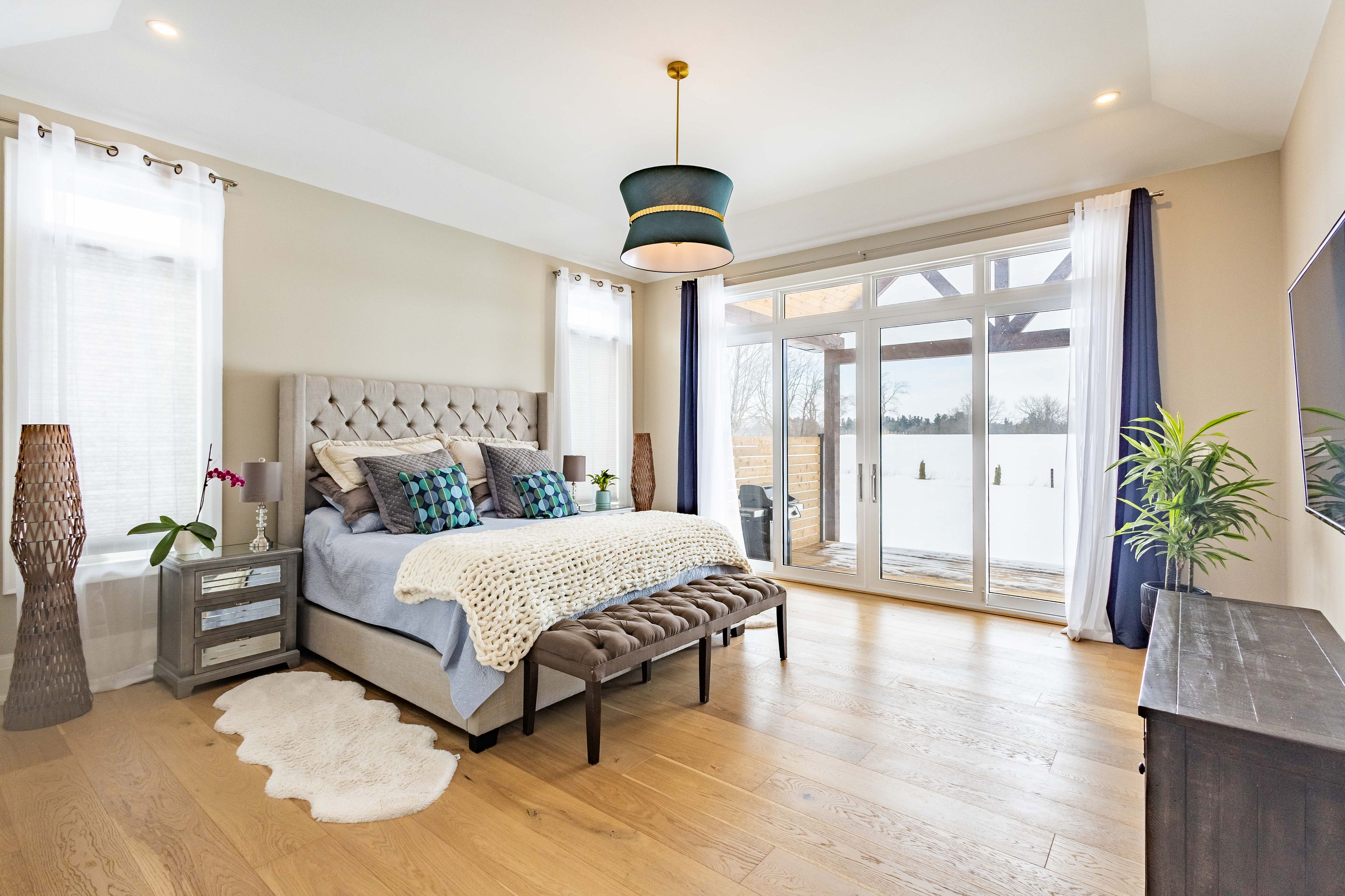 This exceptional custom bungalow presents a rare opportunity to own a home that simply cannot be replicated today. Built with uncompromising quality from the studs to the final finishes, every detail reflects thoughtful design, superior craftsmanship, and long-term durability. Offering over 3,000 sq. Ft. Of beautifully curated living space, this home is set on a sprawling lot backing onto peaceful farmland, delivering unobstructed sunset views and exceptional privacy. Inside, the bright, open-concept layout is enhanced by wide-plank white oak flooring, soaring ceilings, and elegant, timeless finishes throughout. The chef-inspired kitchen blends style and function with quartz countertops, premium appliances, designer lighting, and a fully equipped butler's pantry with sink, fridge, and extensive storage. The great room is a true showpiece featuring cathedral ceilings, a striking fireplace, and custom millwork-ideal for both entertaining and everyday living. The primary suite offers a luxurious retreat with a spacious walk-in closet and spa-inspired 5-piece ensuite complete with soaker tub and high-end finishes. Three additional generously sized bedrooms each include their own private ensuite, providing comfort and privacy for family or guests. A convenient main-floor laundry room adds to everyday functionality. The lower level is already drywalled with 9 ft ceilings and includes an additional room and insulated workshop, offering a strong foundation for future customization. Outdoors, enjoy a covered rear porch overlooking the expansive backyard and serene countryside setting-perfect for relaxing or entertaining. The oversized triple-car garage and separate 500 sq. Ft. Workshop provide exceptional space for vehicles, hobbies, or storage. A rare blend of quality, design, and setting, this home delivers outstanding value at its new price point.