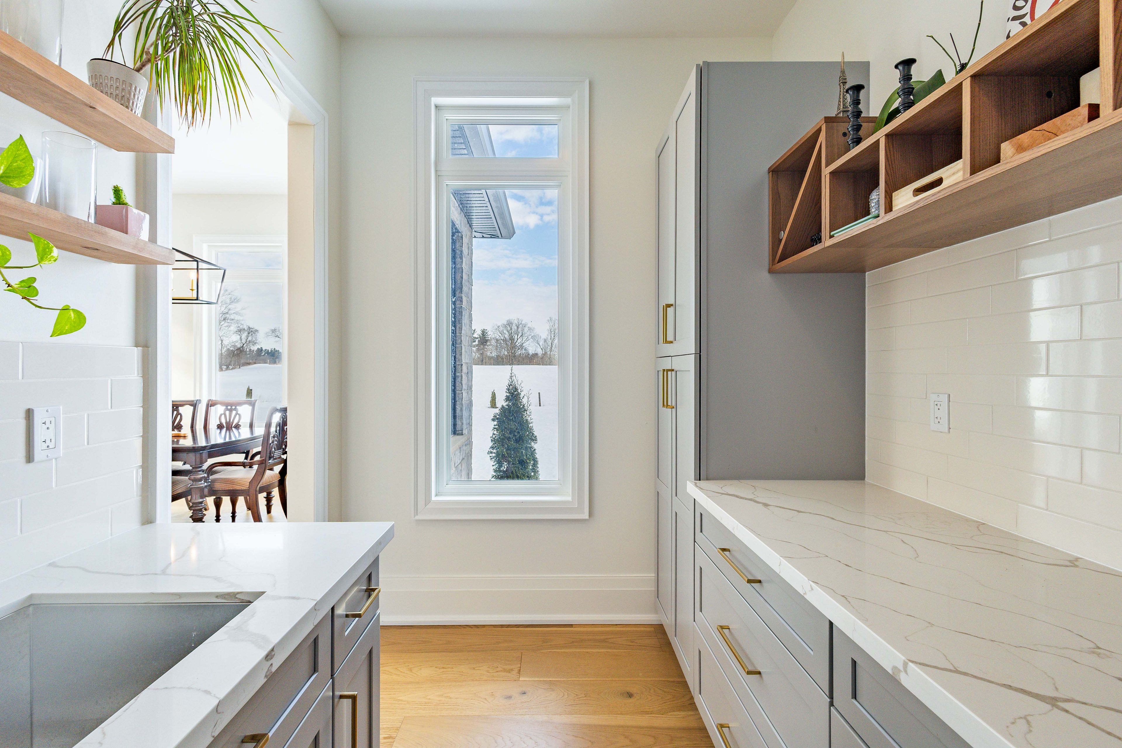 • Chef-inspired kitchen with quartz countertops and a fully equipped butler's pantry.