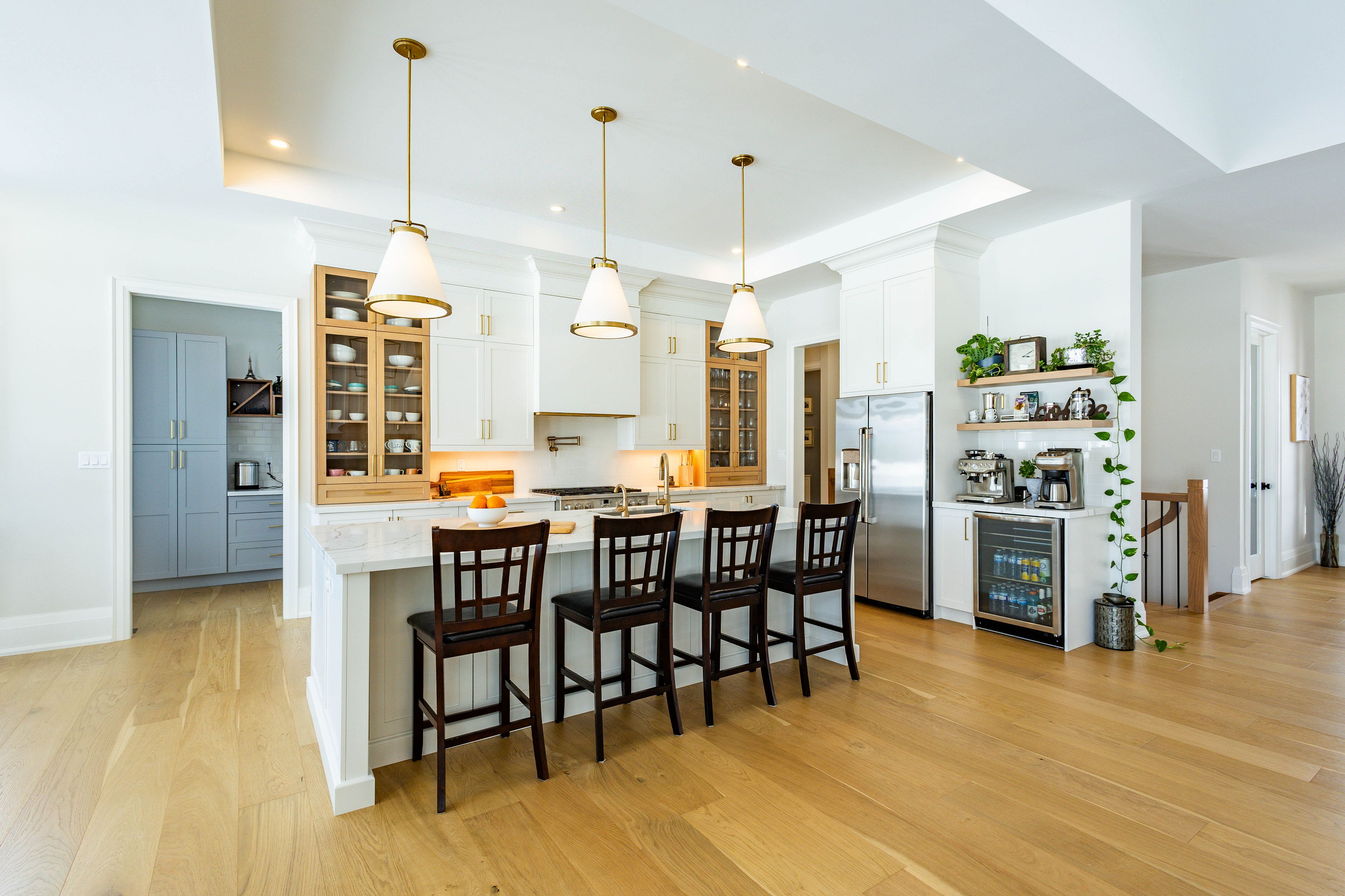 • Bright, open-concept layout featuring wide-plank oak flooring and soaring ceilings.