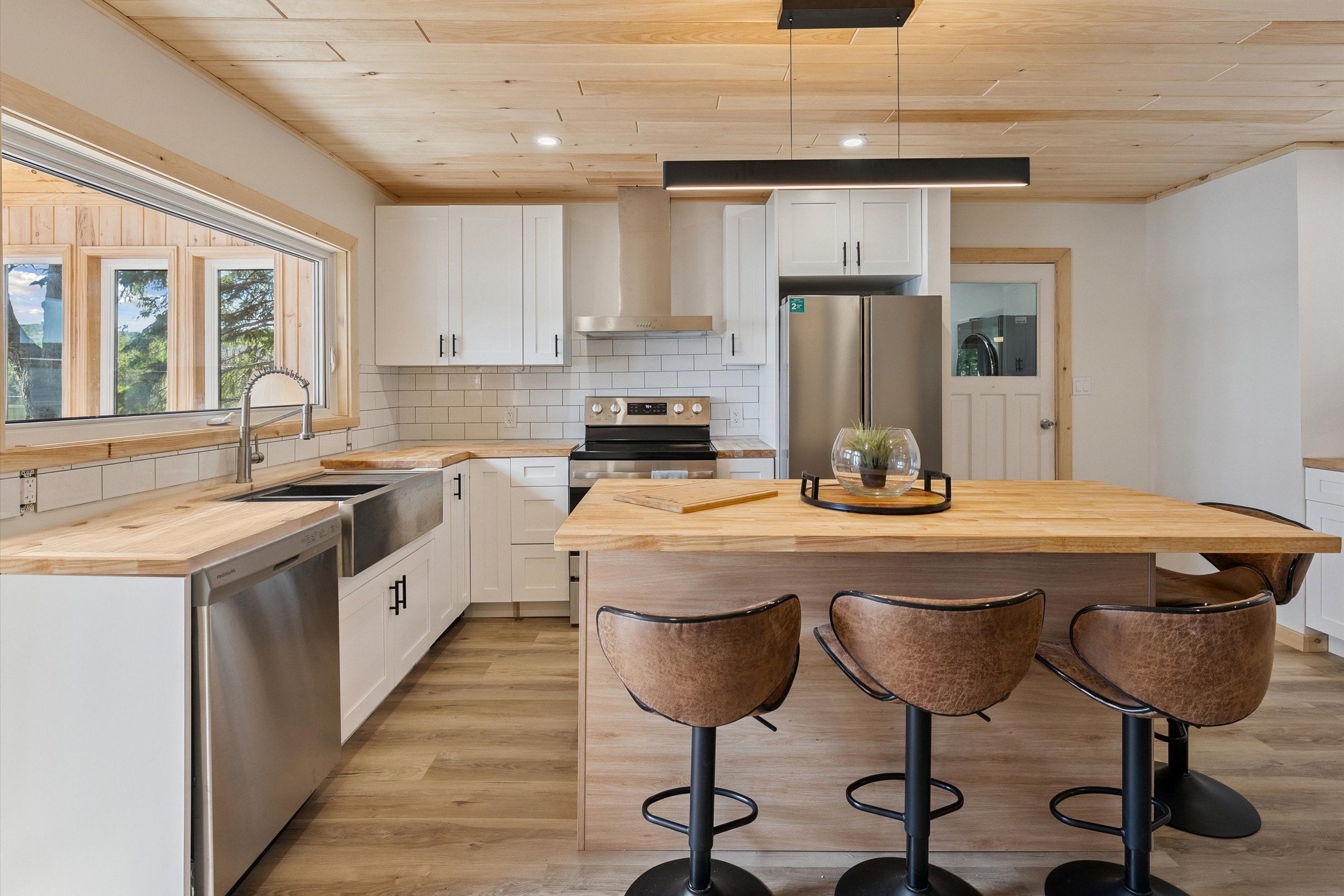 Rare and exceptional lot with a gorgeous lake house completely renovated and being sold turnkey with all the beautiful furnishings and decor as seen. Located on papineau lake, a highly desirable lake that commands top $$$ as an str in the hastings highlands. This 4-season lake house sits on a remarkable 1. 93-acre lot which is level and treed with over 200 feet of pristine sand beach waterfront & crown land flanking one side of the property. Enjoy all-day sun on the dock and beach with se exposure. Renovated top to bottom, the main house offers 1252 square feet of living space, featuring a brand-new kitchen with stainless steel appliances, cabinets, backsplash, centre island, butcher block countertops & cozy wood stove & w/o to a large, sunroom with breathtaking lake views. New luxury vinyl plank floors, pine ceilings, and stylish lighting throughout. The living room features a wood-burning fireplace & wall-to-wall sliding doors leading to a 320 sq ft deck with dining and lounging spaces & edgeless glass railings. The views are simply spectacular! The primary bedroom has a 3-piece ensuite, plus an additional 2 bedrooms & 4-piece bath. New structural footings, encapsulated crawl space, insulated attic, siding, soffits, downspouts, windows (excluding sunroom & main bath), laundry addition off the kitchen, in-wall electric heaters with wifi control, ev charger, new 200 amp panel, generac transfer switch has been added. The property also features a 340 sq ft guest bunkhouse with a wood stove, a dry land boat house for storage, and a newly landscaped path to the waterfront. The widened and regraded driveway offers ample parking. Papineau lake is a clean, deep lake perfect for motorized boating. Just 30 mins to bancroft & barry's bay and 2. 5 hours from durham region & ottawa area. This property is the complete package! Enjoy yourselves and offset some costs as an str. Everyone loves a beach! Get ahead of the spring market and start making plans today!
