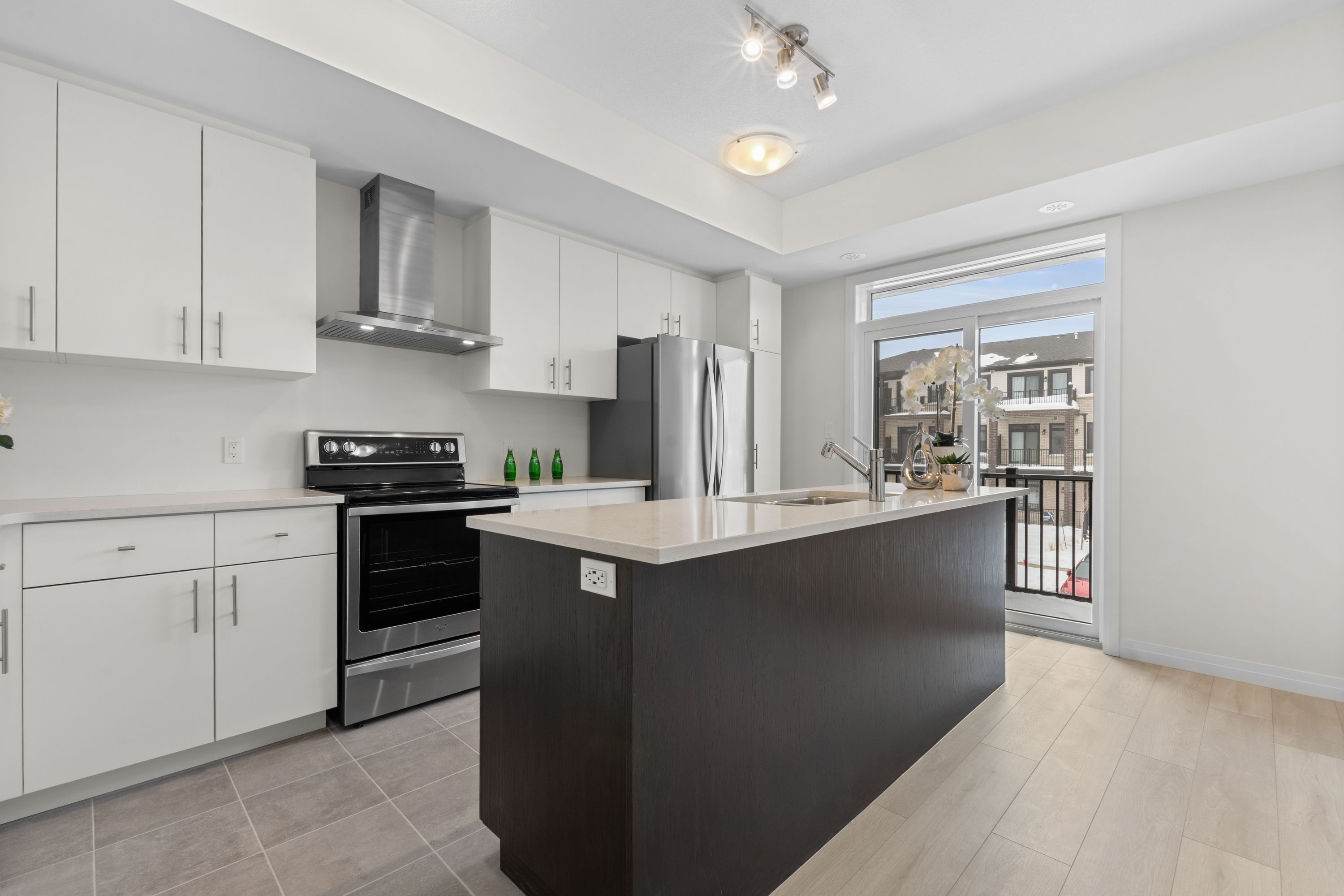Brand new, never lived-in 2 bedroom, 3 bathroom upper-level townhome by fusion homes. This beautifully designed residence offers 2 private balconies, a covered front porch, and 1 dedicated parking space. The main level features a bright open-concept layout with walk-out to a private balcony, a modern white kitchen complete with a large island with integrated sink, premium stainless steel appliances, stylish backsplash, and a convenient powder room & ensuite laundry for added functionality. Upstairs, the spacious primary bedroom includes a walk-in closet, private balcony, and a 3pc ensuite. The second bedroom is generously sized and complemented by its own 4 piece bathroom. Located in a brand-new community with future amenities including a planned high school, community bbq areas, firepit, parks, and nearby schools. A perfect opportunity to live in a contemporary home in a growing neighbourhood.