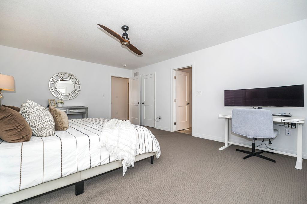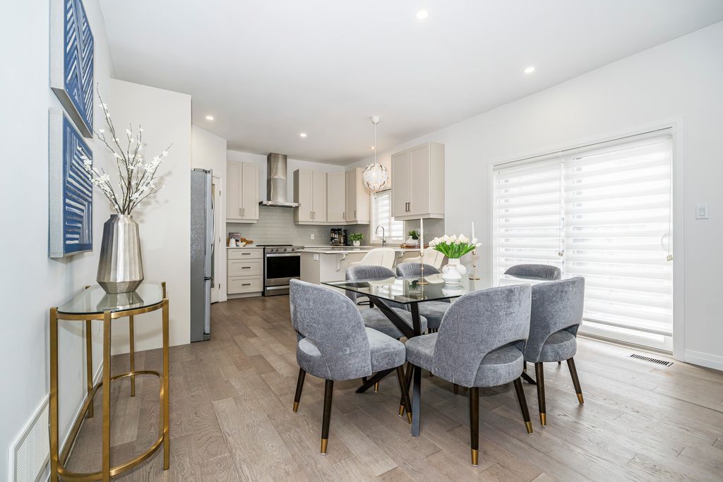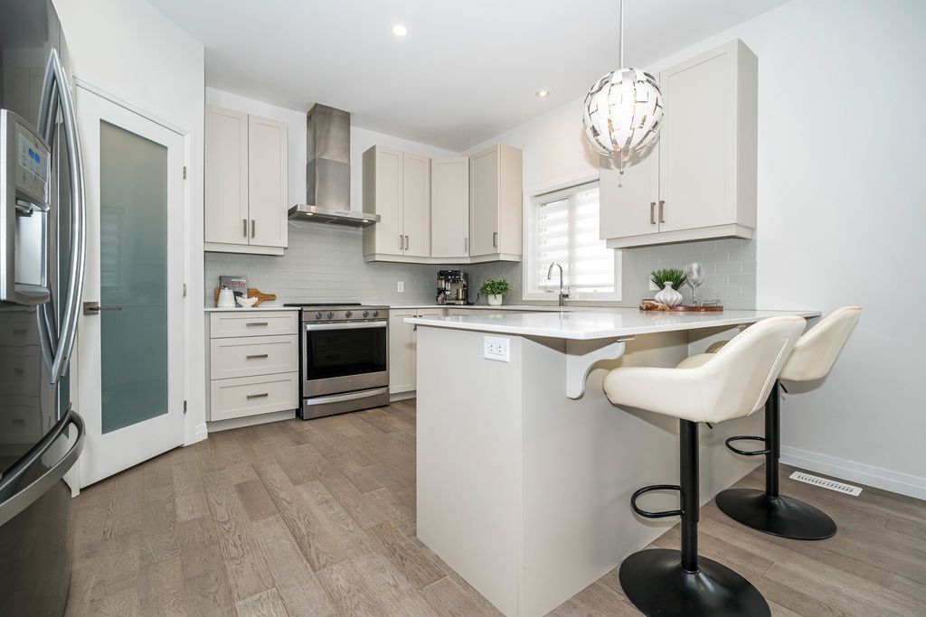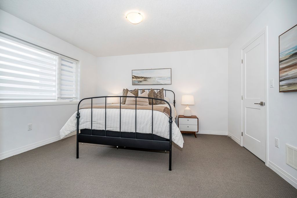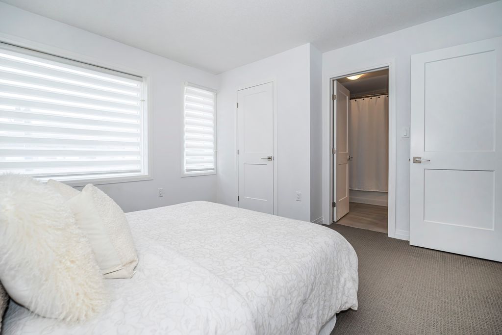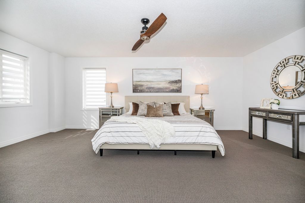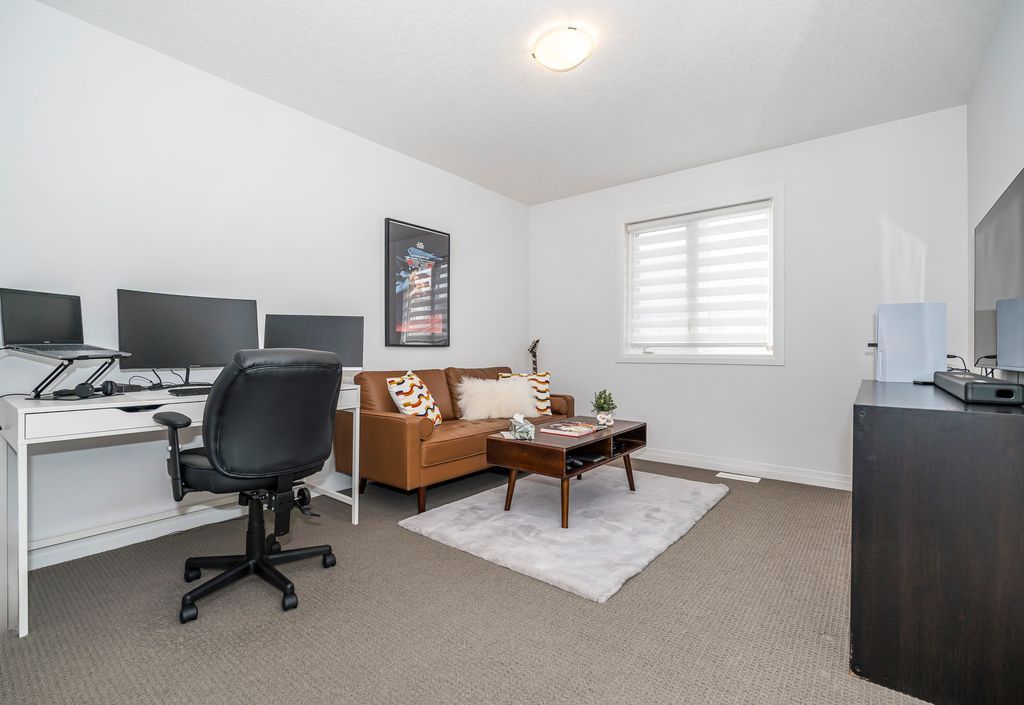 Rarely offered manhattan model offering 2,292 sq. Ft. Of luxury living. This corner townhome is surrounded by windows and flooded with natural light from every angle, offering the feel and privacy of a semi-detached home. Nestled in the vibrant community of stoney creek, this beautiful 4 bedroom home features 9-ft ceilings, pot lights, and custom blinds throughout. From the moment you enter the welcoming foyer, you'll appreciate the thoughtful layout and elevated finishes. The main floor showcases premium hickory hardwood flooring and a spacious open-concept living and dining area. The modern entertainer's kitchen is complete with stainless steel appliances, quartz countertops, extended cabinetry, an upgraded island, and a spacious walk-in pantry, seamlessly blending style and functionality. Adding to the convenience of the main level is a thoughtfully designed mudroom with ensuite laundry and direct access to the garage, along with a convenient 2 piece powder room. Upstairs, four generously sized bedrooms provide comfort for the whole family. Three bedrooms feature large walk-in closets. The primary suite is a true retreat, beautifully renovated with a spa-inspired ensuite and generous walk-in closet. Two secondary bedrooms share a convenient jack-and-jill bathroom, perfect for family living. Plush, quality berber carpet adds warmth and comfort throughout the upper level. The basement offers a fantastic opportunity to create additional living space tailored to your family's needs, whether you envision a recreation room, home gym, or teen retreat. A 3-piece bathroom rough-in is already in place, making future finishing that much easier. Step outside to your fully fenced backyard oasis - ideal for relaxing or entertaining in privacy. Experience the perfect balance of space, natural light, and modern comfort in one of stoney creek's most desirable communities, close to all major amenities including schools, parks, trails, dining, shops and quick access to highways.