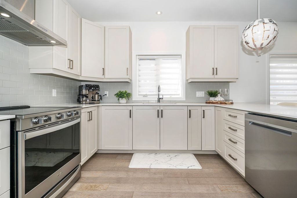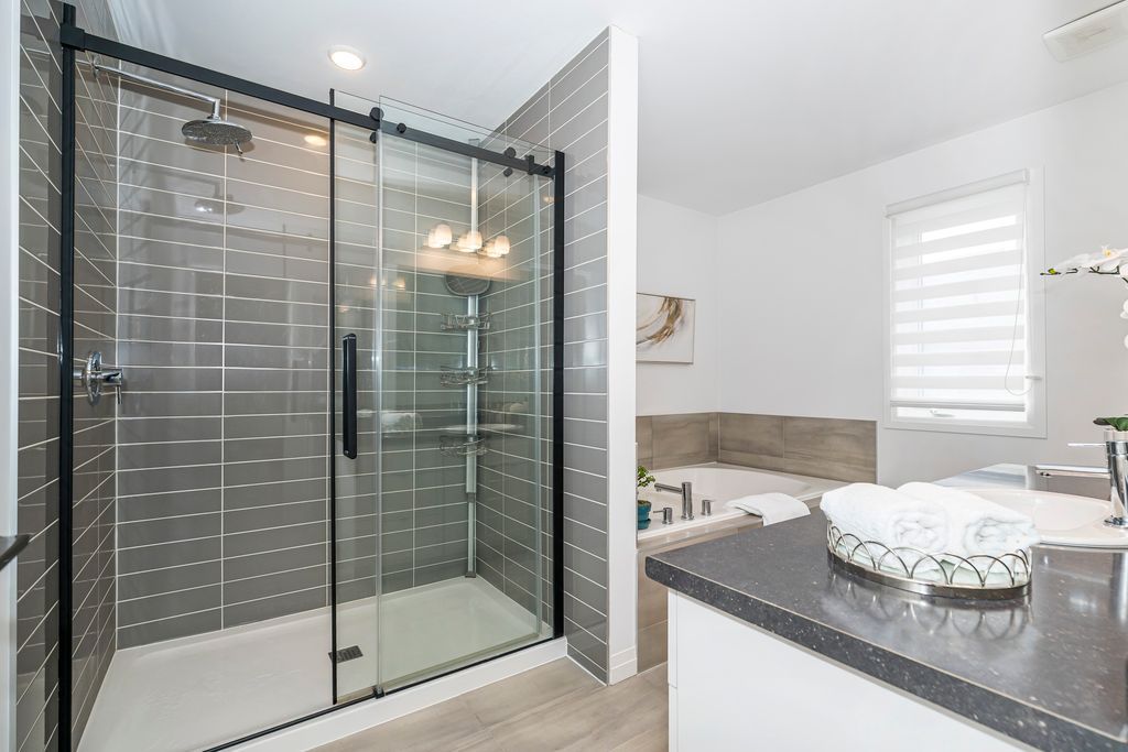 Semi-detached corner home 4 bedrooms 2,200+ sq ft of light-filled living! If you've been searching for space without crossing the $1m mark, this is it. One of the largest models in the complex, this sun-filled corner townhome offers 2,292 sq ft of well-designed living space with the feel and privacy of a semi-detached home. The main level features hickory hardwood flooring, a bright open-concept living and dining area, and a modern kitchen with quartz countertops, extended cabinetry, upgraded island, and a walk-in pantry-ideal for everyday living and entertaining. A functional mudroom with garage access, ensuite laundry, and a powder room adds everyday convenience. Upstairs, you'll find 4 generously sized bedrooms, including a spacious primary retreat with a spa-inspired ensuite and walk-in closet. Two bedrooms are connected by a jack-and-jill bathroom, offering a practical layout for families or guests. Enjoy a fully fenced backyard for private outdoor living, plus an unspoiled basement with a 3-piece rough-in ready for your personal touch. Located in sought-after stoney creek, this home stands out with its size, layout, and natural light-offering exceptional value for buyers looking to upgrade space without compromising budget.