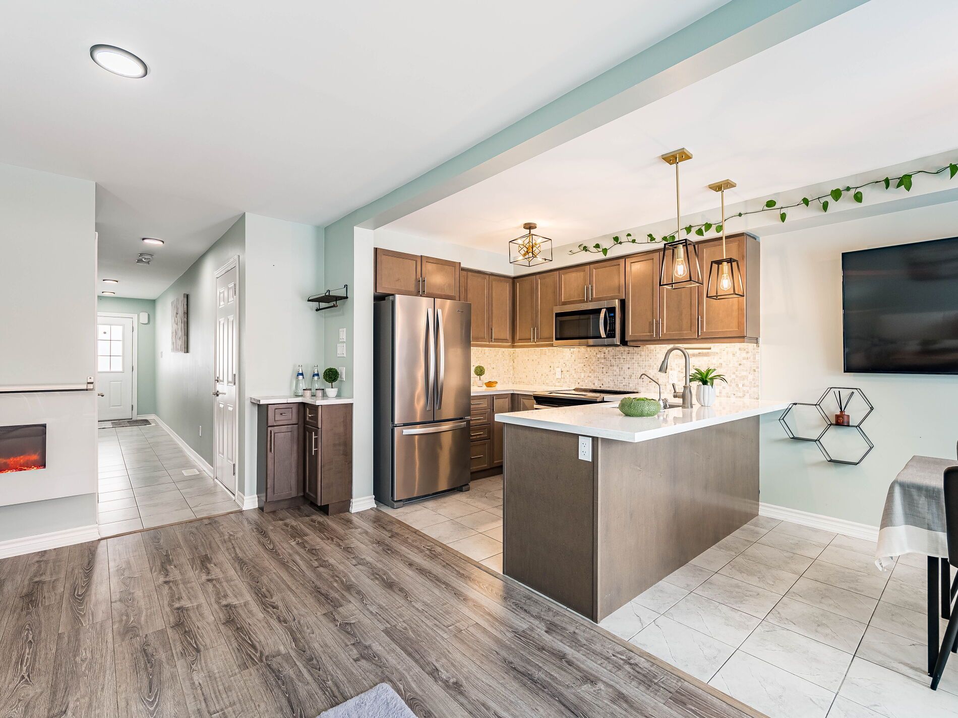 Welcome to this beautifully maintained freehold townhouse in the heart of orangeville, where modern style meets functional family living in an unbeatable location. With no homes behind, enjoy rare privacy and peaceful backyard views. This bright, open-concept home offers 3 bedrooms and 3 bathrooms designed for comfortable everyday living and effortless entertaining. The main floor features updated light fixtures, a cozy electric fireplace, and a charming, dedicated coffee bar perfect for busy mornings or hosting friends. The stylish kitchen is beautifully appointed with quartz countertops, a sleek backsplash, and stainless-steel appliances. Upstairs, the spacious king-sized primary retreat includes a walk-in closet and a private 3-piece ensuite with a walk-in shower. Two additional generously sized bedrooms and a full bath provide ample space for family, guests, or a home office. Additional highlights include a solid wood staircase, convenient main-floor powder room, freshly painted interior, hrv system, rough-in for central vacuum, and a single-car garage with door opener. The unfinished basement with a bathroom rough-in offers exciting potential to create the space you've always envisioned. Rental hot water tank. Step outside to a low-maintenance, manicured backyard with no rear neighbours ideal for relaxing evenings, entertaining, or safe outdoor play. Located beside princess margaret elementary school, a few short steps for the kids to walk home! This family friendly neighbourhood is just minutes to shops, restaurants, cafés, and year-round events of historic downtown broadway, along with the trails and natural beauty of island lake. An exceptional opportunity for first-time buyers, growing families, or investors looking to be part of one of orangeville's most welcoming communities.