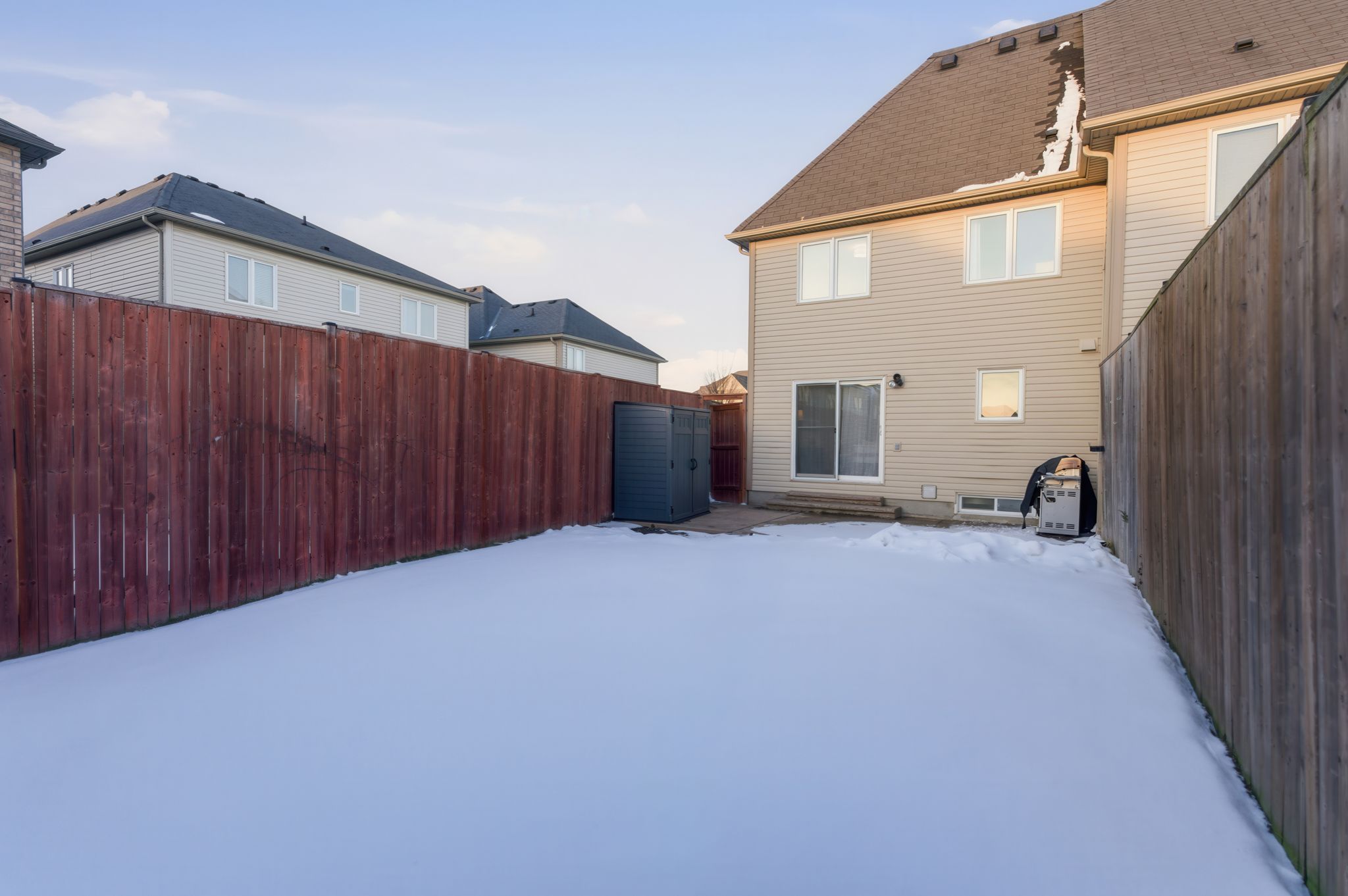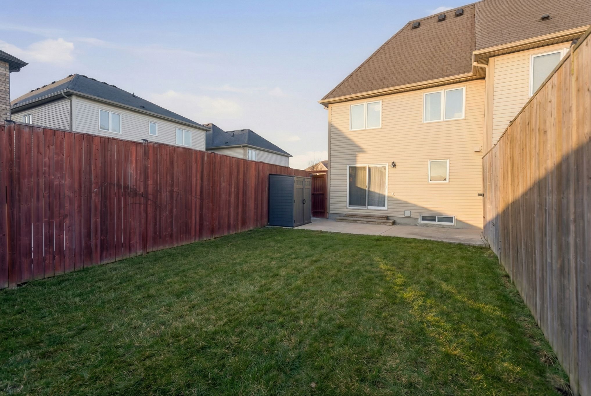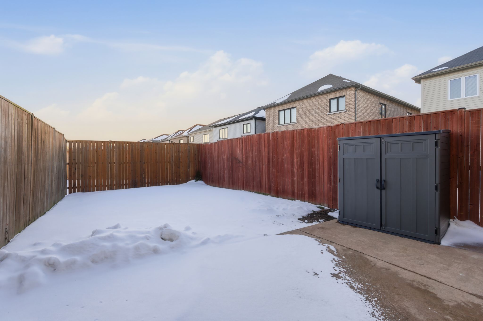 • Fully fenced backyard with concrete patio, ideal for gatherings.