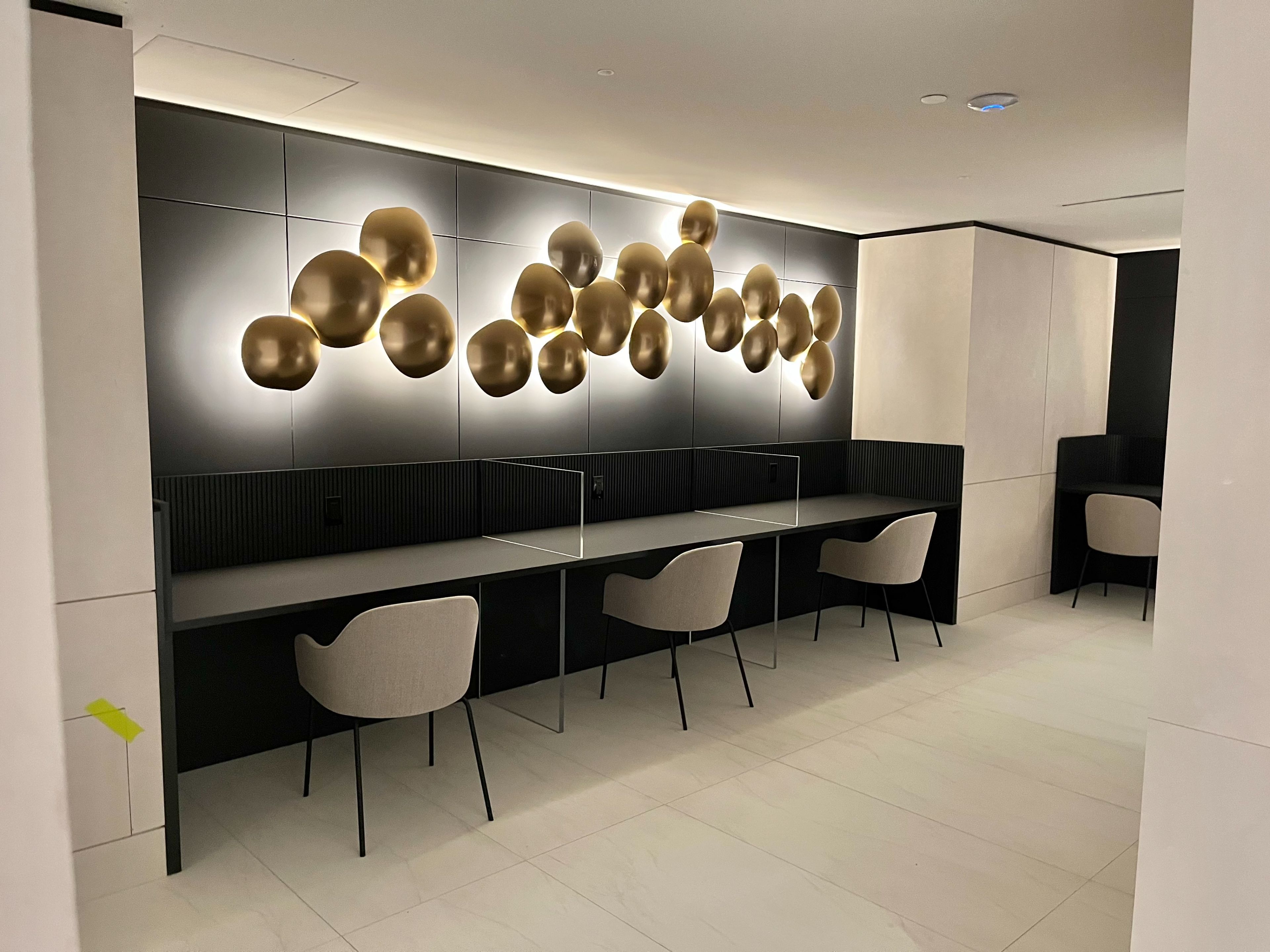 • Upgraded kitchen island with built-in stainless steel appliances.