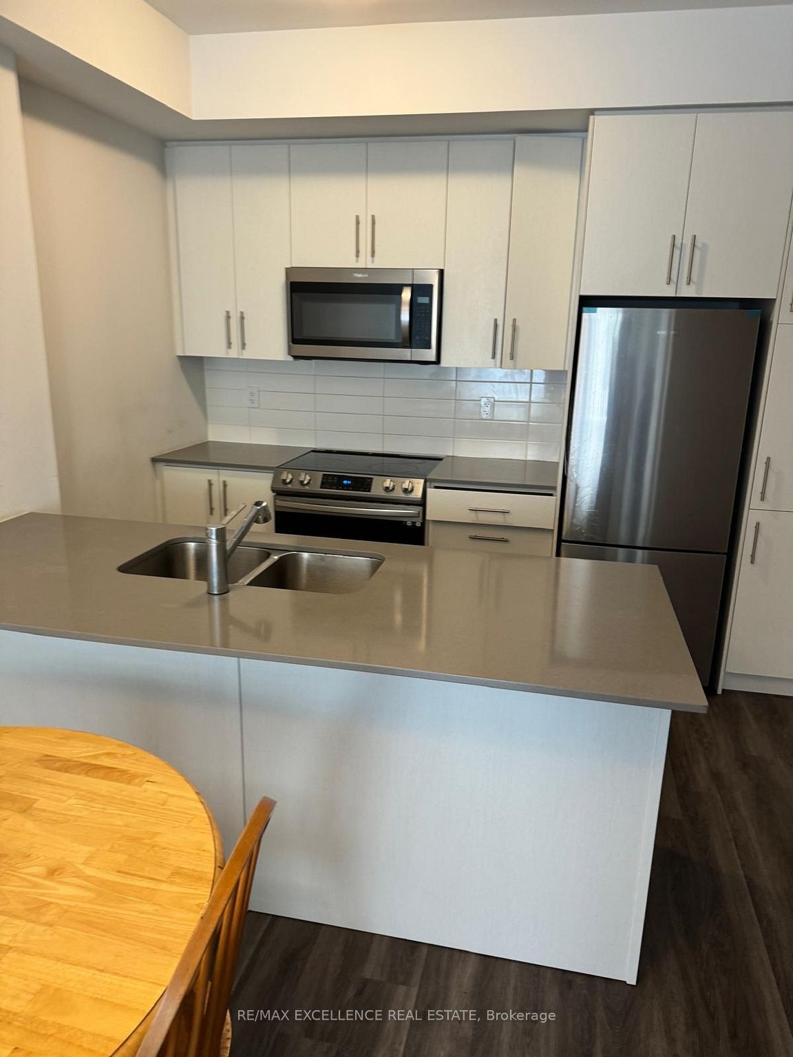 • Modern kitchen featuring stainless steel appliances and quartz countertops.