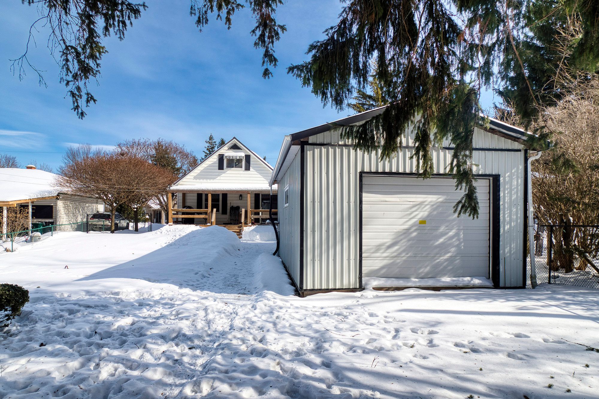 This well-maintained and upgraded home with backyard workshop is a real delight! Located in the town of new hamburg and on a quiet dead-end street, 30 williams street delivers inside and out! Make use of the spacious covered back deck, with view over the 132ft-deep fully-fenced lot and its mature trees. Find ample space for projects in the workshop, fitted with a garage door. Ample parking is provided here with one garage space, one carport space, and two driveway spaces: great for a growing family or when hosting guests. Inside the home, notice the hardwood oak flooring, spacious living room, eat-in kitchen with stainless-steel fridge and solid wood cabinetry, main-floor 4-piece bathroom adjacent to the main-floor bedroom, and sliding door to the back covered deck. Upstairs, gain additional recreation or den space, a second bedroom, and built-in storage areas. In the basement, a laundry setup with sink, shelving, and washer & dryer set is provided next to a 3-piece bathroom with shower. Make use of the storage closets nearby and find the utility room with new furnace(2025). The large lower recreation room can provide space for a second living room, work-from-home space, fitness room, or guest space: make it your own! Capped with a metal roof, and having seen improvements inside and out, this home delivers a great offering for those looking for a home with garage and workshop space on a quiet street in new hamburg. Just a short drive to kitchener-waterloo, this location allows for the pleasant small-town experience with proximity to the city when you need it. See it today and make this home yours!